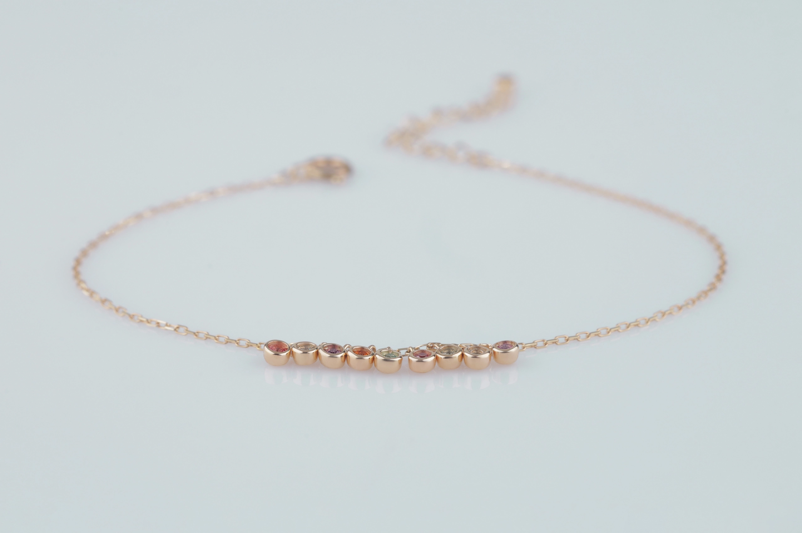 Браслет из золота с изумрудом, родолитом, цитрином, турмалином, 2 аметистами и 3 топазами.