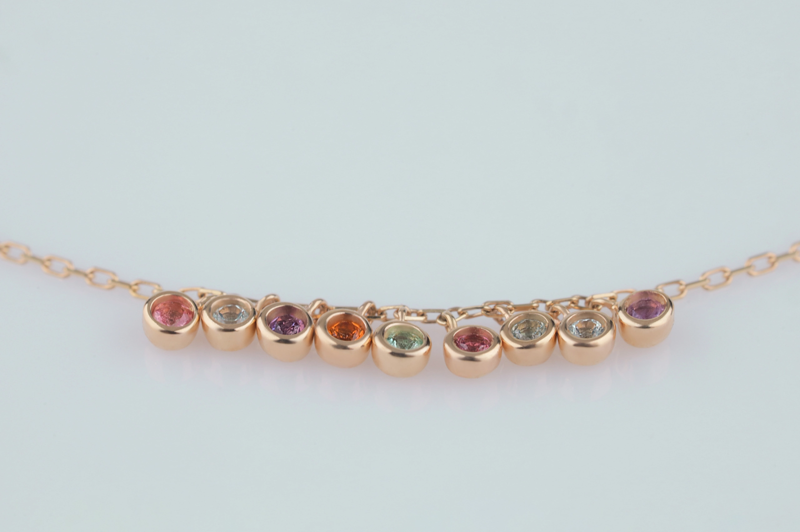 Намекнуть о подаркеБраслет из золота с изумрудом, родолитом, цитрином, турмалином, 2 аметистами и 3 топазами.