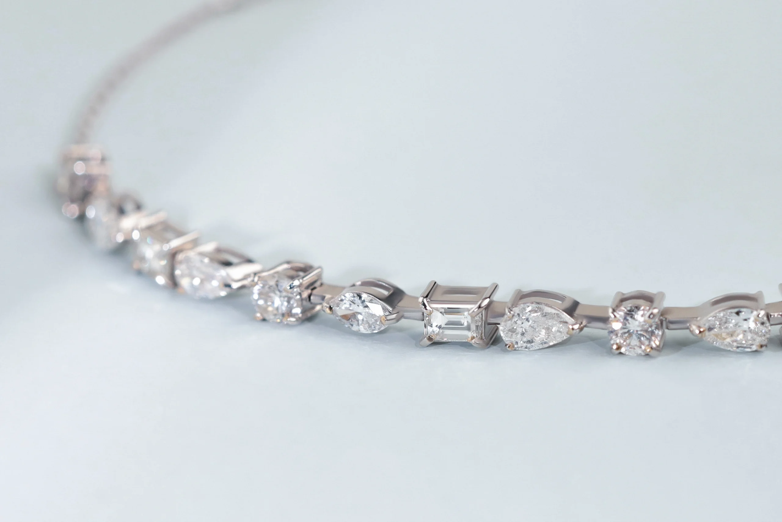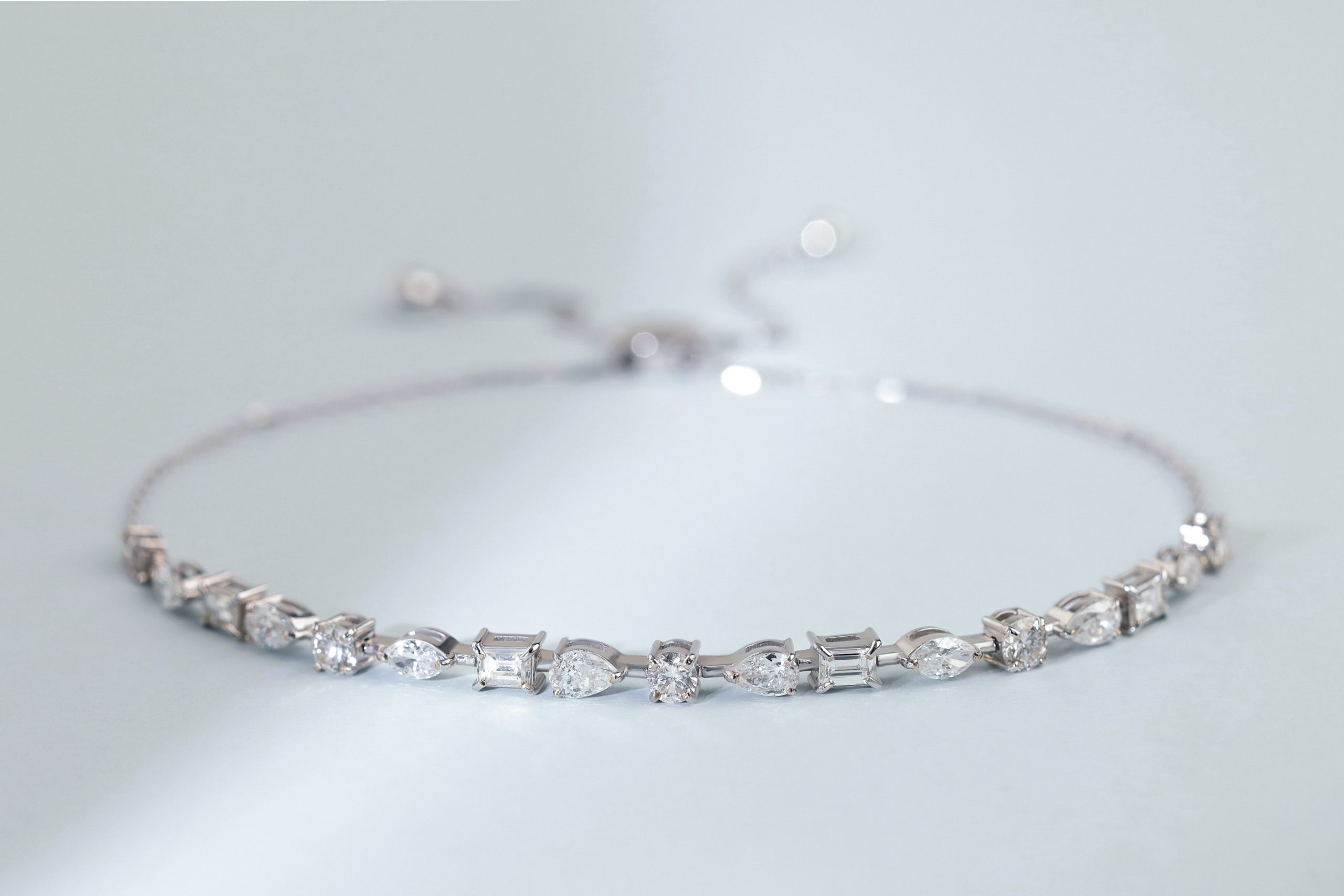 Браслет из золота с 5 бриллиантами в огранке «круглая» весом 0,44 карат, цвет 3, чистота 5; 4 бриллиантами в огранке «багет» весом 0,45 карат, цвет 3, чистота 5; 4 бриллиантами в огранке «груша» весом 0,48 карат, цвет 3, чистота 5; 4 бриллиантами в огранке «маркиз» весом 0,30 карат, цвет 3, чистота 5.