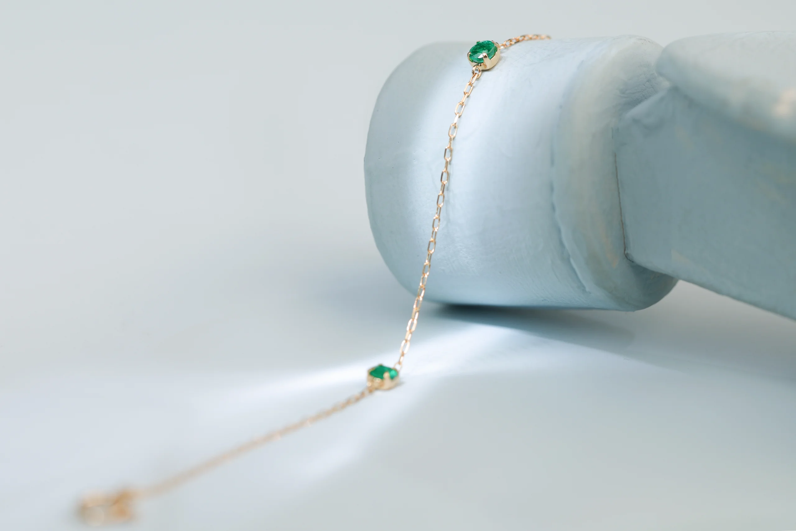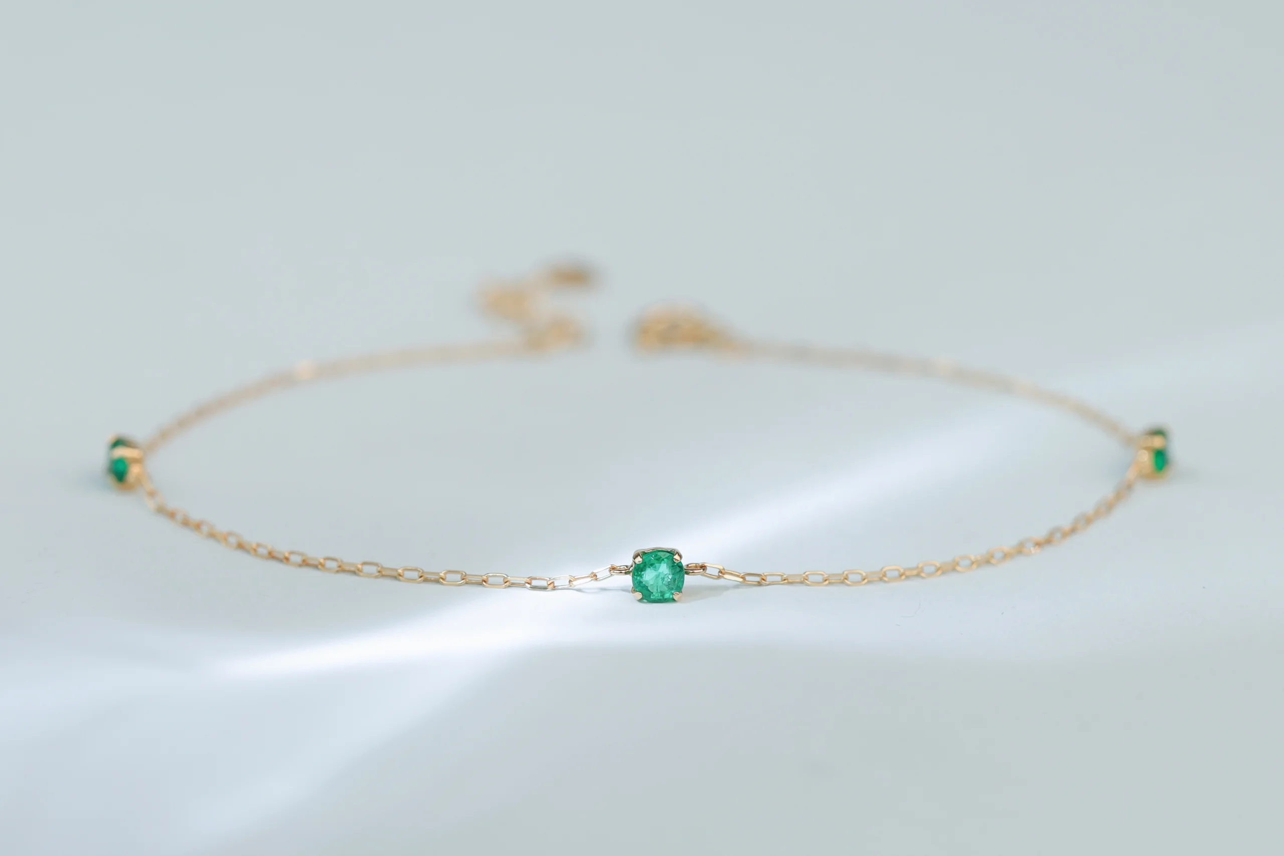 Намекнуть о подаркеБраслет из золота с 3 изумрудами весом 0,22 карат, цвет 3, чистота 3.