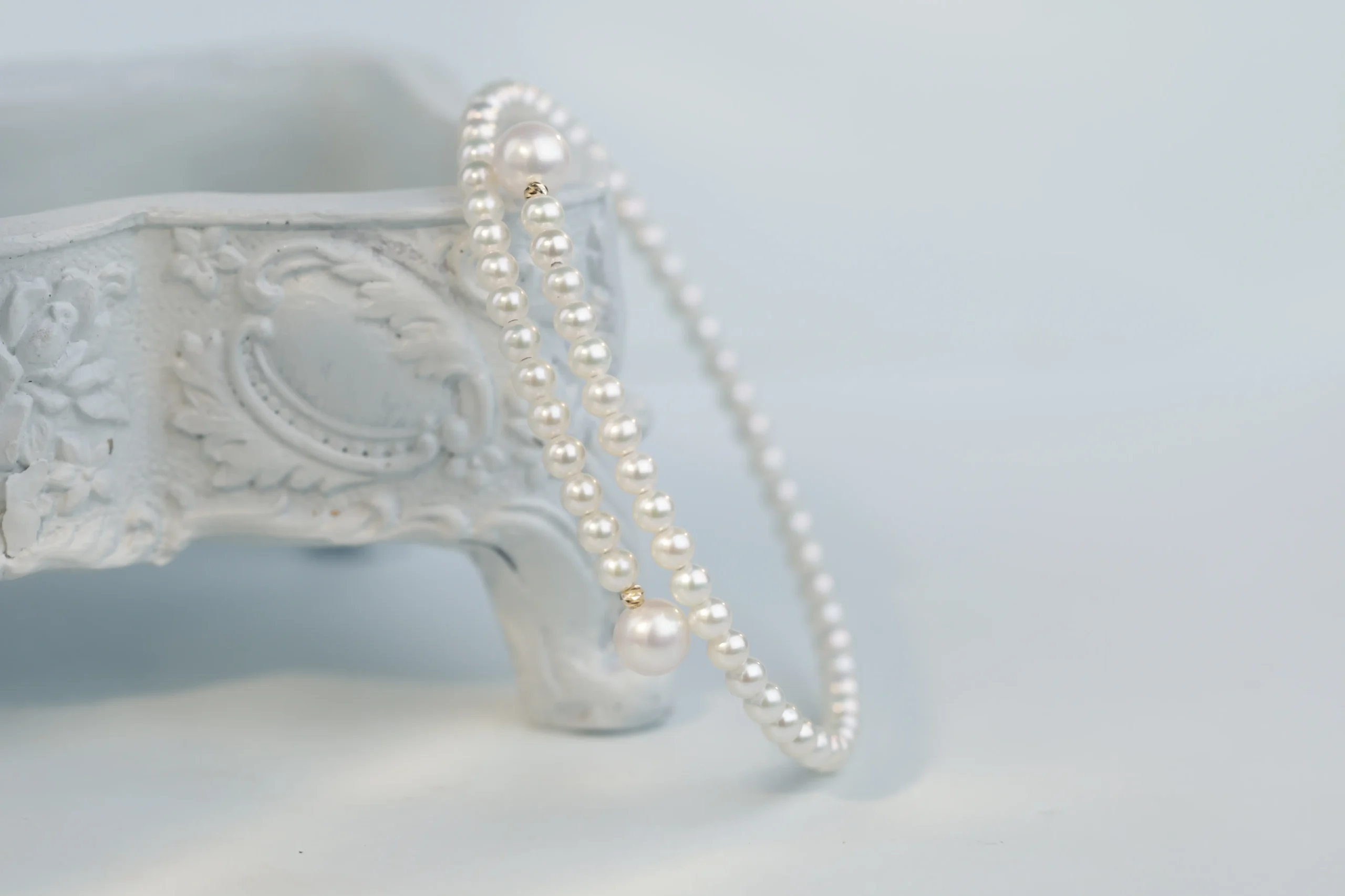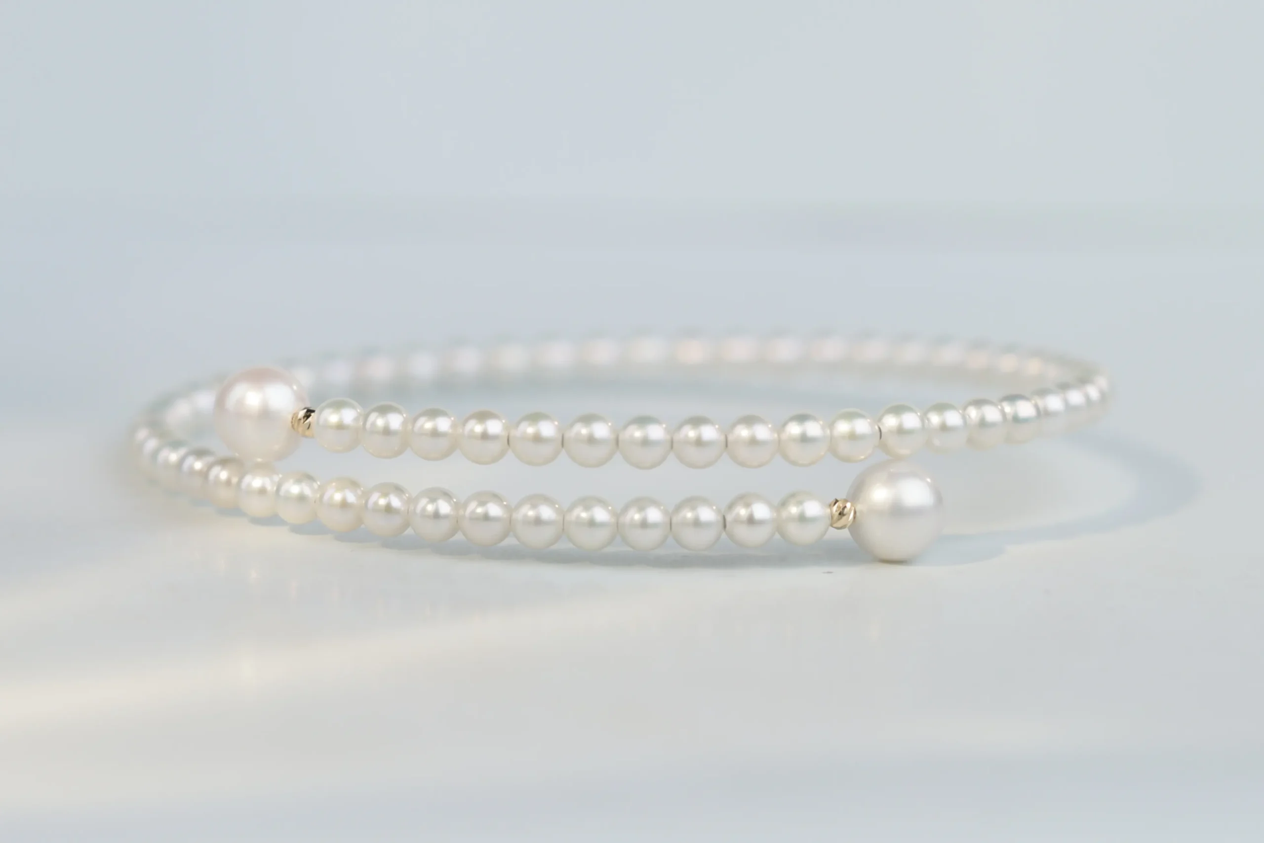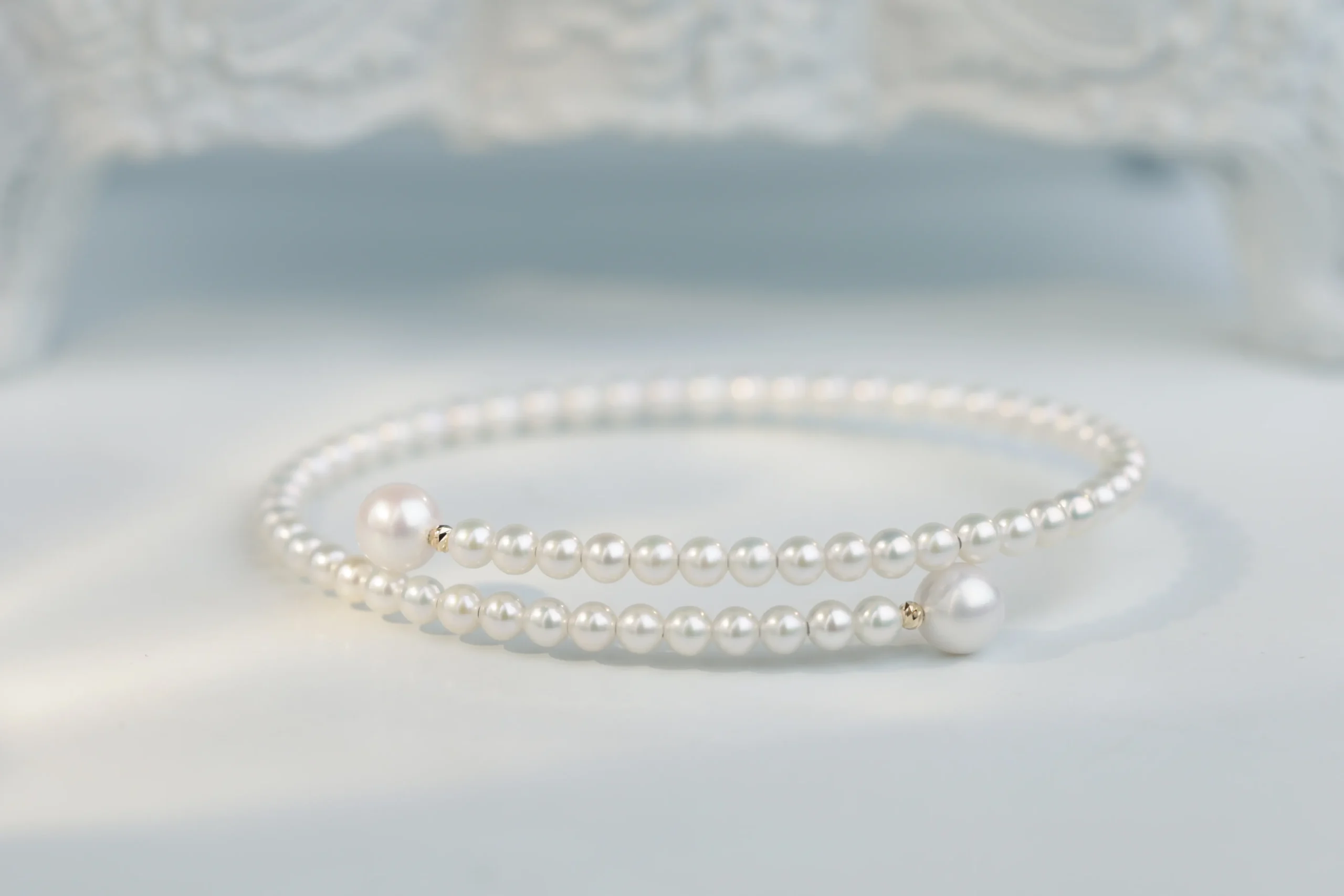Браслет с жемчугом и бусинами из золота с алмазными гранями.