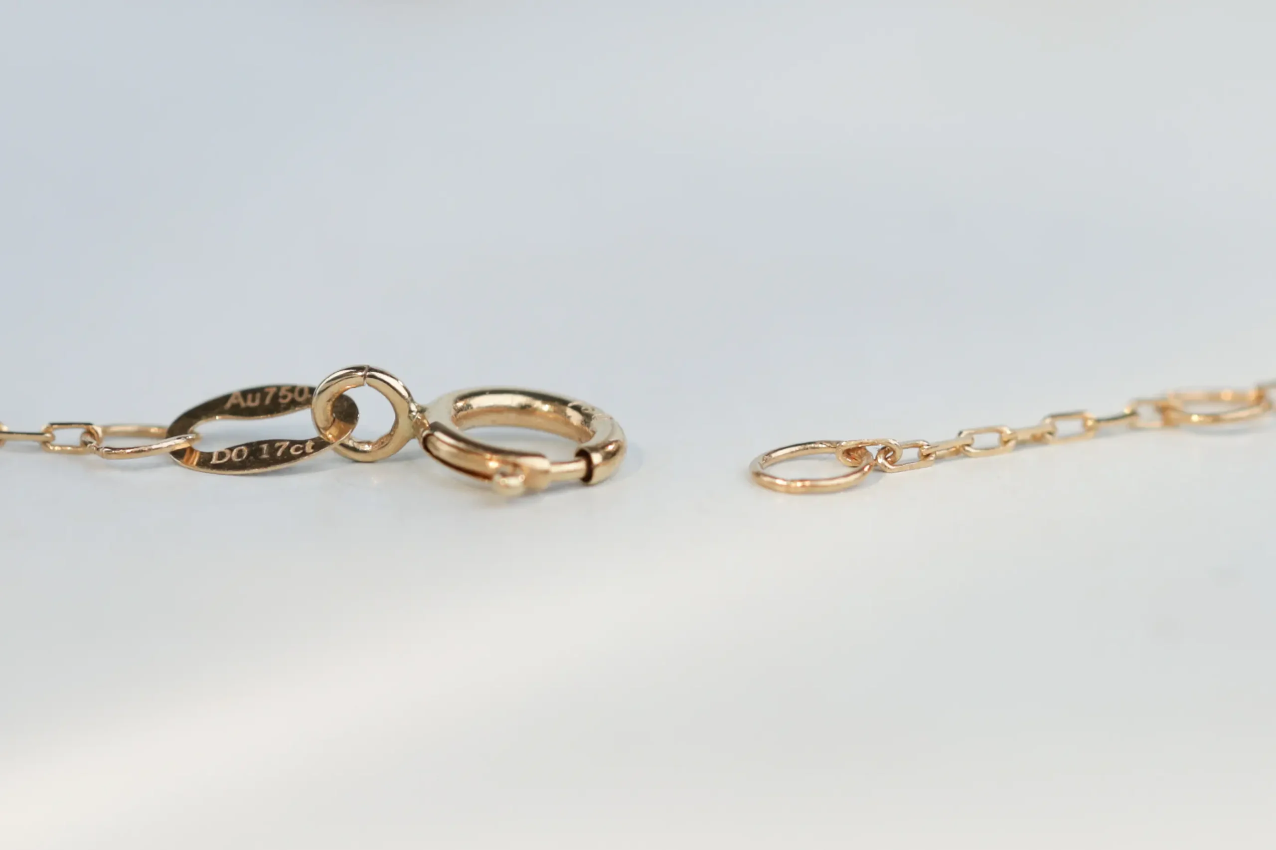 Браслет из золота с 12 бриллиантами в огранке «круглая» весом 0,07 карат, цвет 4, чистота 5; 16 бриллиантами в огранке «багет» весом 0,10 карат, цвет 4, чистота 5.