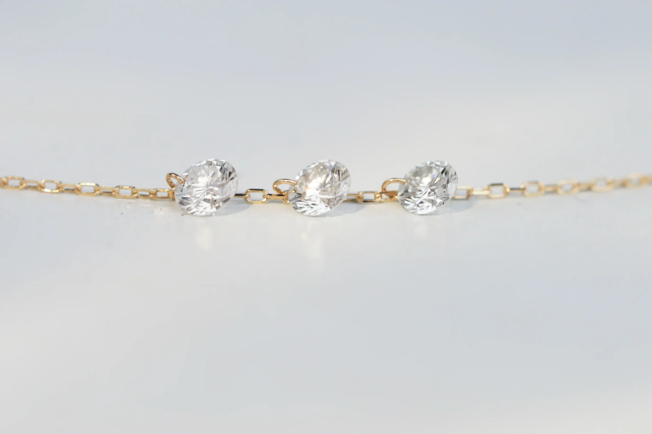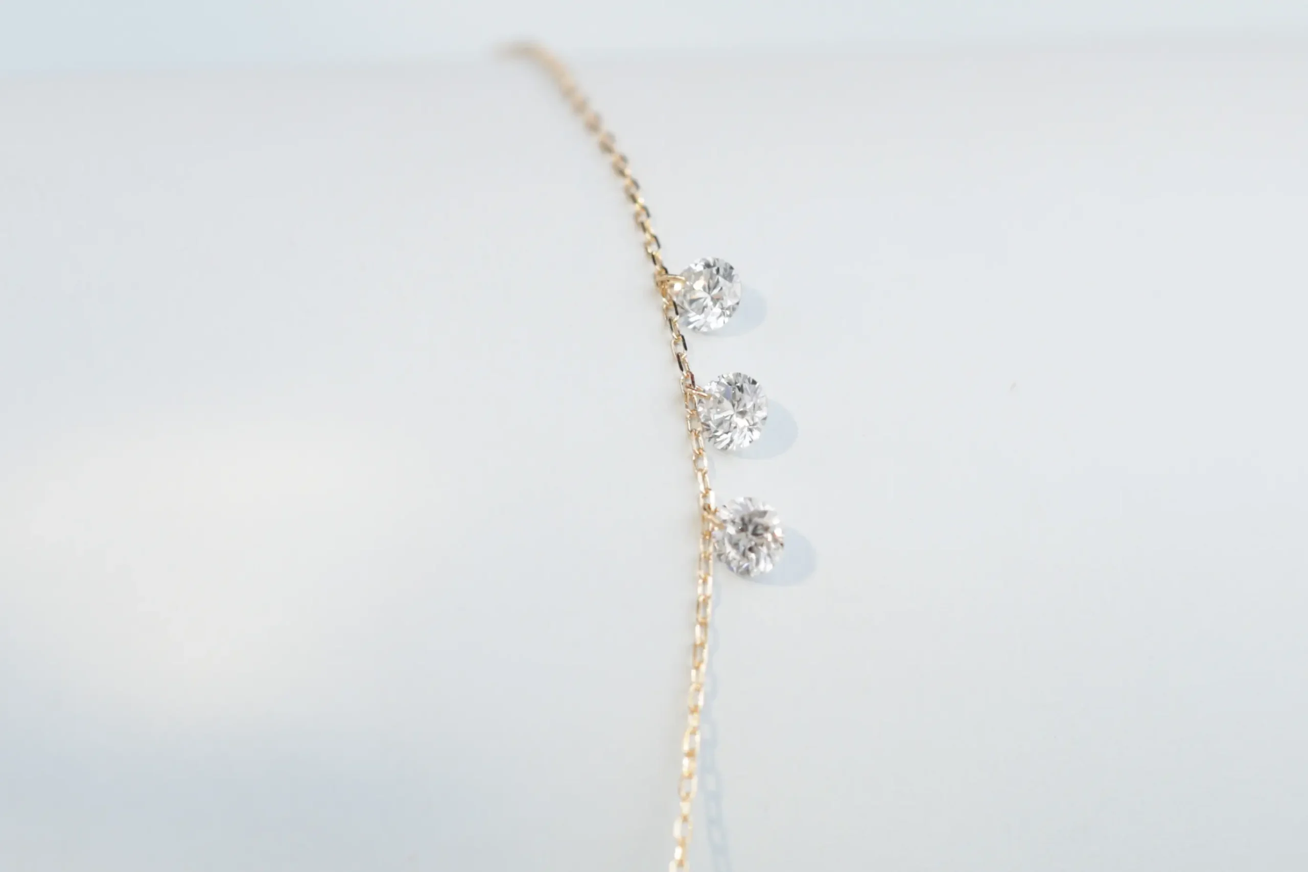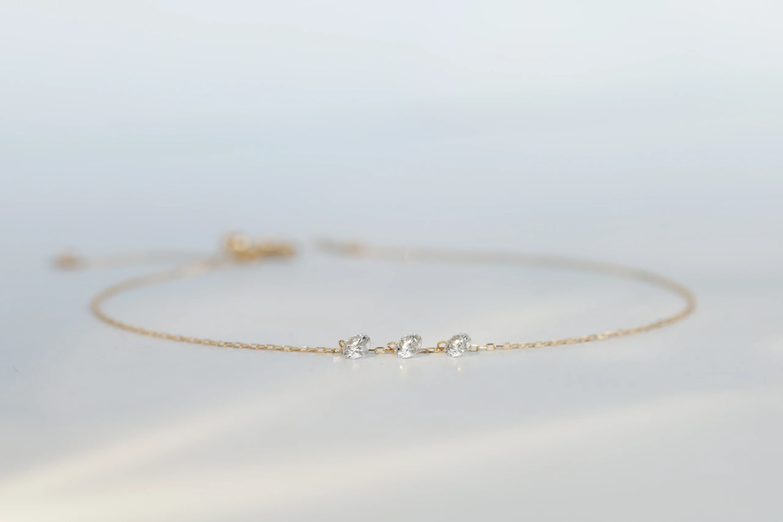 Намекнуть о подаркеБраслет из золота с 3 бриллиантами в огранке «круглая» весом 0,22 карат, цвет 3, чистота 5.