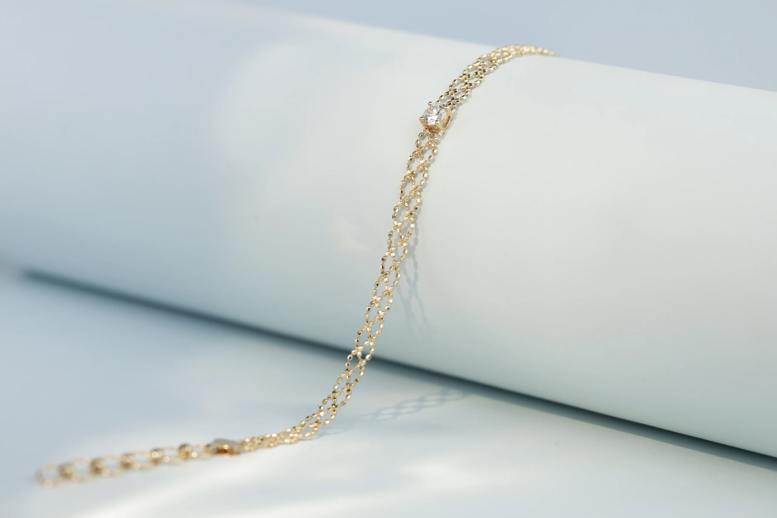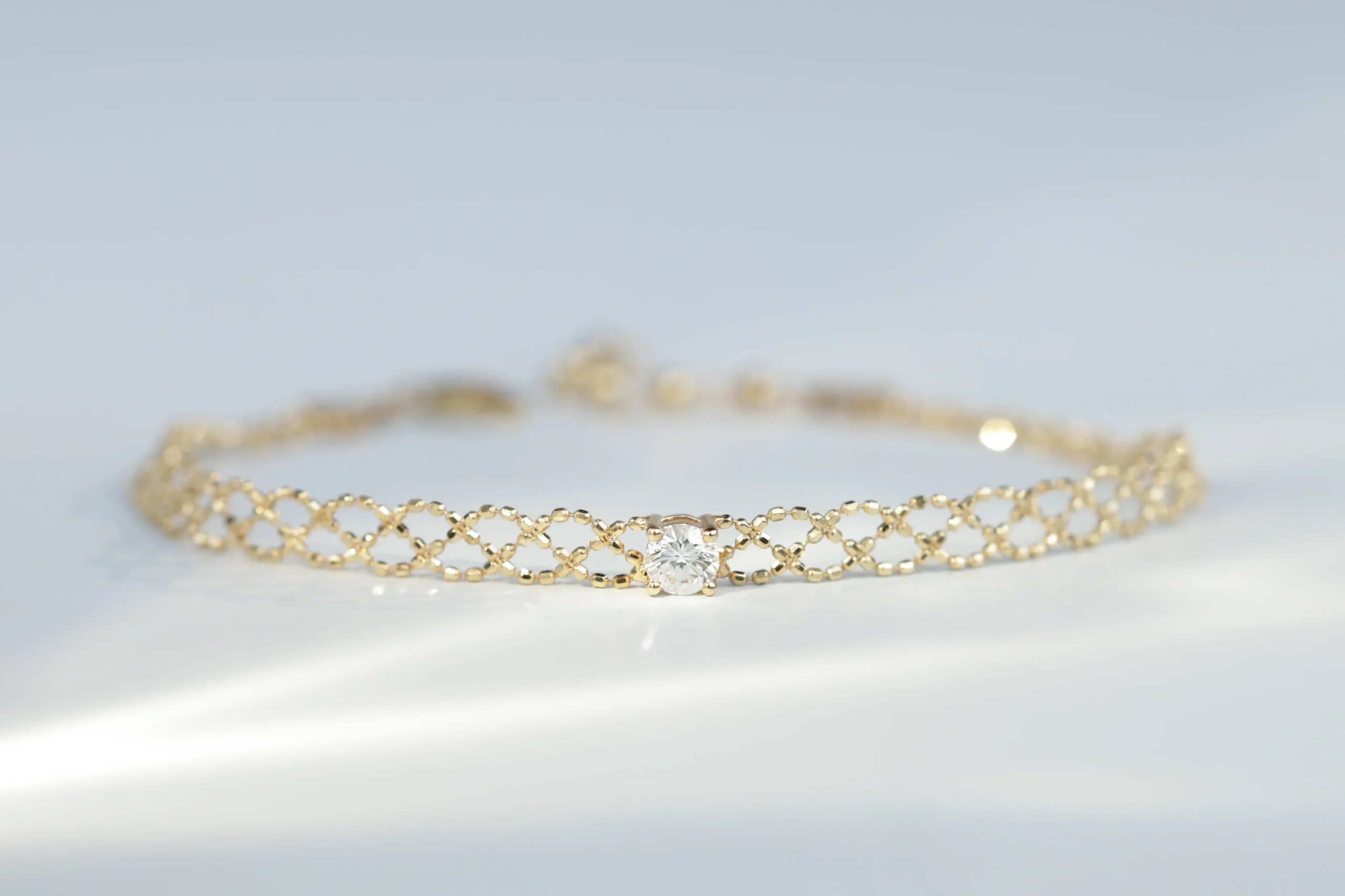 Браслет из золота с 1 бриллиантом в огранке «круглая» весом 0,25 карат, цвет 4, чистота 5.