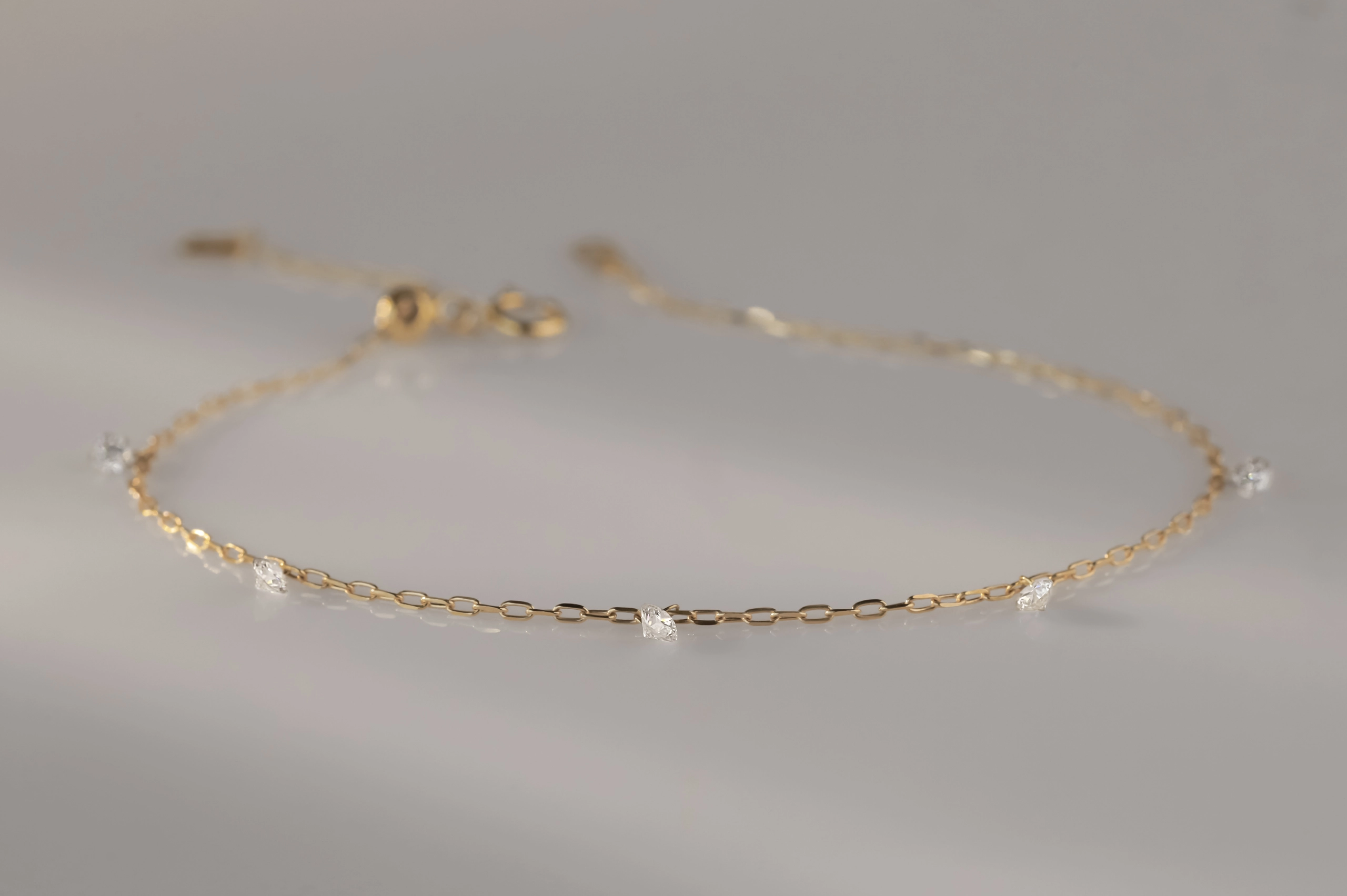 Намекнуть о подаркеБраслет из золота с 5 бриллиантами в огранке «круглая» весом 0,30 карат, цвет 4, чистота 5.