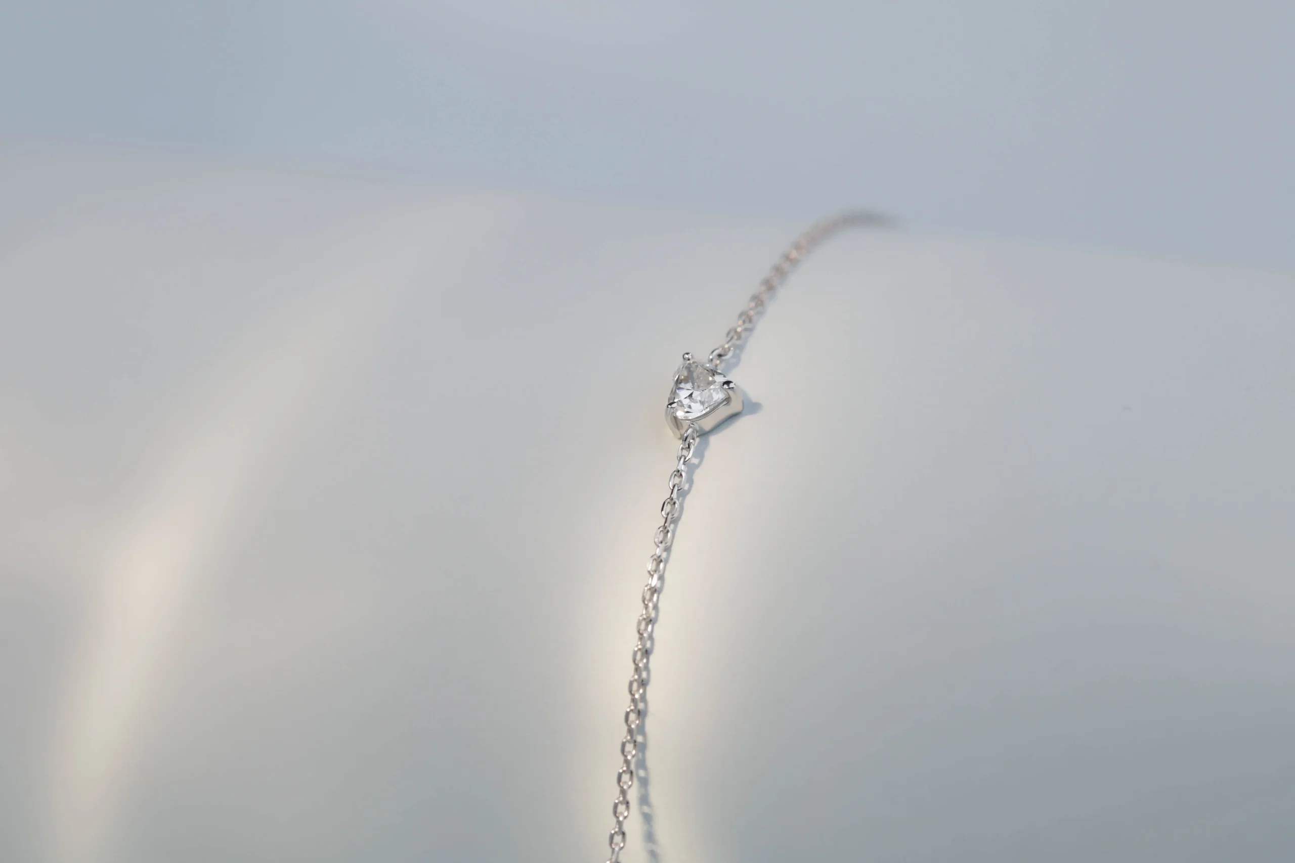 Браслет из золота с 1 бриллиантом в огранке «сердце» весом 0,23 карат, цвет 4, чистота 5.