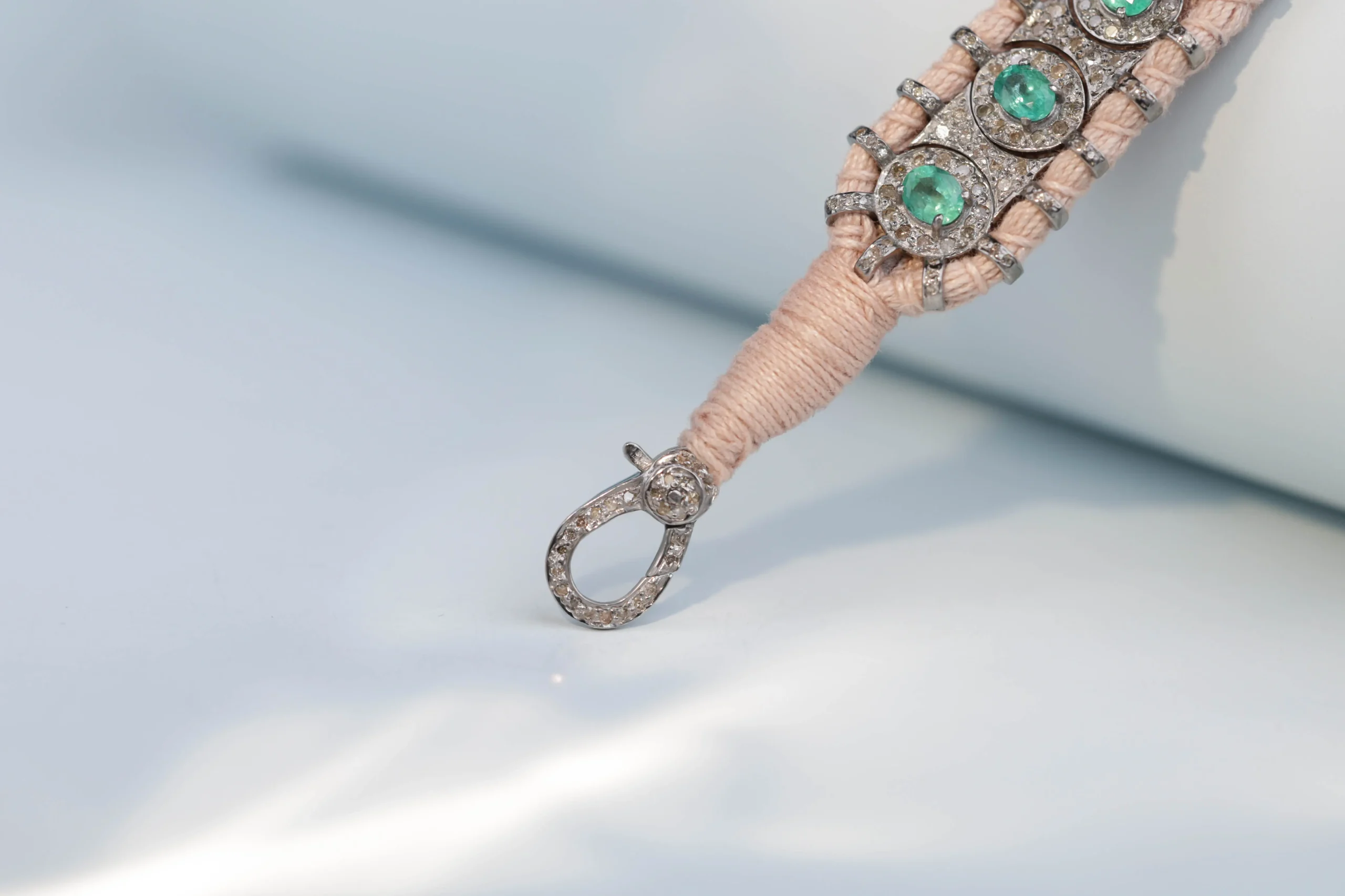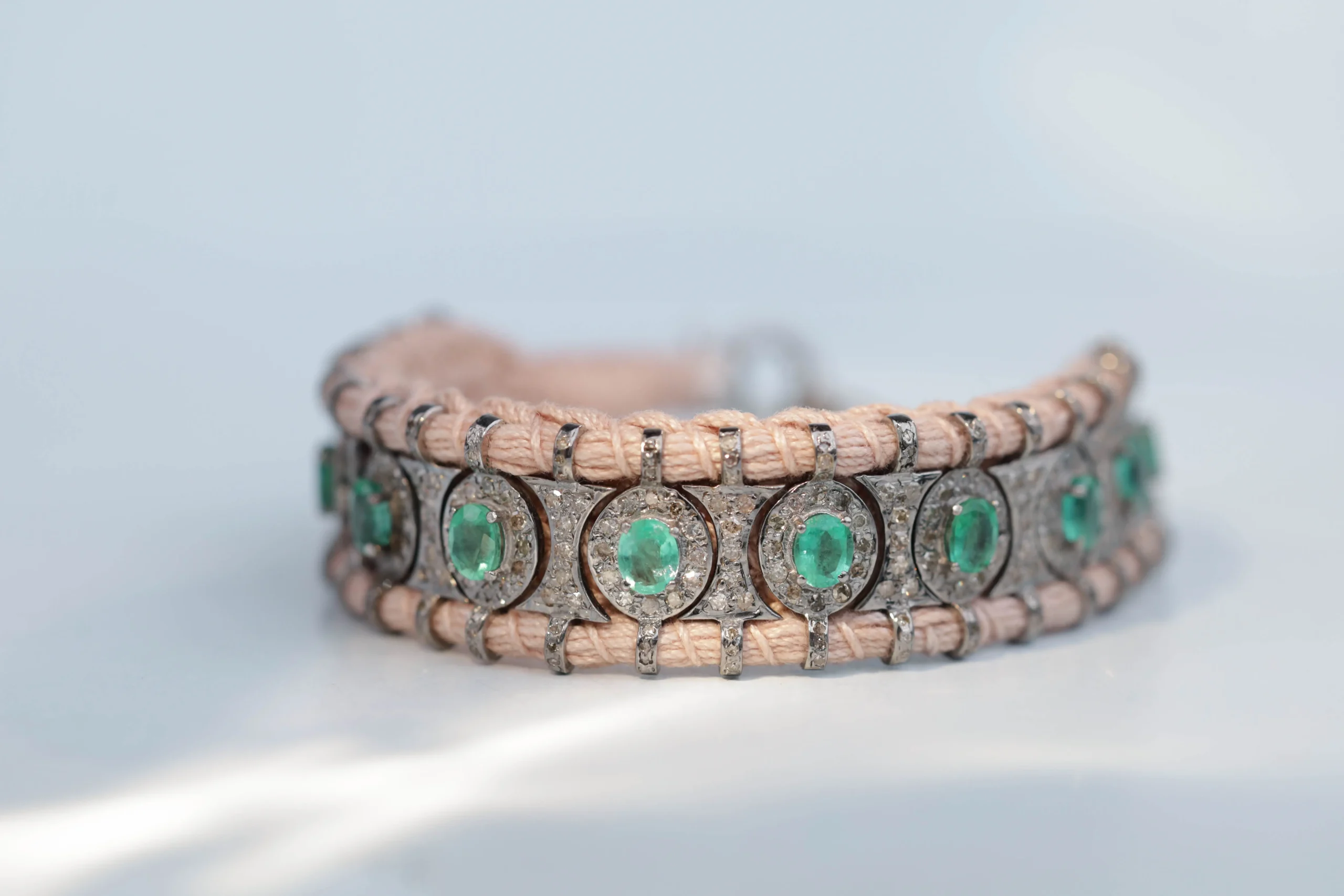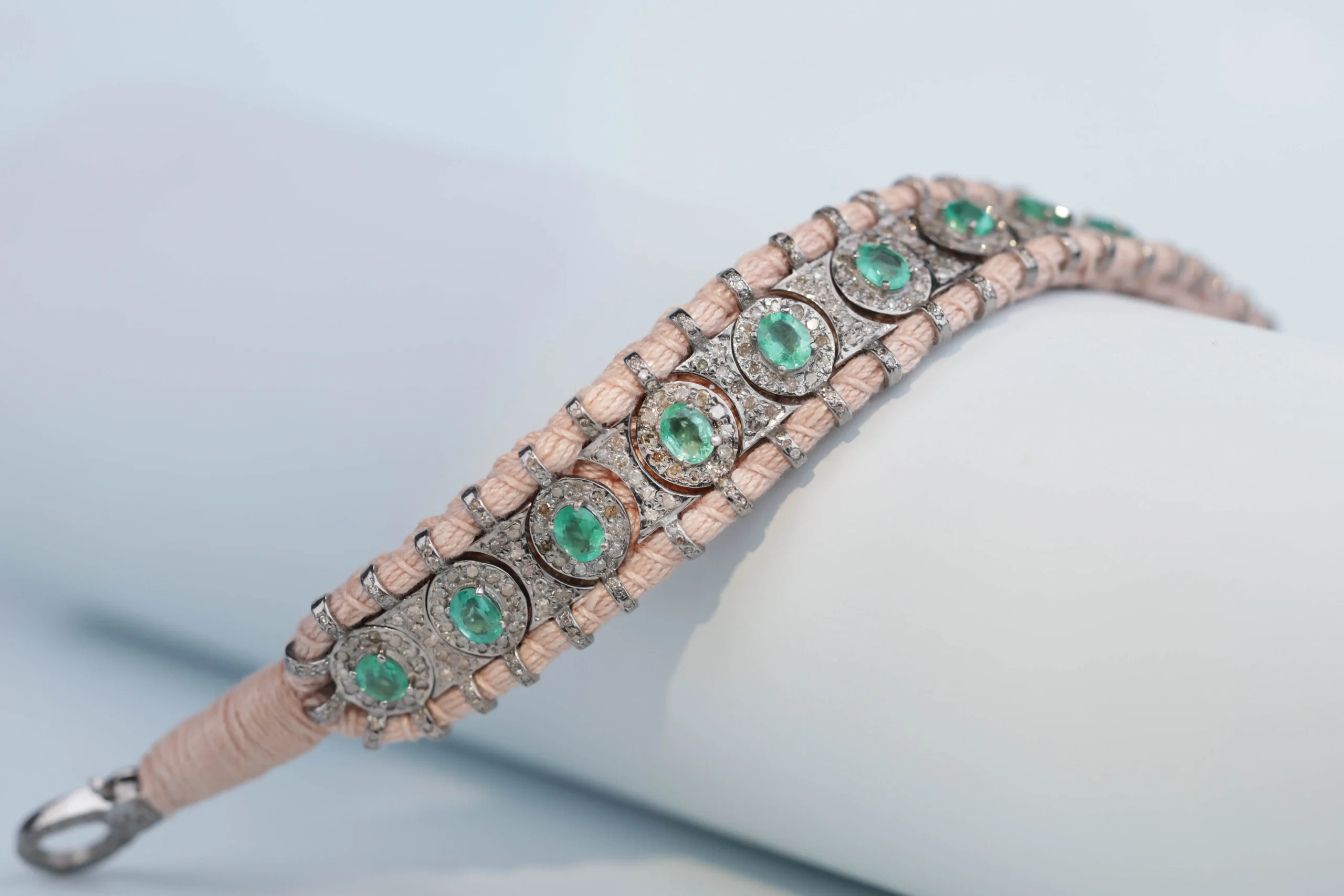 Браслет плетеный с изумрудами и бриллиантами