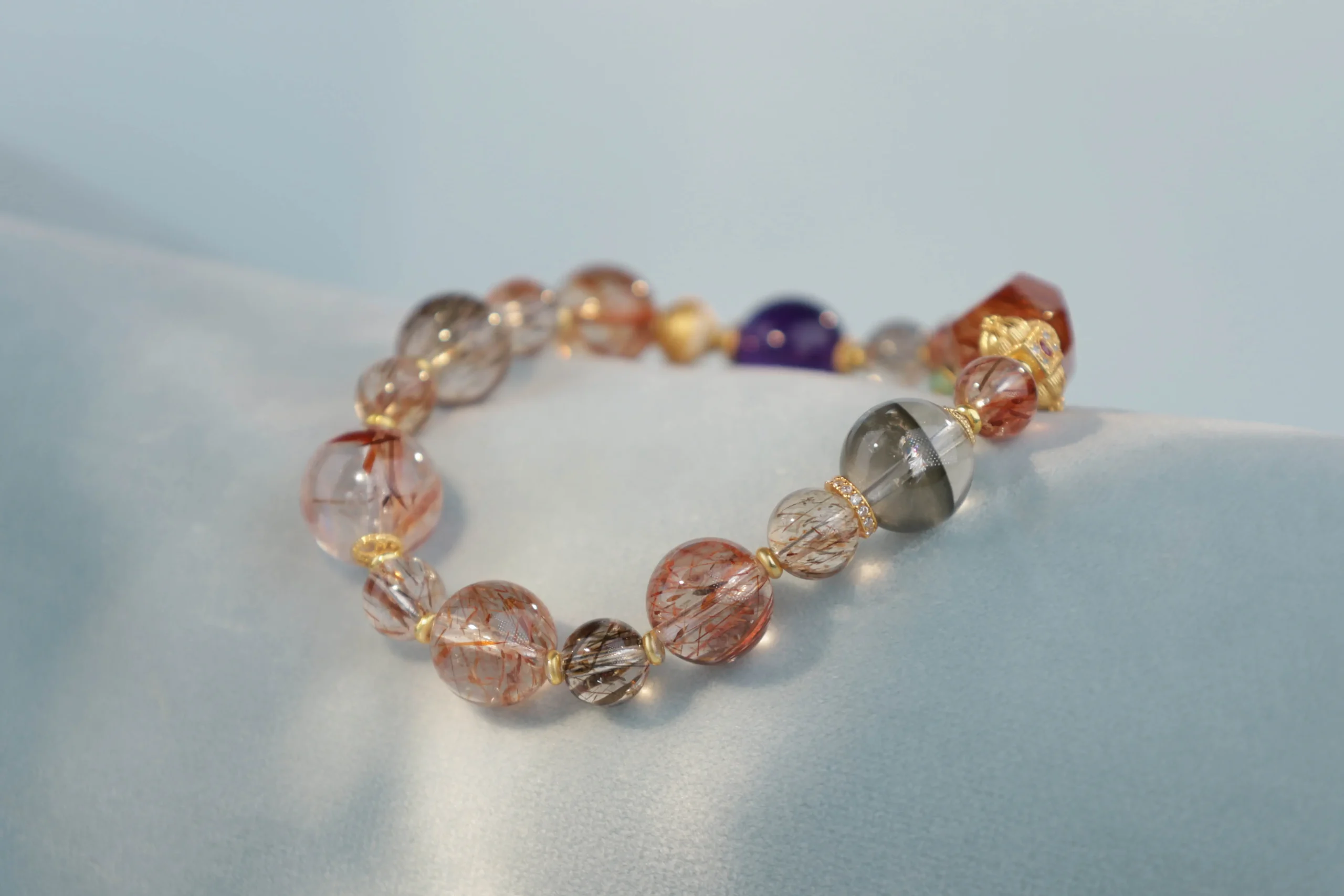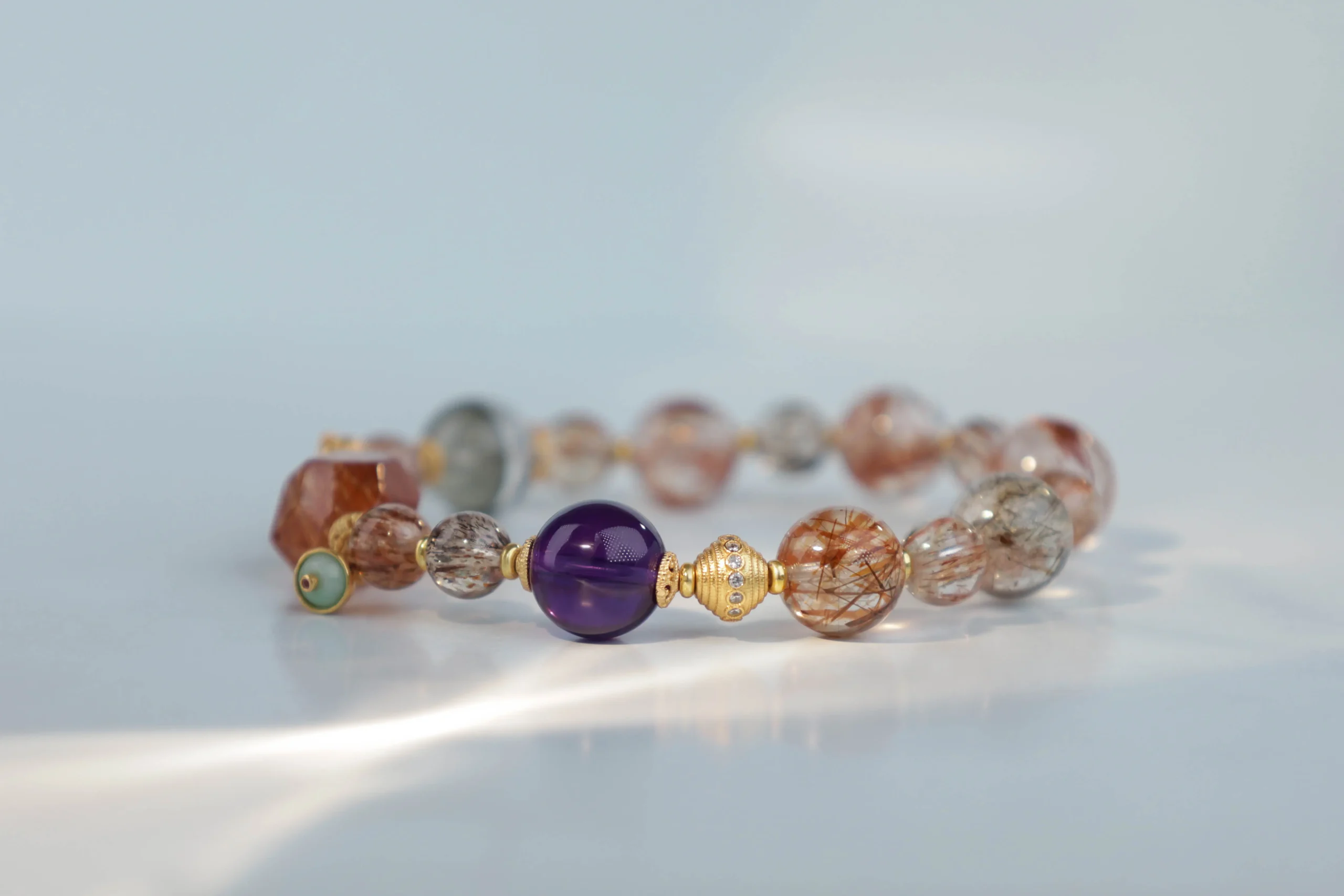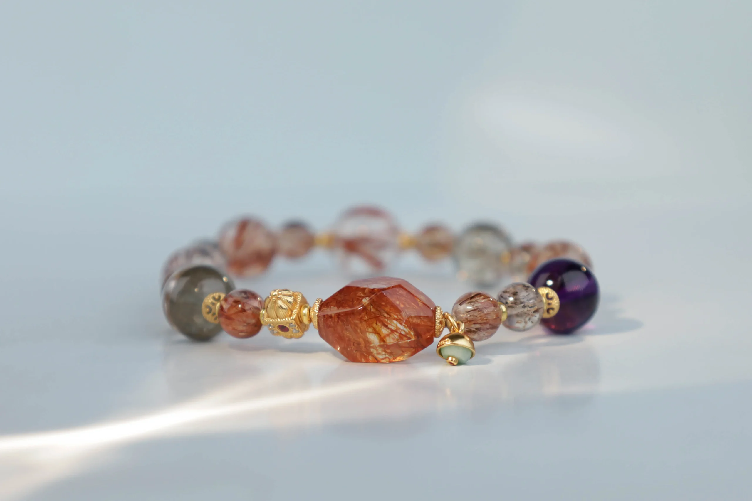 Браслет с рубином, аметистом, кварцем