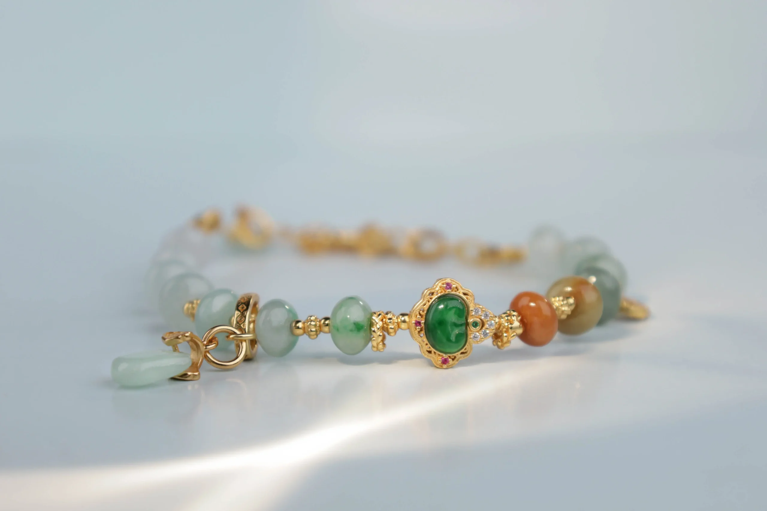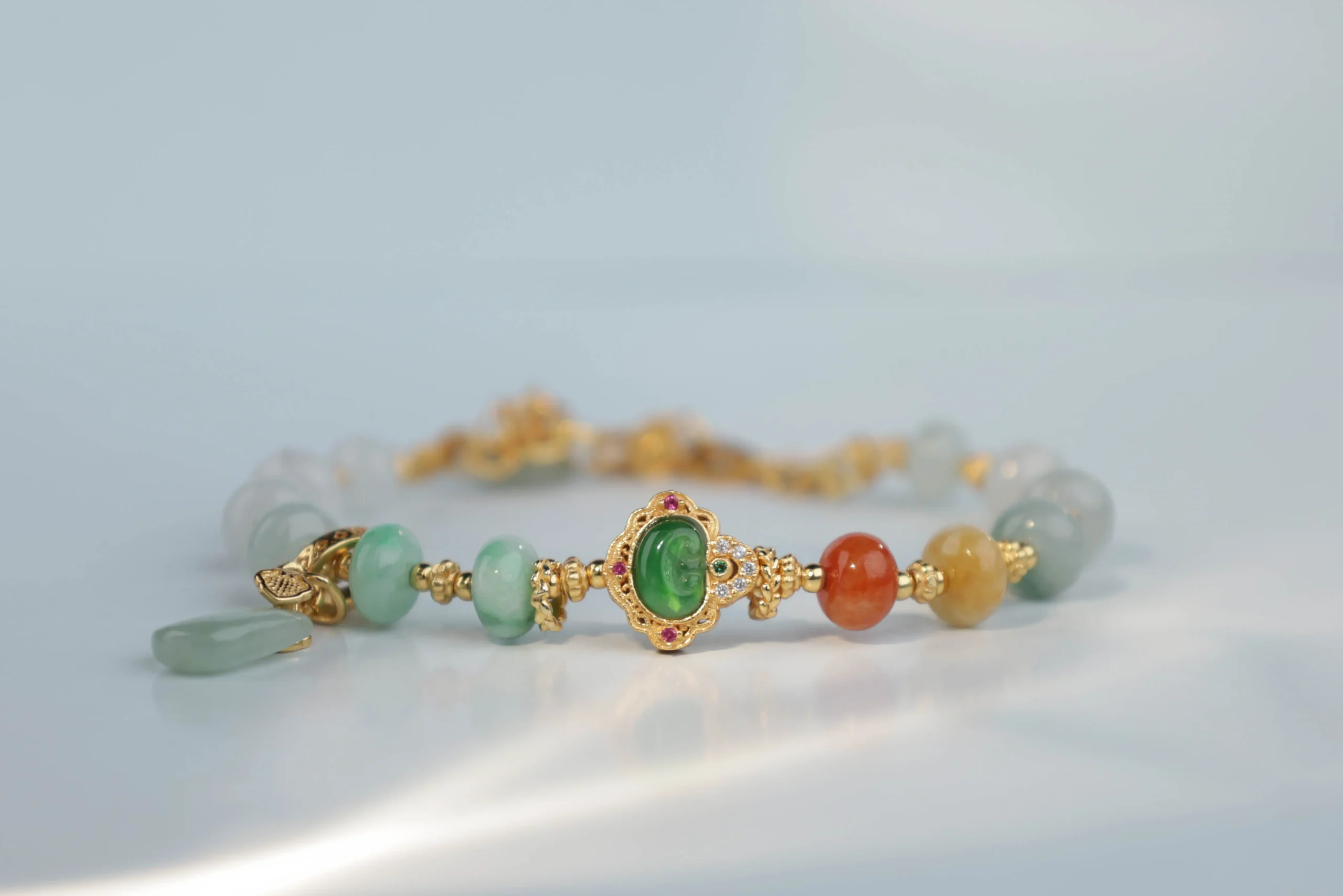Браслет с рубином, апатитом, кораллом, нефритом