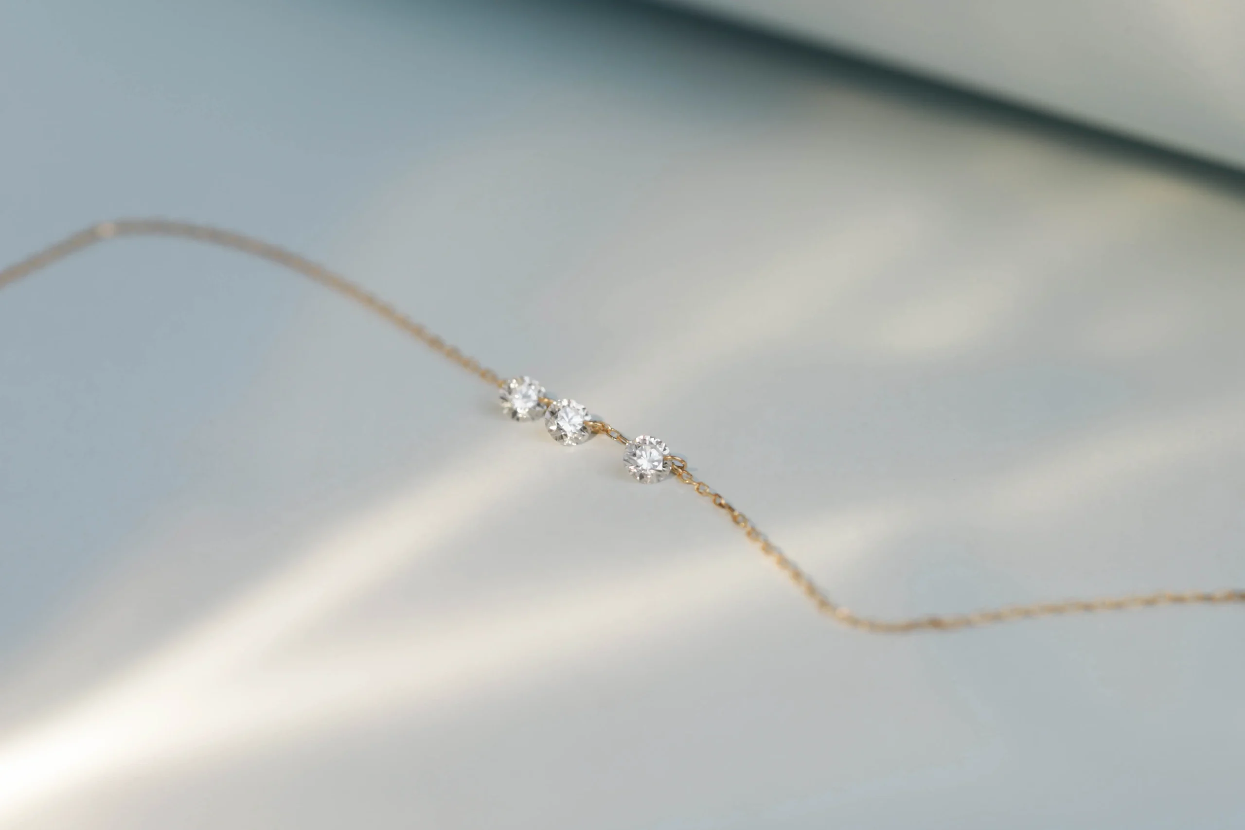 Браслет из золота с 3 бриллиантами  в огранке «круглая» весом 0,22 карат, цвет 3, чистота 5.
