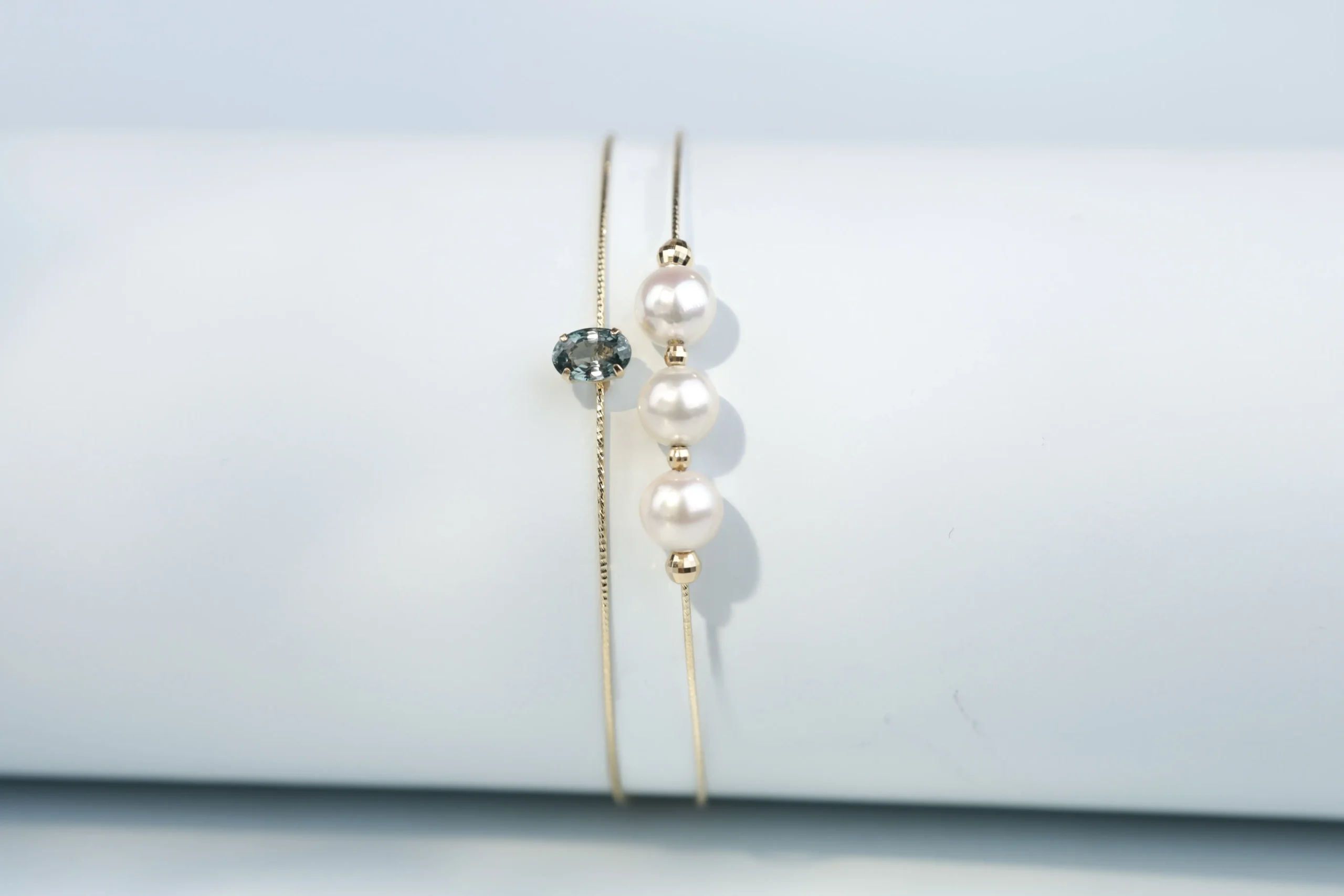 Браслет из золота с жемчугом «Akoya», сапфиром и алмазными гранями.
