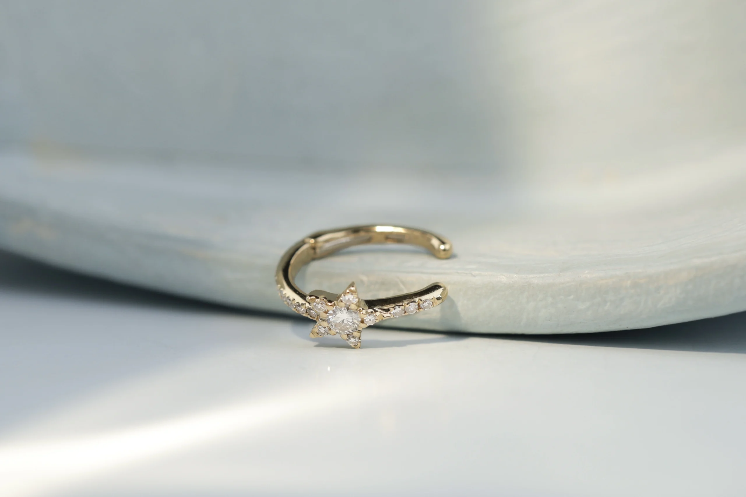 Кафф из золота с 17 бриллиантами в огранке «круглая» весом 0,10 карат,цвет 3, чистота 6.