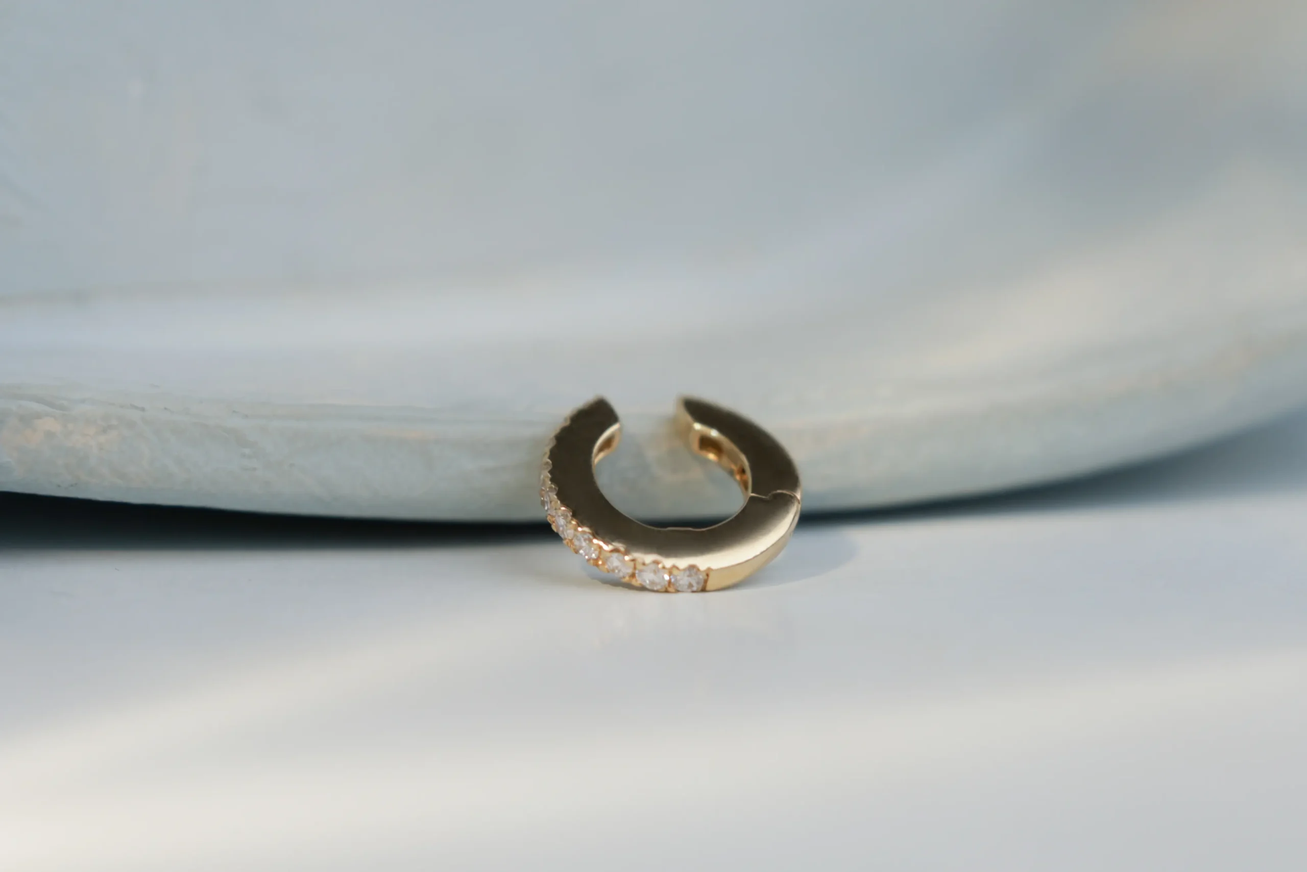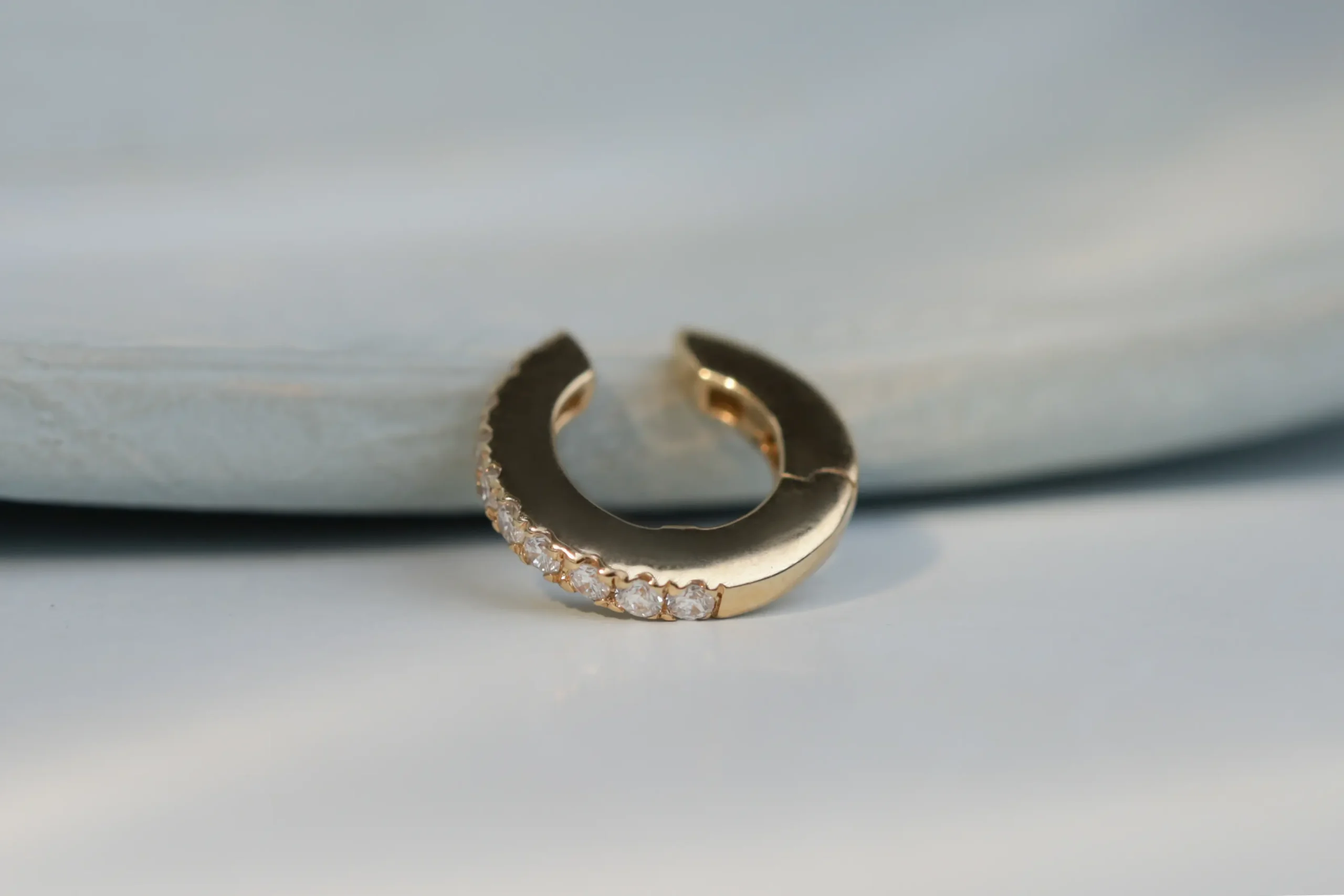 Кафф из золота с 10 бриллиантами в огранке «круглая» весом 0,08 карат, цвет 3, чистота 5.