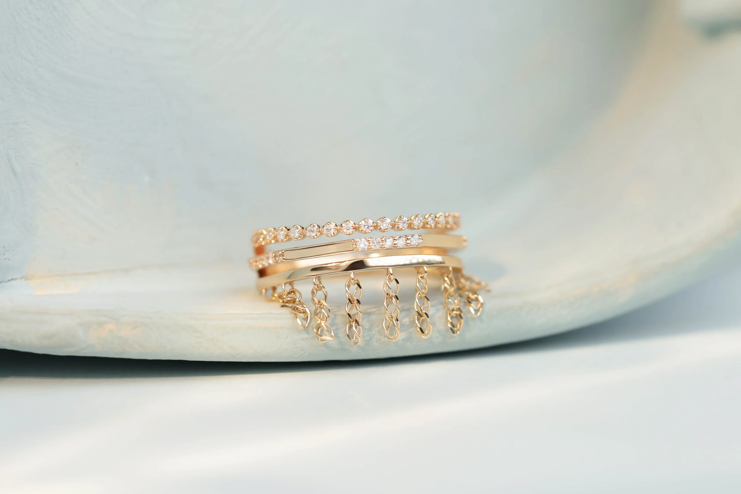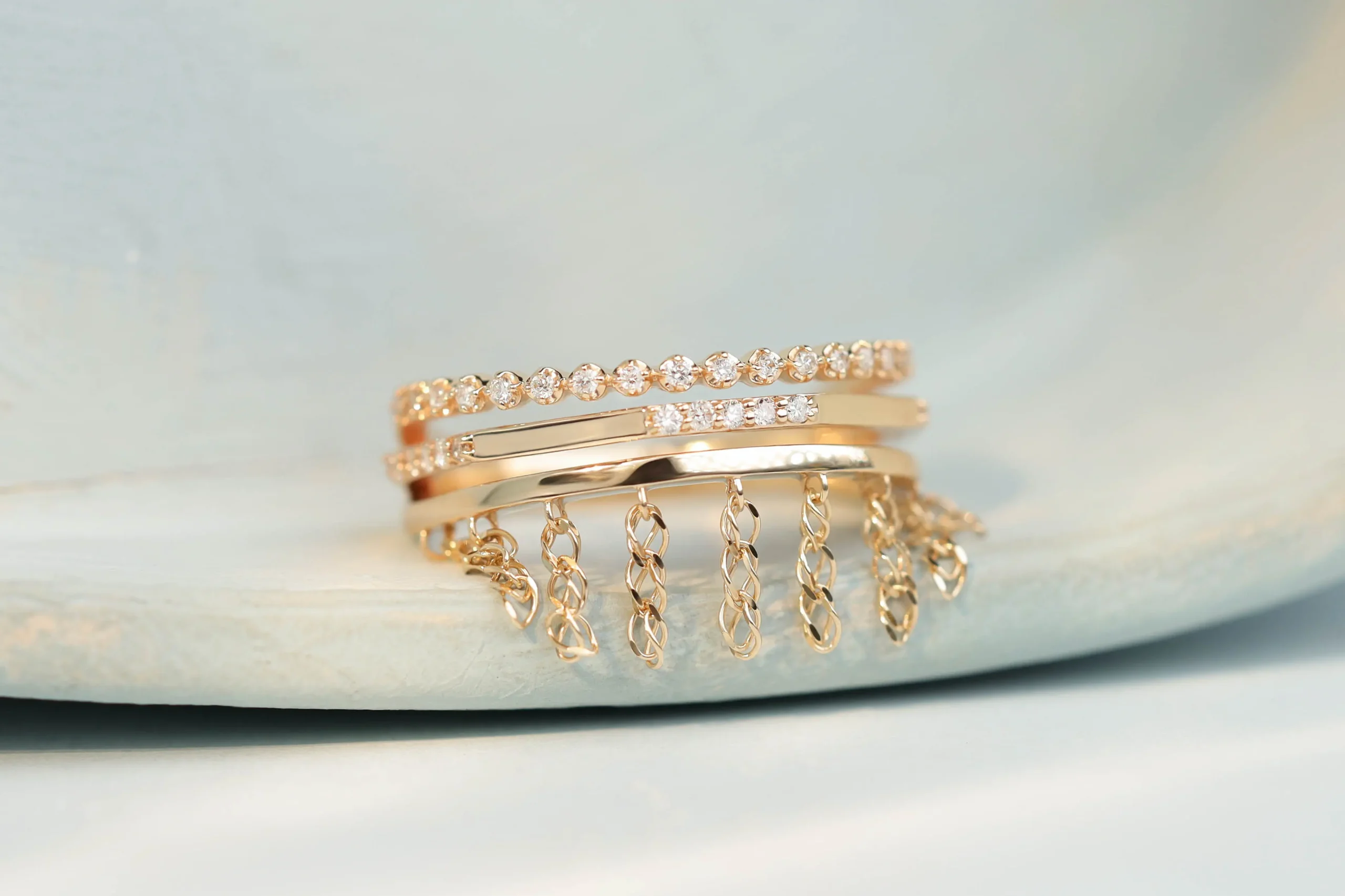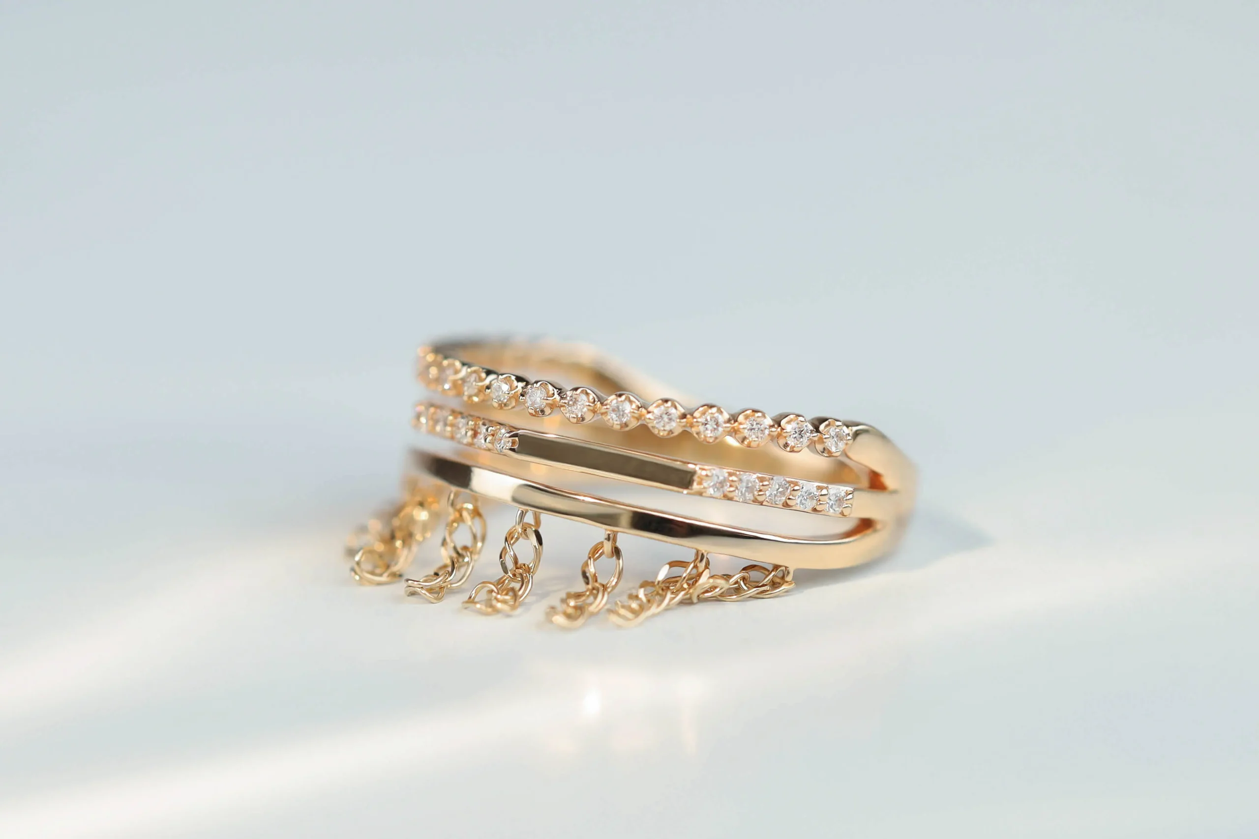 Золотое кольцо общим весом 2,62 гр с 34 бриллиантами в огранке «круглая», 0,15 кт, цвет 5, чистота 5.