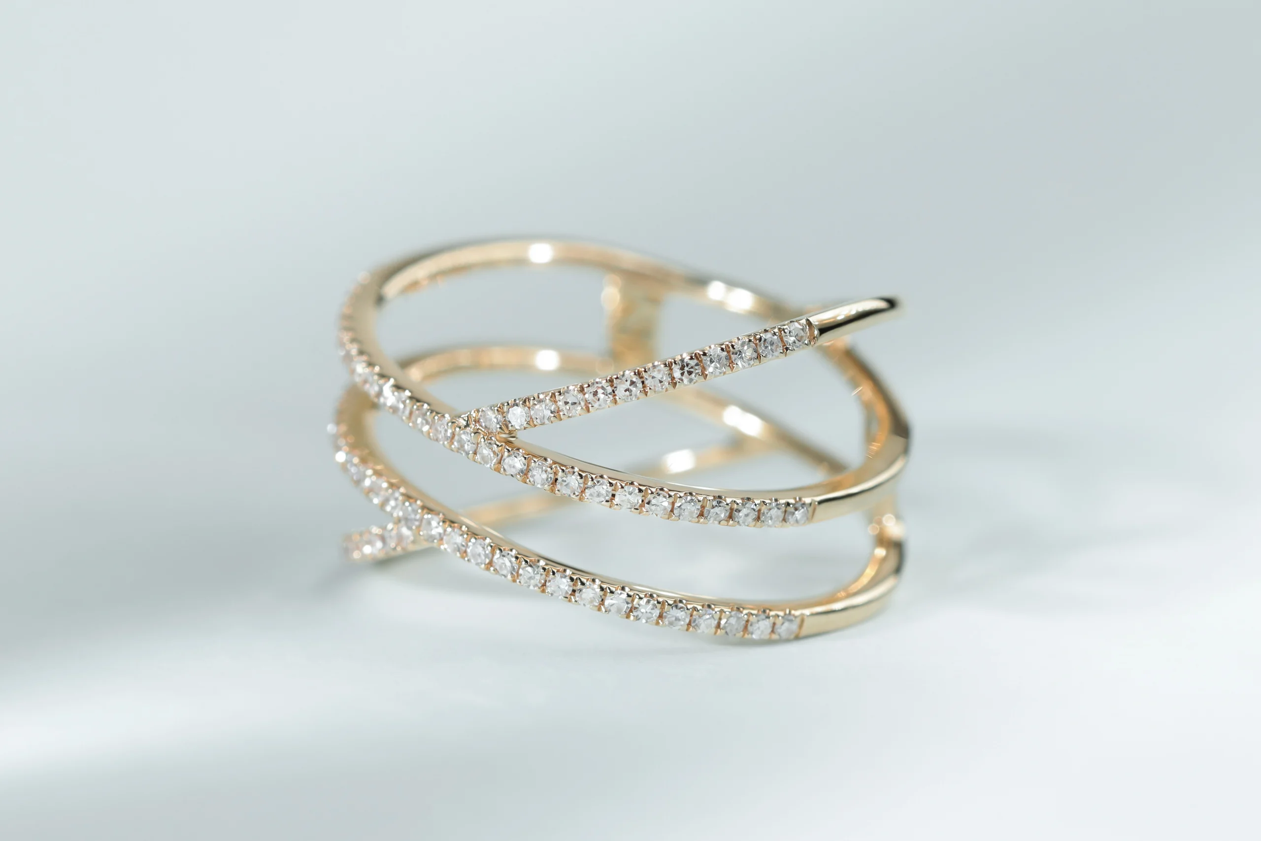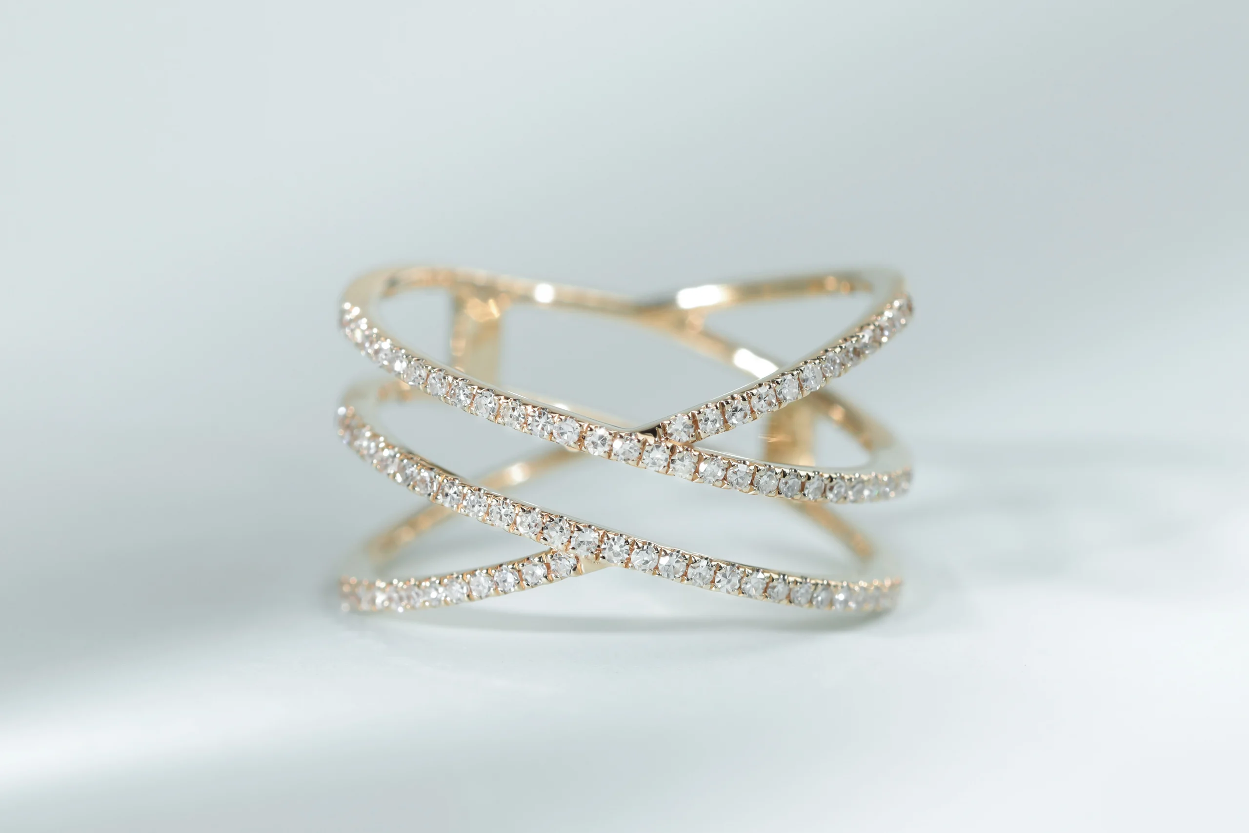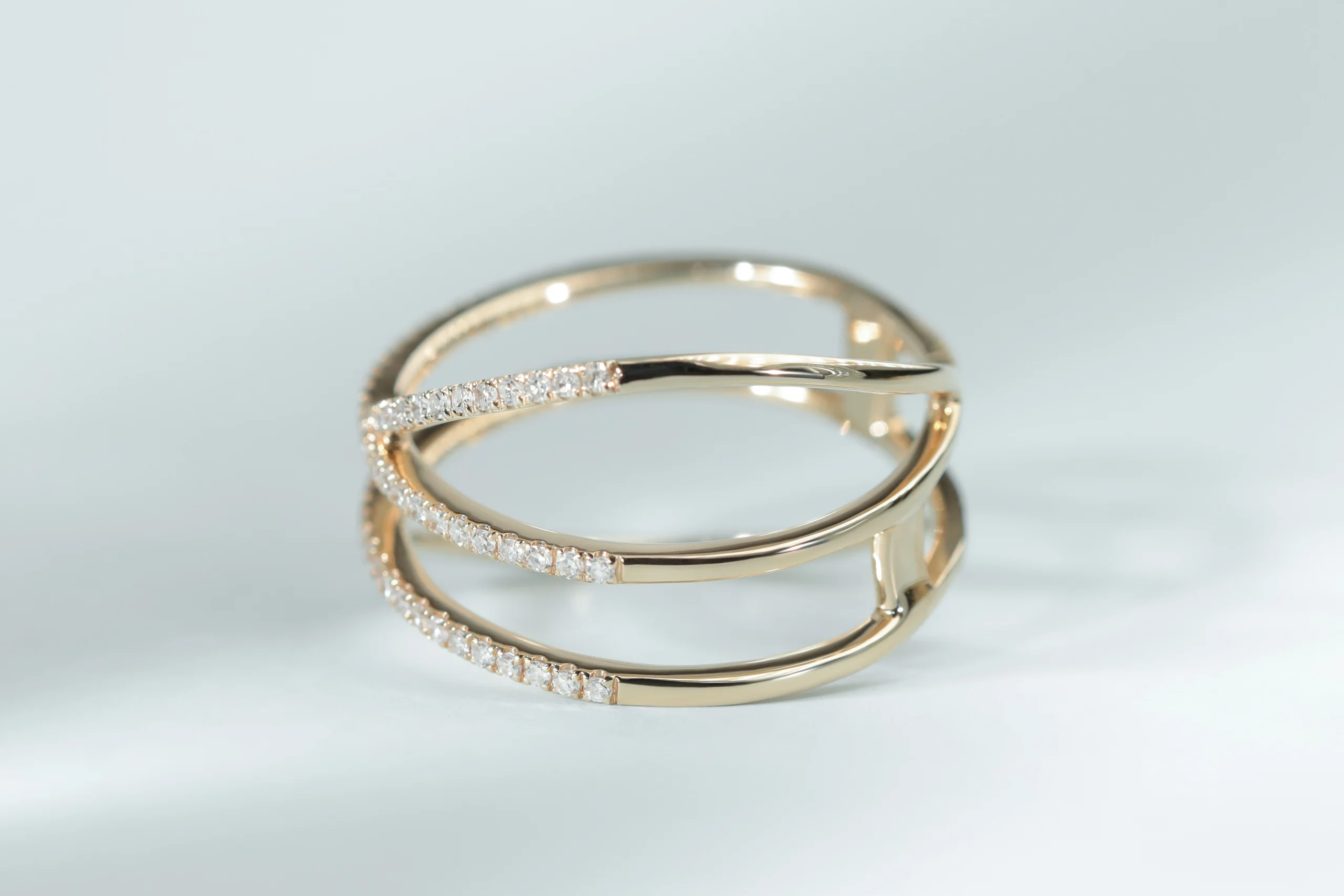 Кольцо из золота с 78 бриллиантами в огранке «круглая» весом 0,25 карат, цвет 3, чистота 5.