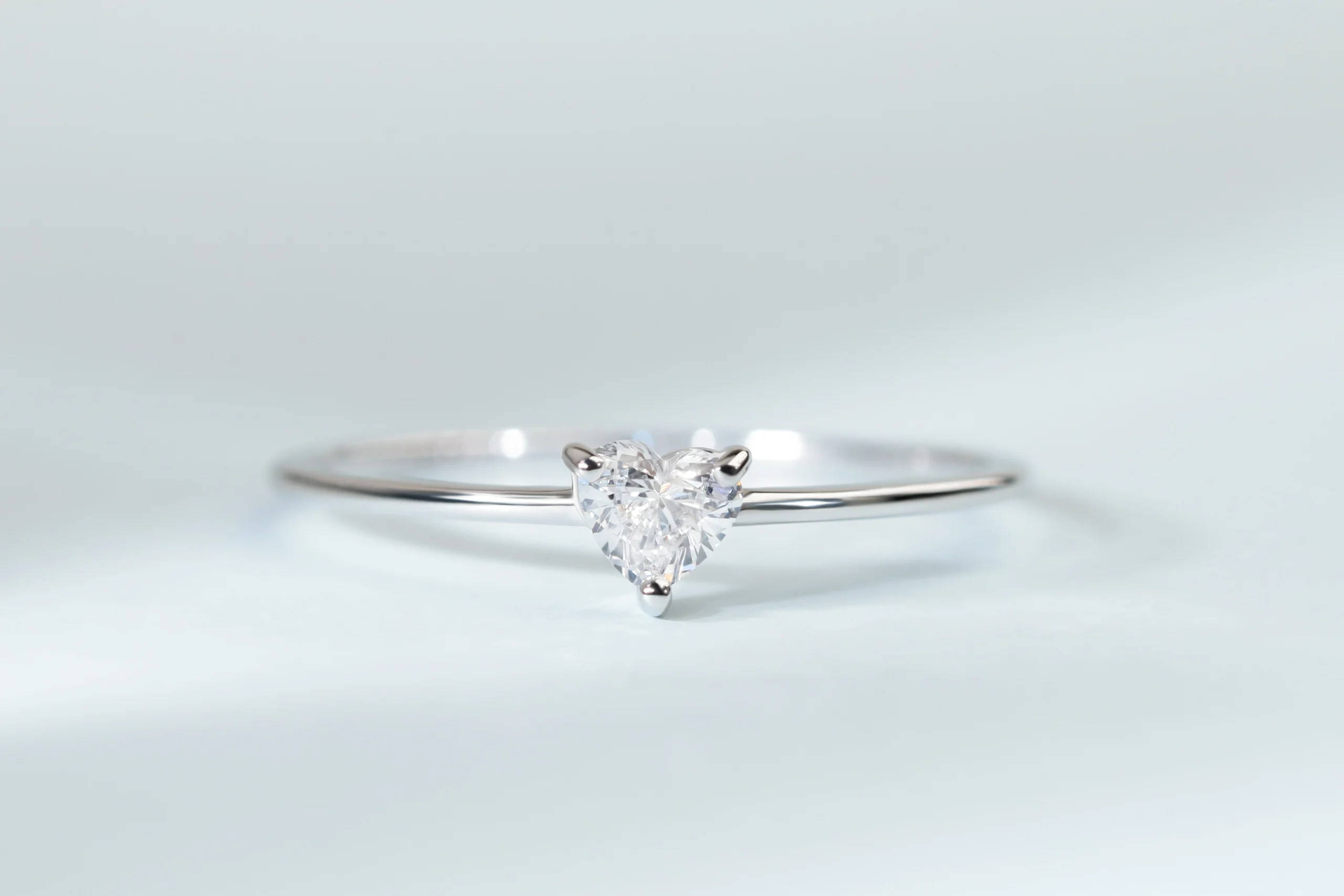 Кольцо из золота с 1 бриллиантом в огранке «сердце» весом 0,19 карат, цвет 4, чистота 5.