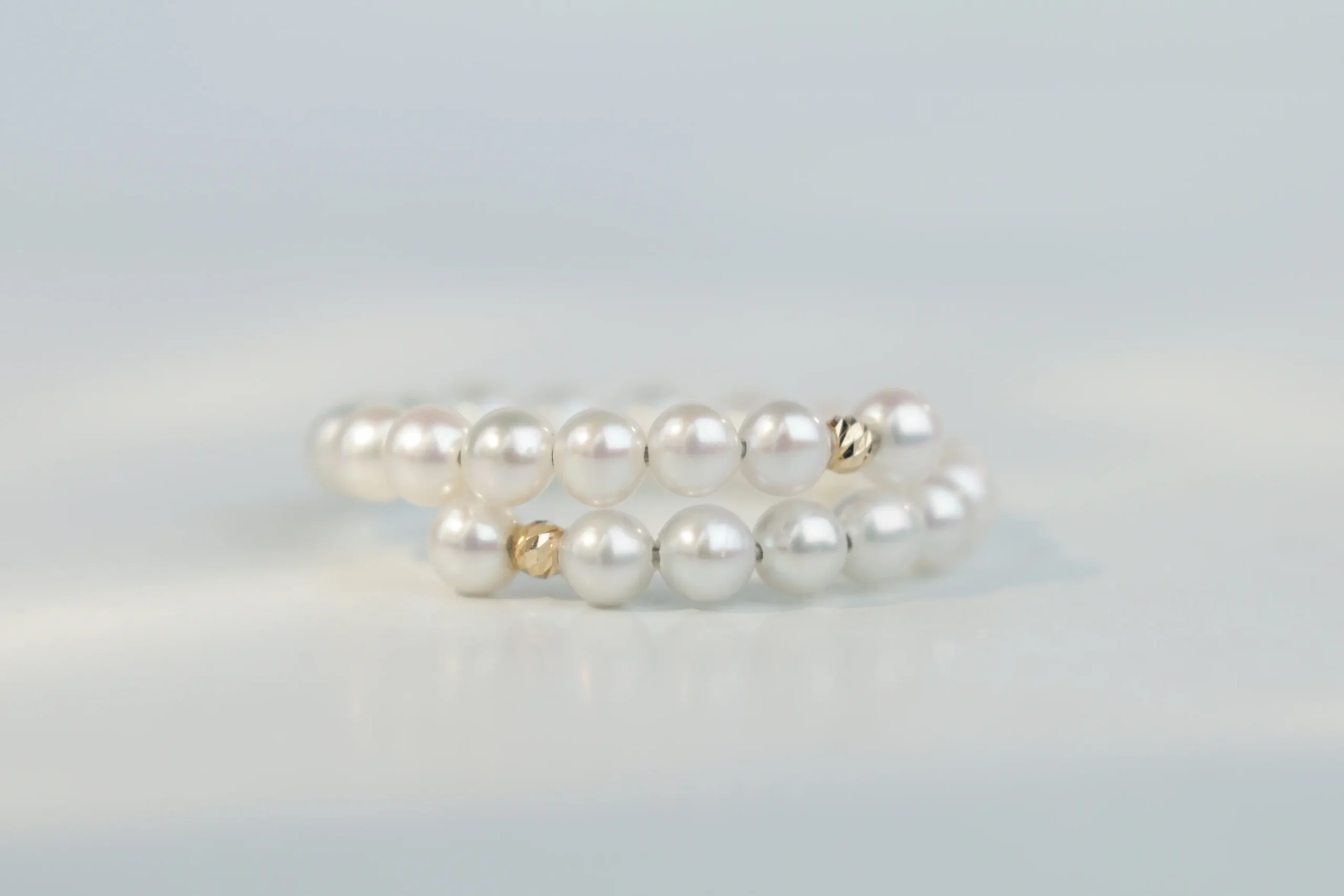 Кольцо с жемчугом и бусинами из золота с алмазными гранями.