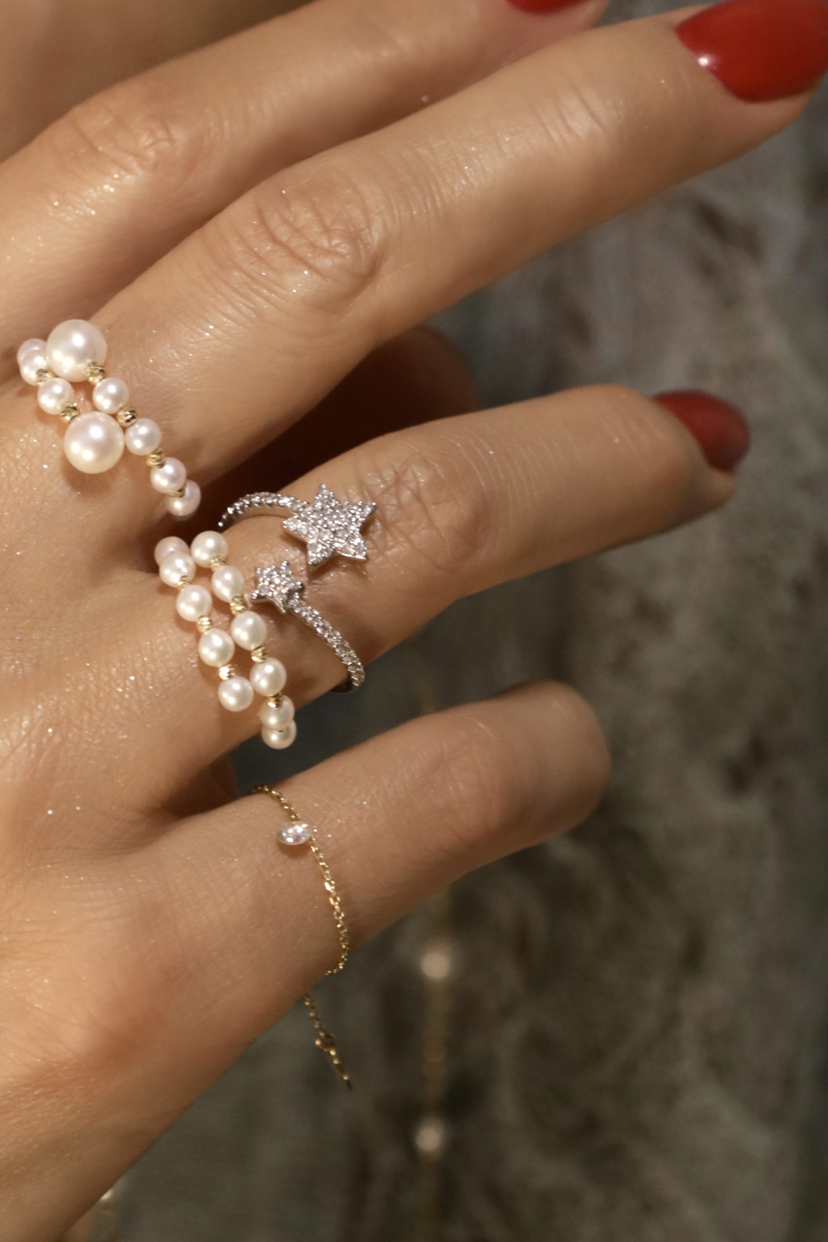 Кольцо из золота с 50 бриллиантами в огранке «круглая» весом 0,29 карат, цвет 3, чистота 5.