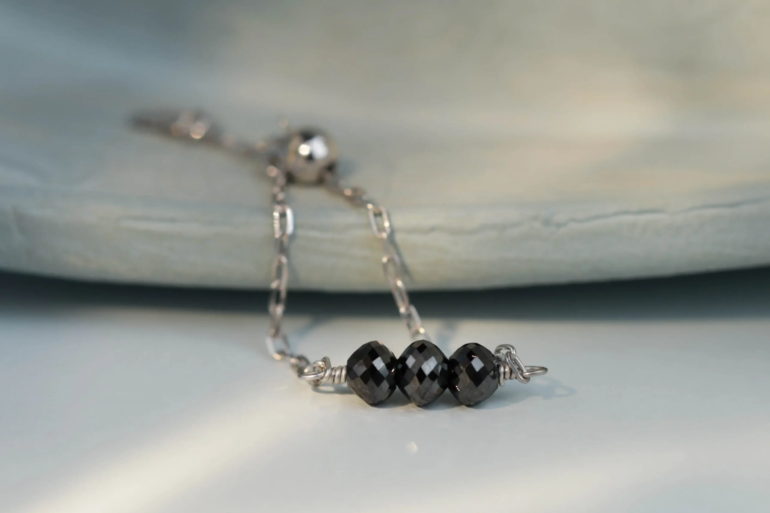 Кольцо из золота с 3 черными бриллиантами в огранке «круглая» весом 0,65 карат, цвет 8, чистота 9.