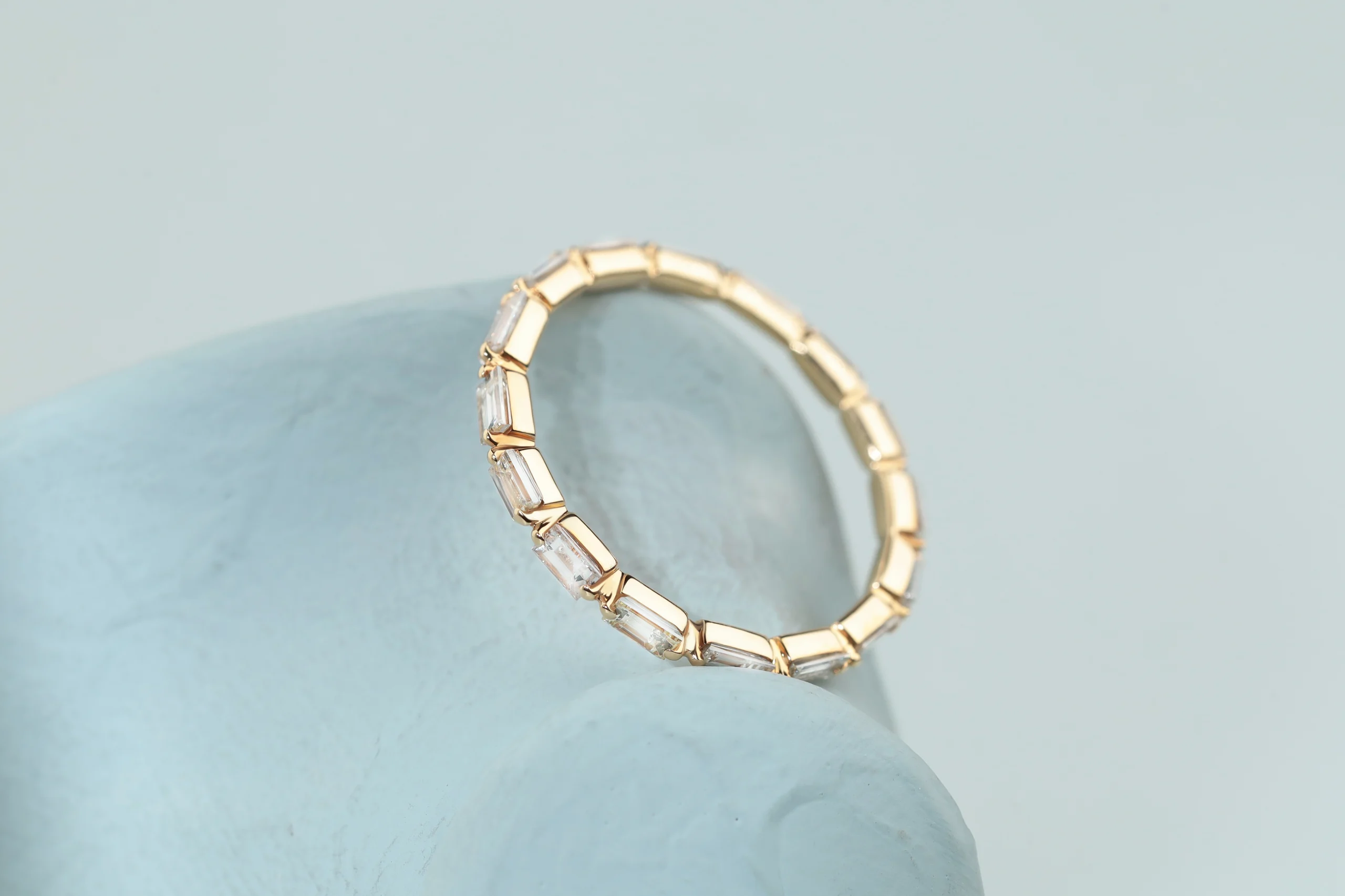 Золотое кольцо общим весом 1,17 гр с 16 бриллиантами в огранке «багет», 0,73 кт, цвет 4, чистота 5.