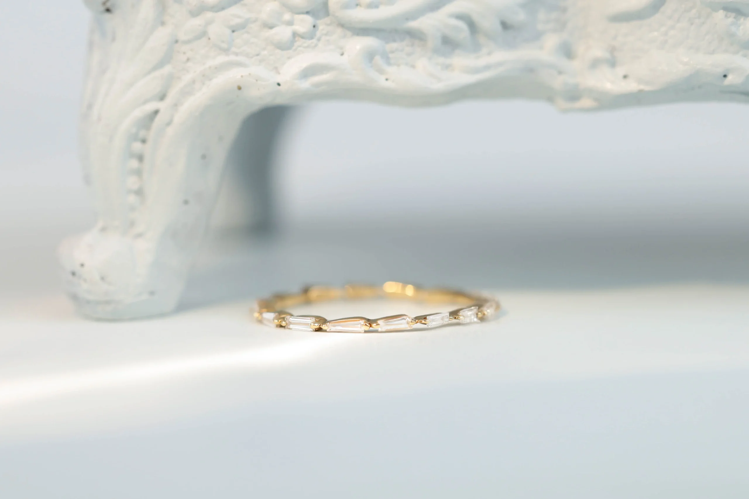 Золотое кольцо общим весом 0,96 гр с 16 бриллиантами в огранке «багет», 0,51 кт, цвет 4, чистота 5.