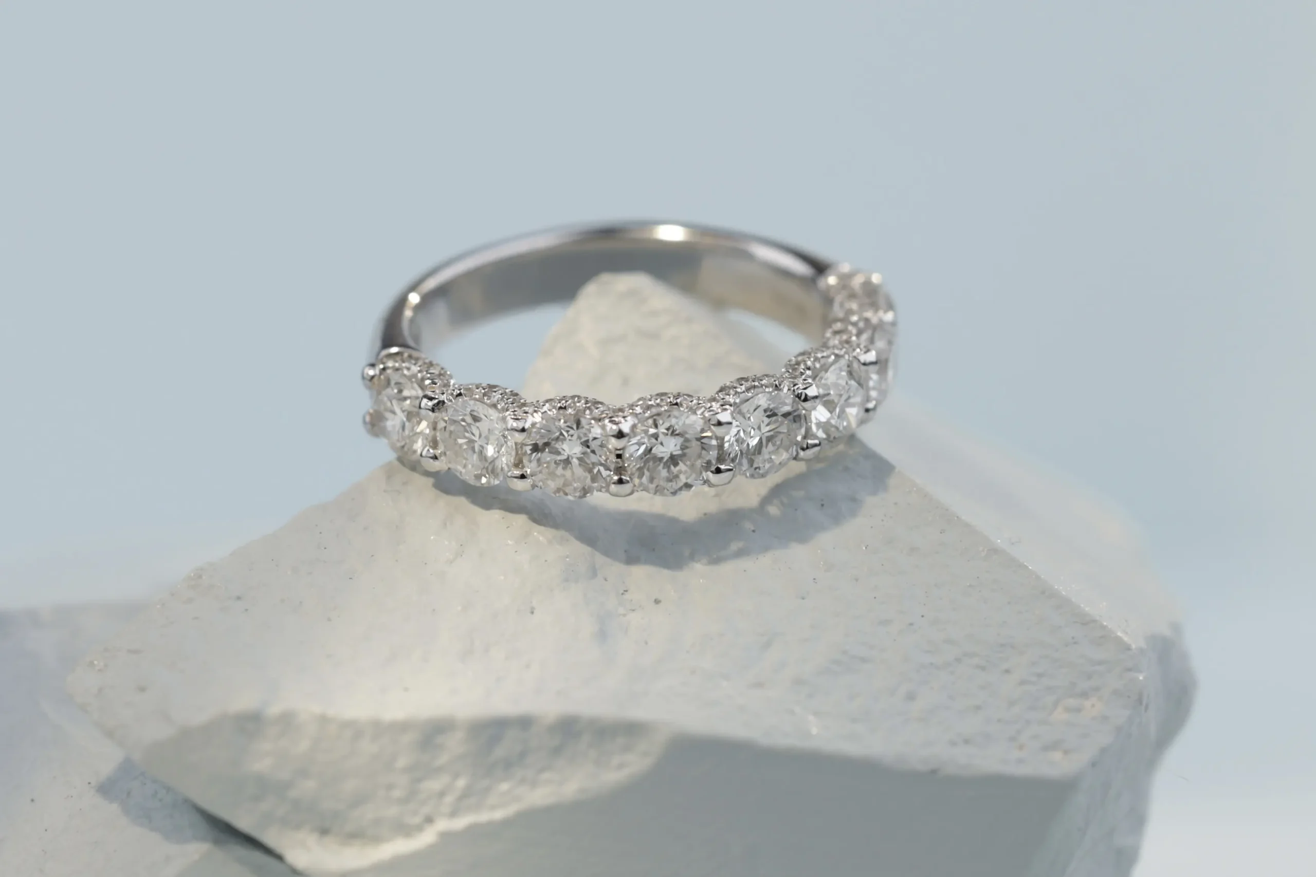 Кольцо из золота с 74 бриллиантами огранки «круглая» весом 1,80 карат, цвет 3, чистота 5.
