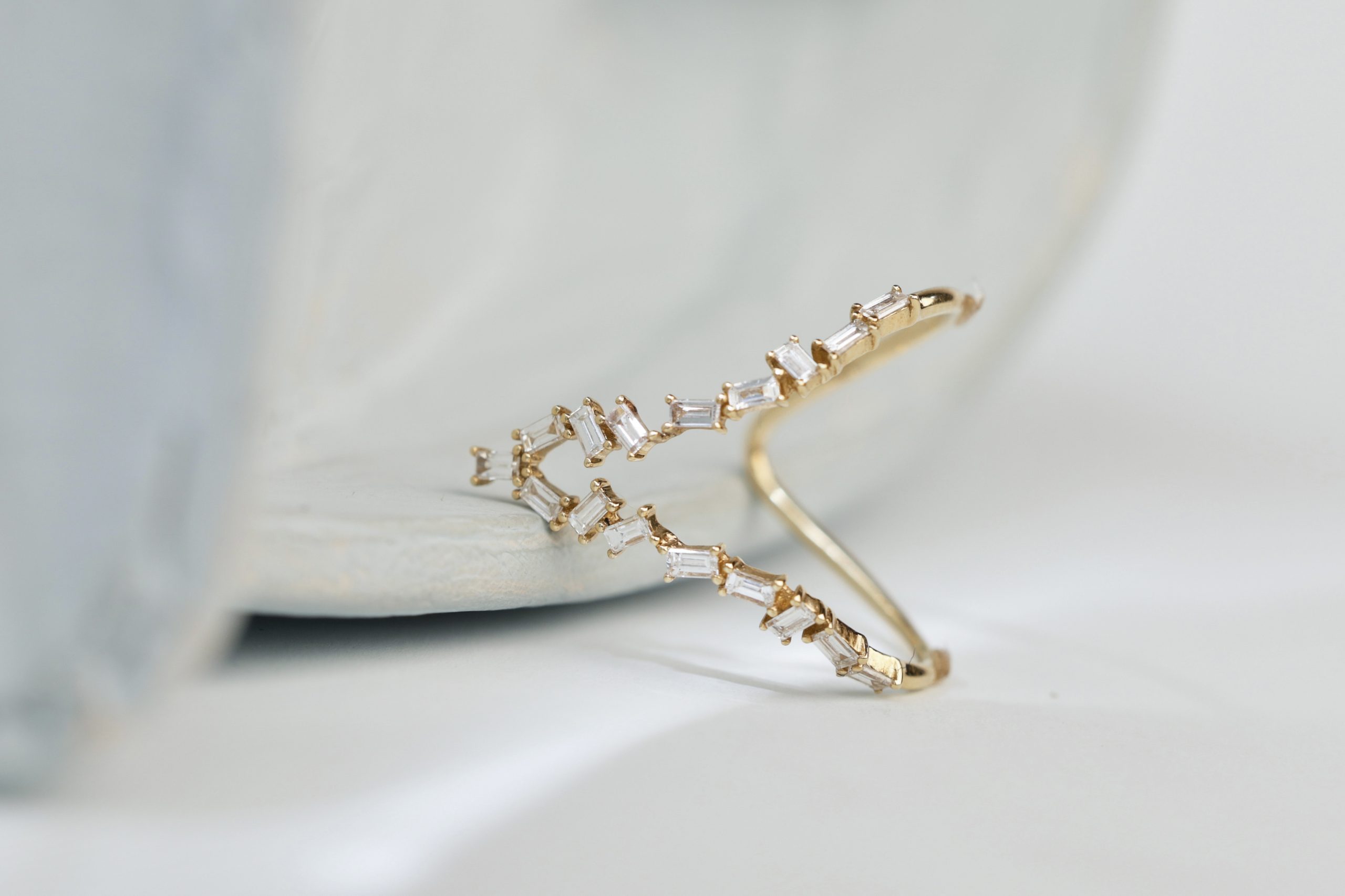 Кольцо из золота с 17 бриллиантами в огранке «багет» весом 0,40 карат, цвет 3, чистота 5.
