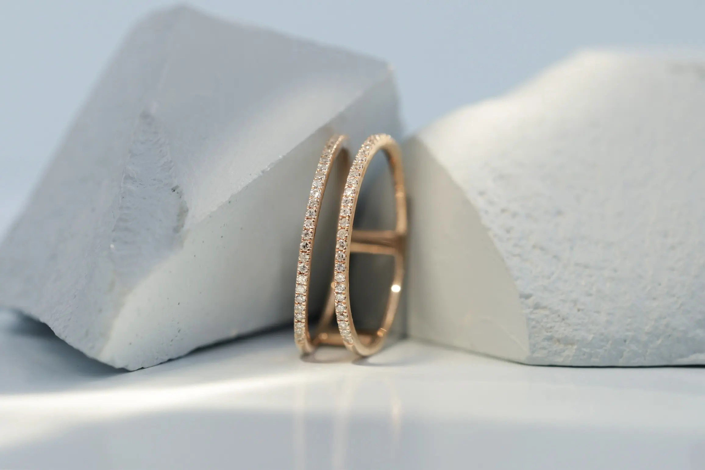 Кольцо из золота с 66 бриллиантами в огранке «круглая» весом 0,17 карат, цвет 3, чистота 6.
