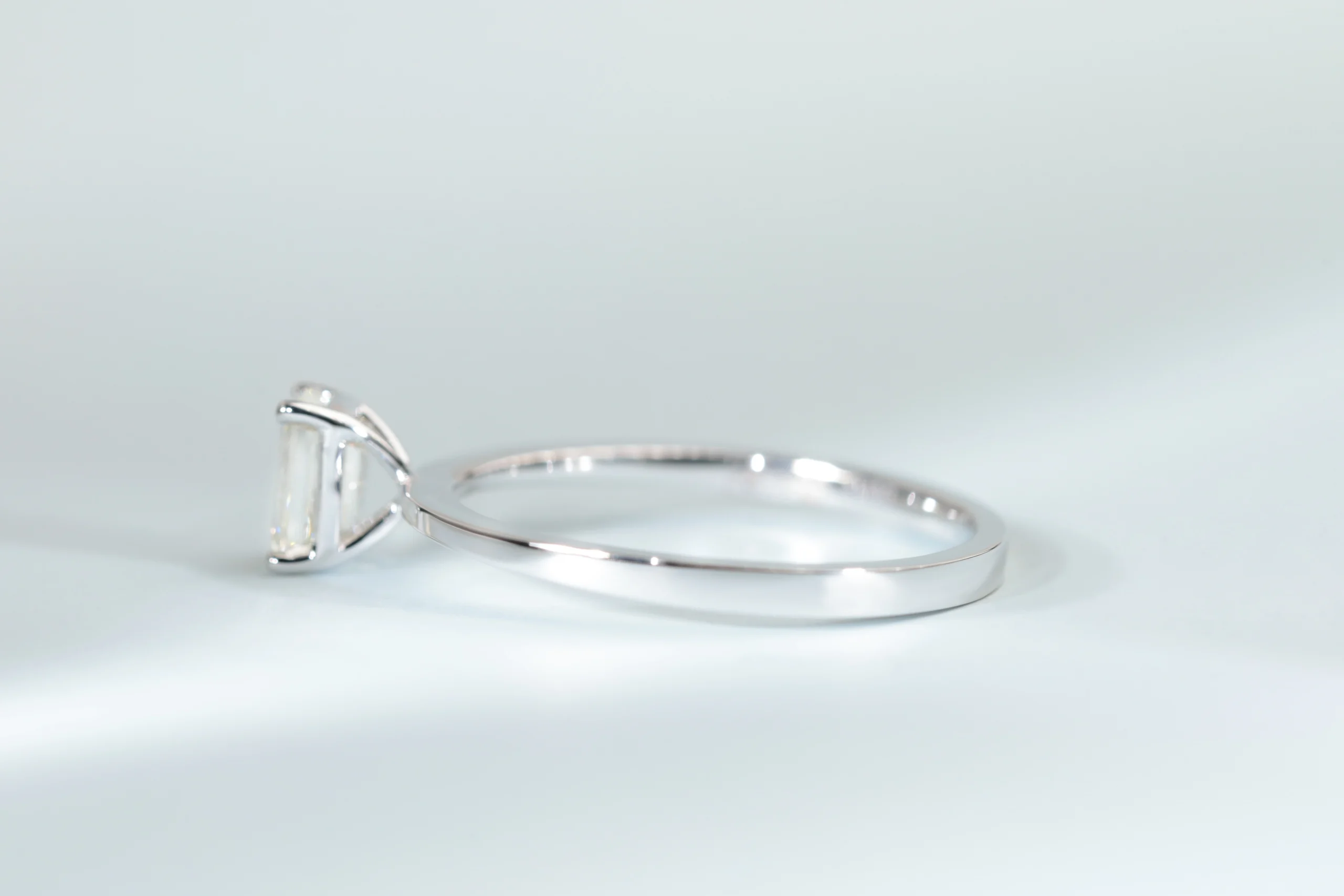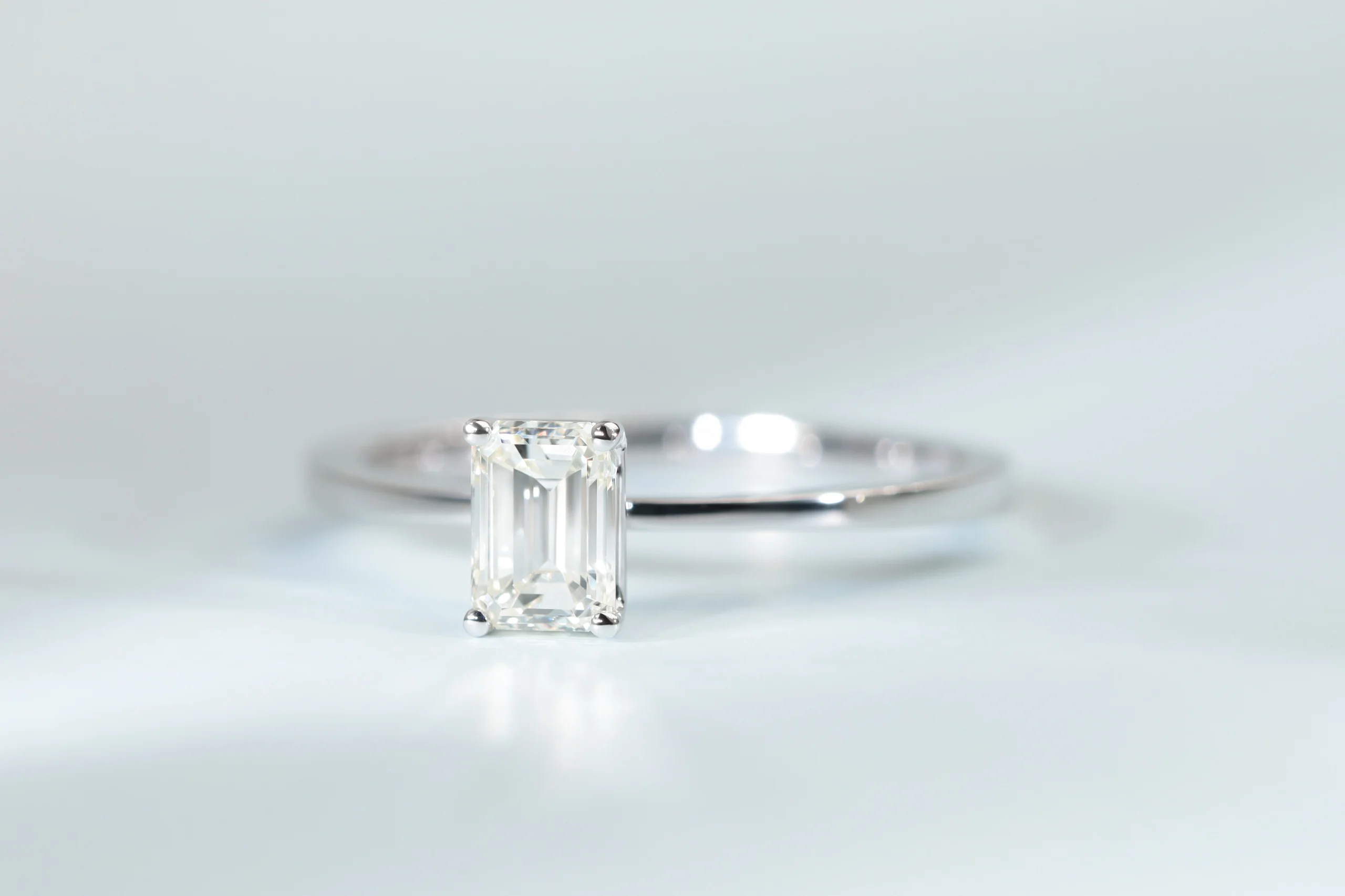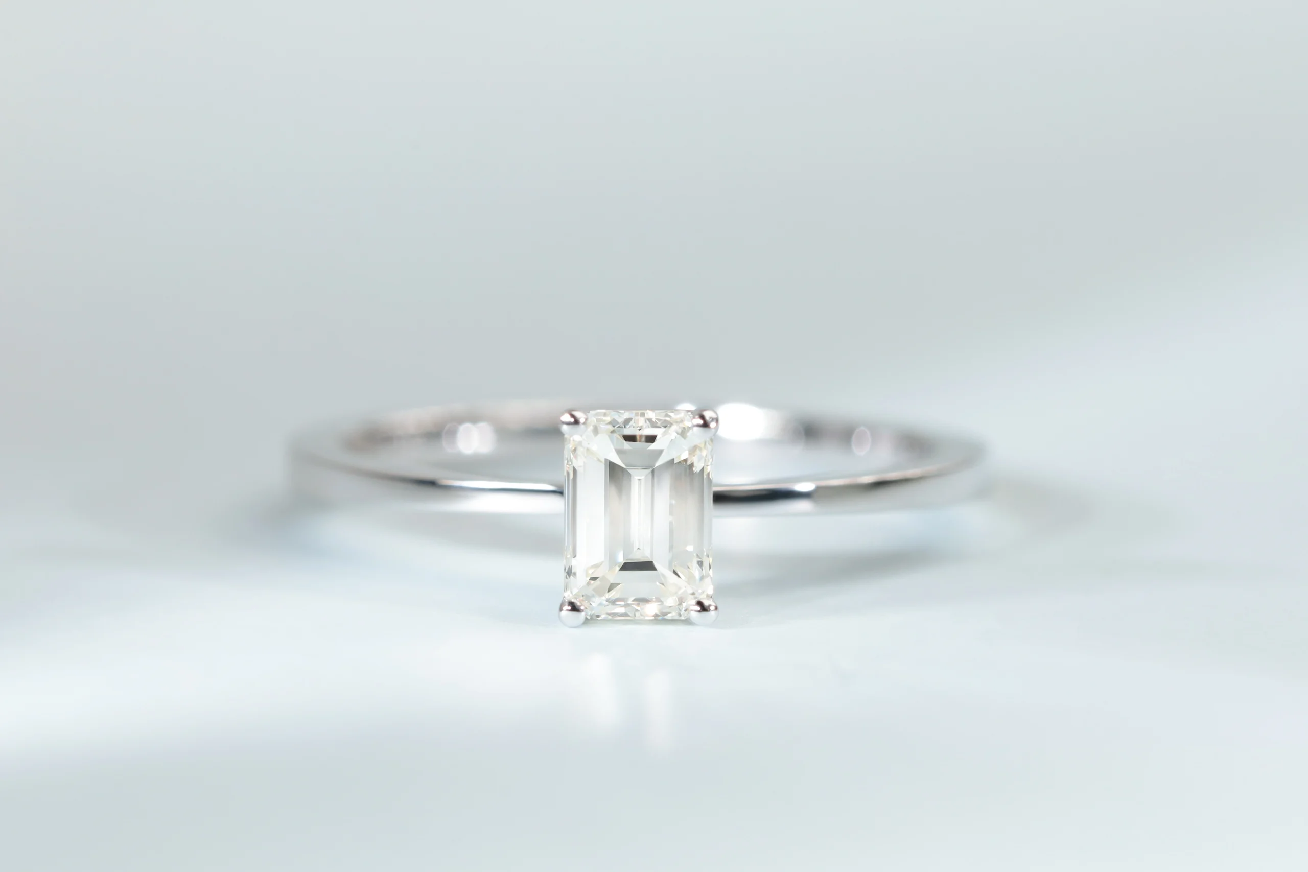 Кольцо из золота с 1 бриллиантом в огранке «багет» весом 0,53 карат, цвет 4, чистота 6.