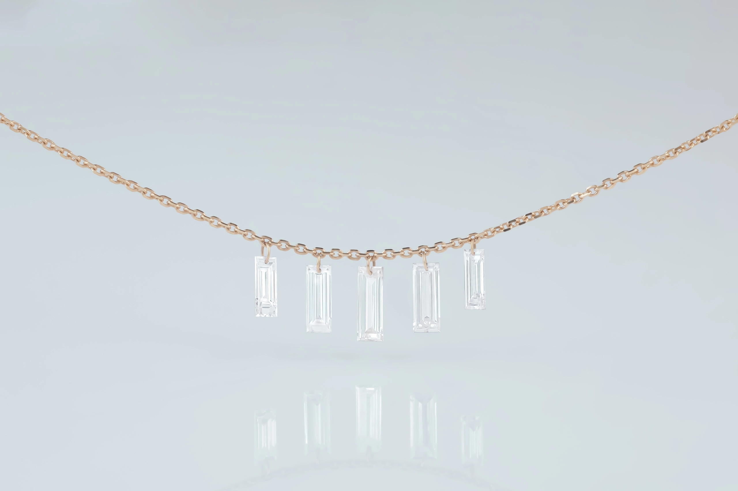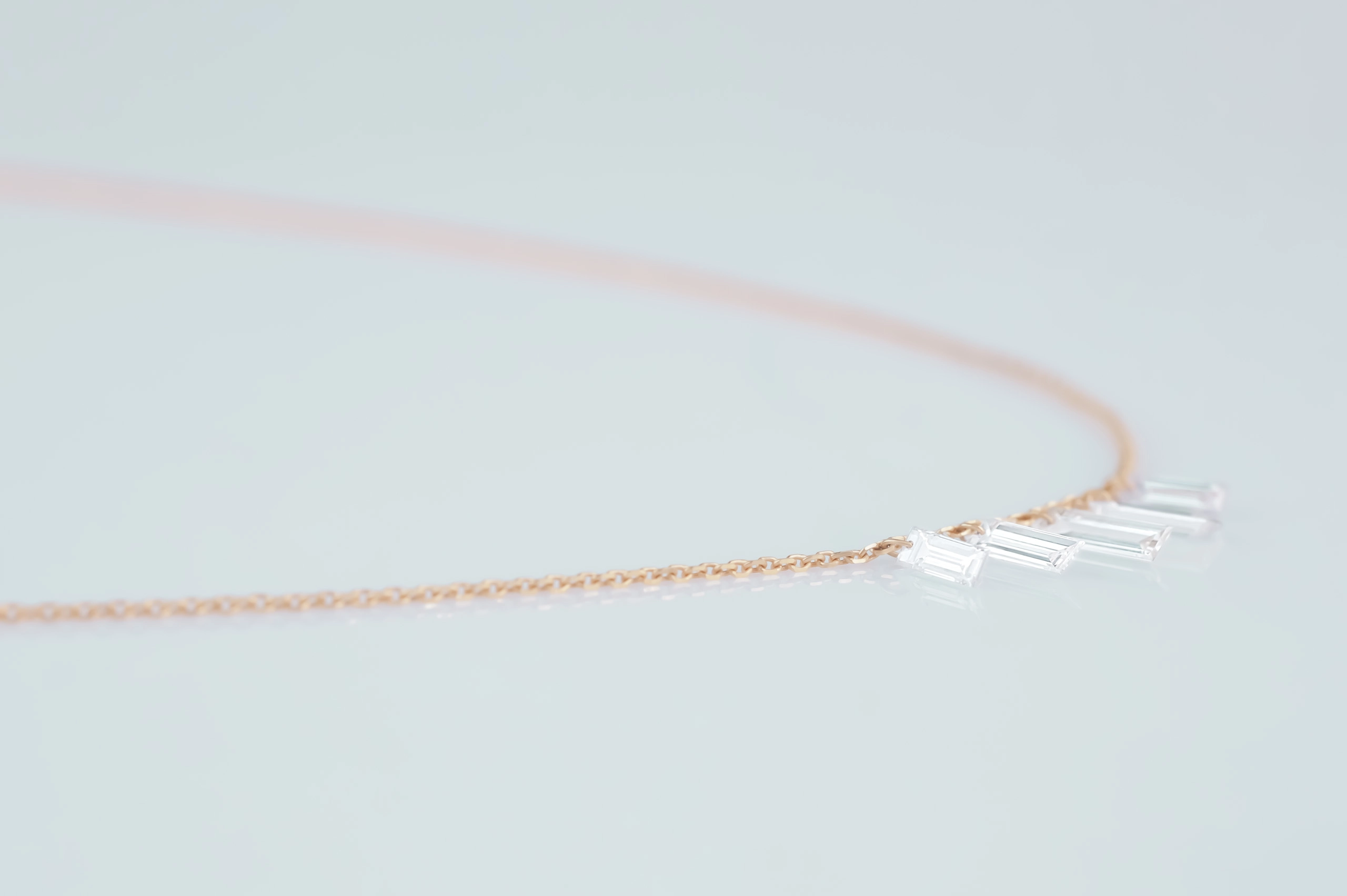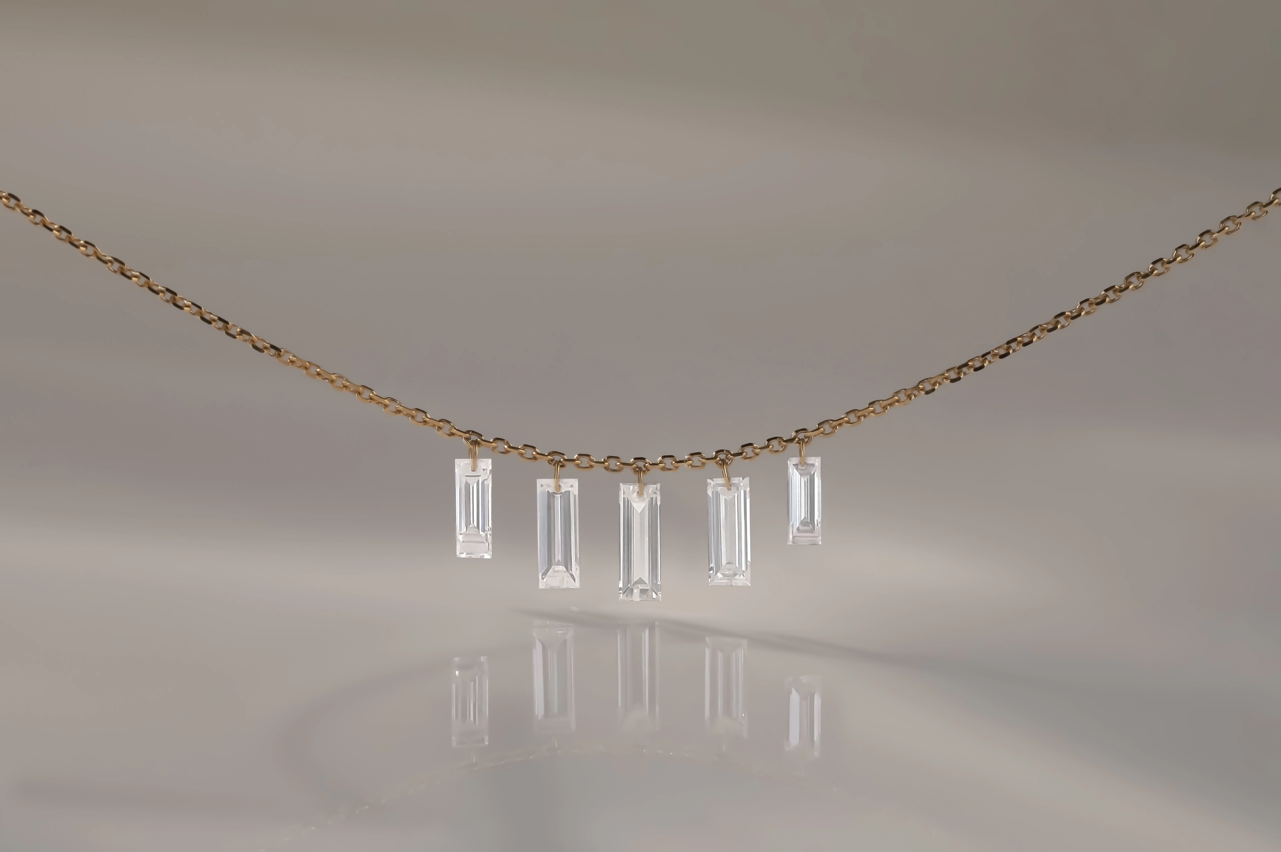 Колье из золота с 5 бриллиантами в огранке «багет» весом 0,60 карат, цвет 3, чистота 5.