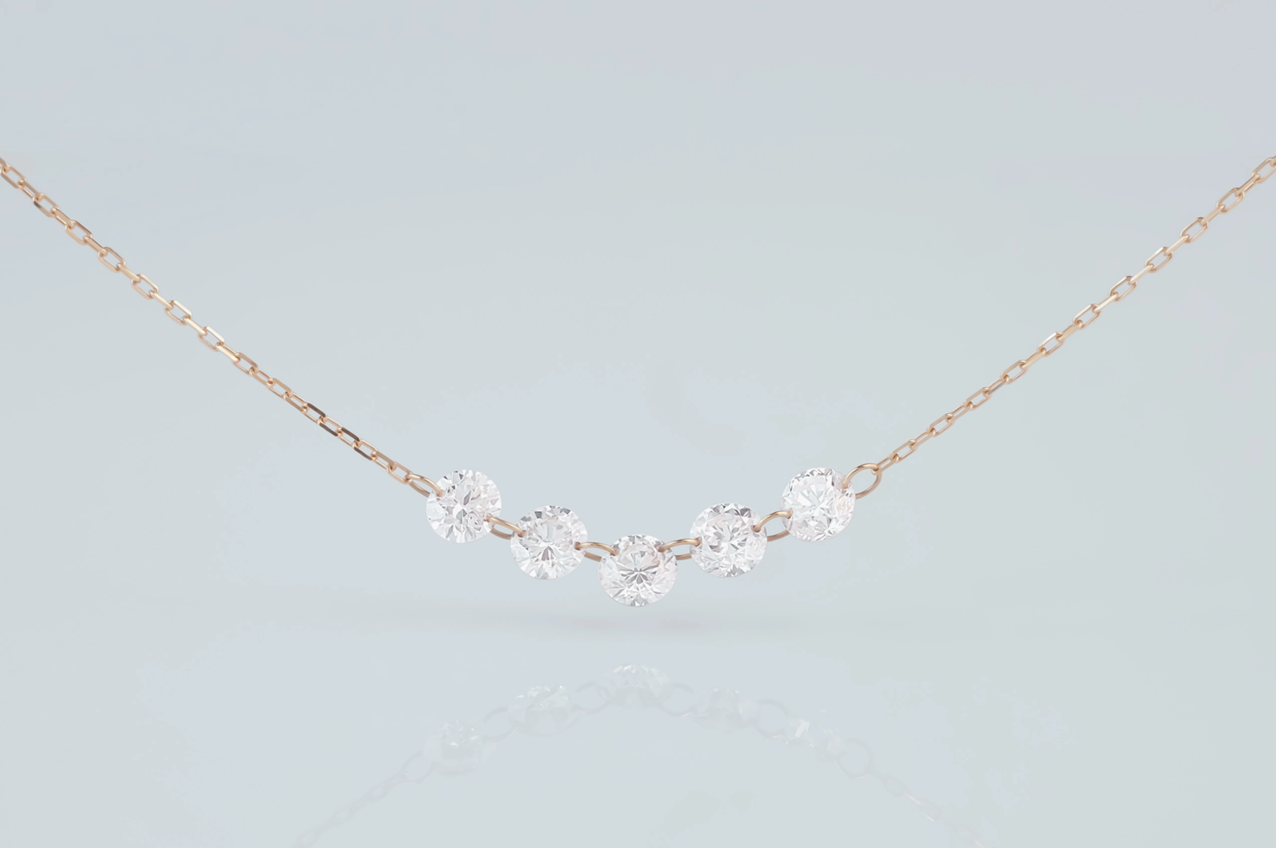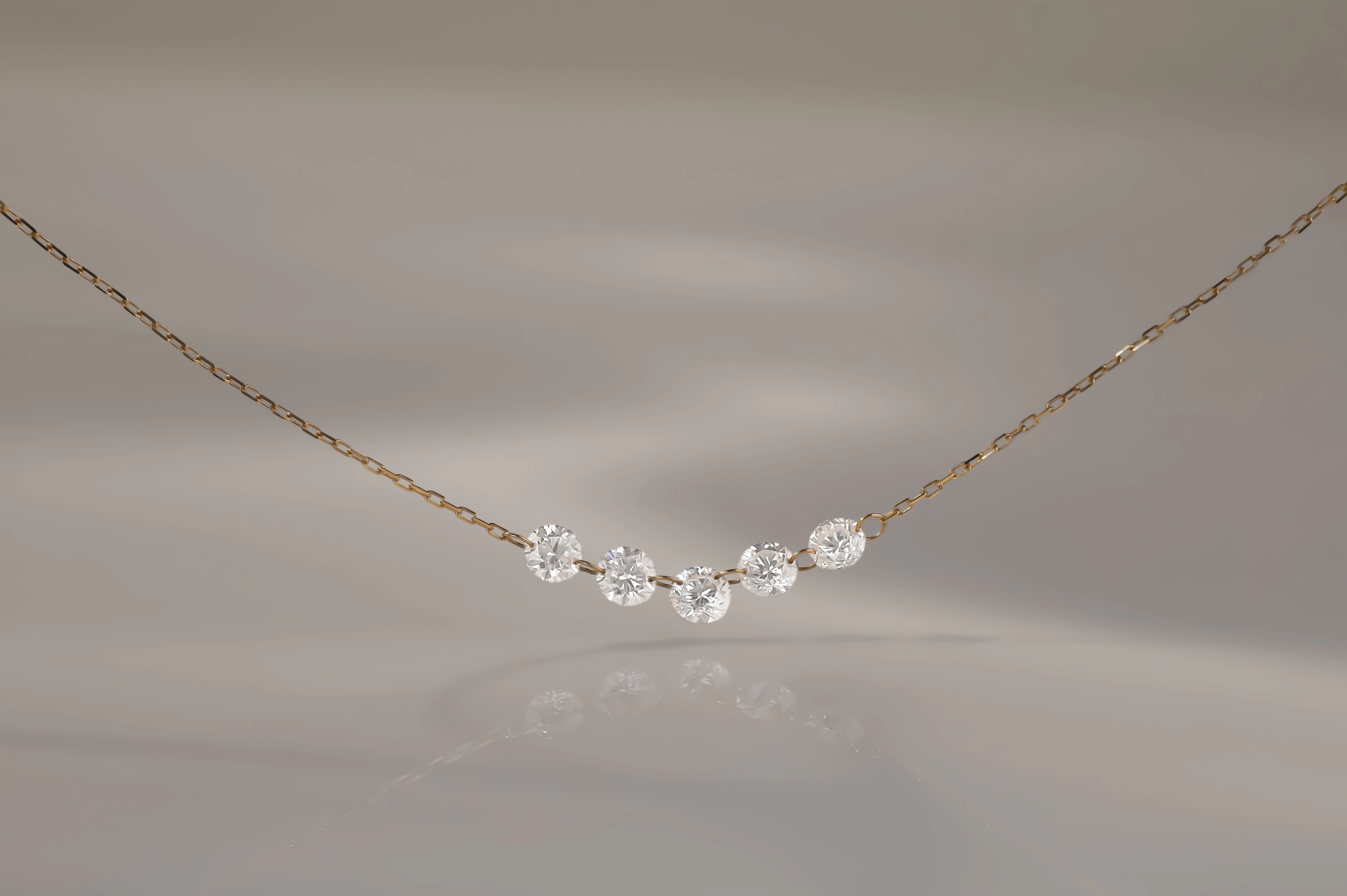 Колье из золота с 5 бриллиантами в огранке «круглая» весом 0,38 карат, цвет 3, чистота 5.