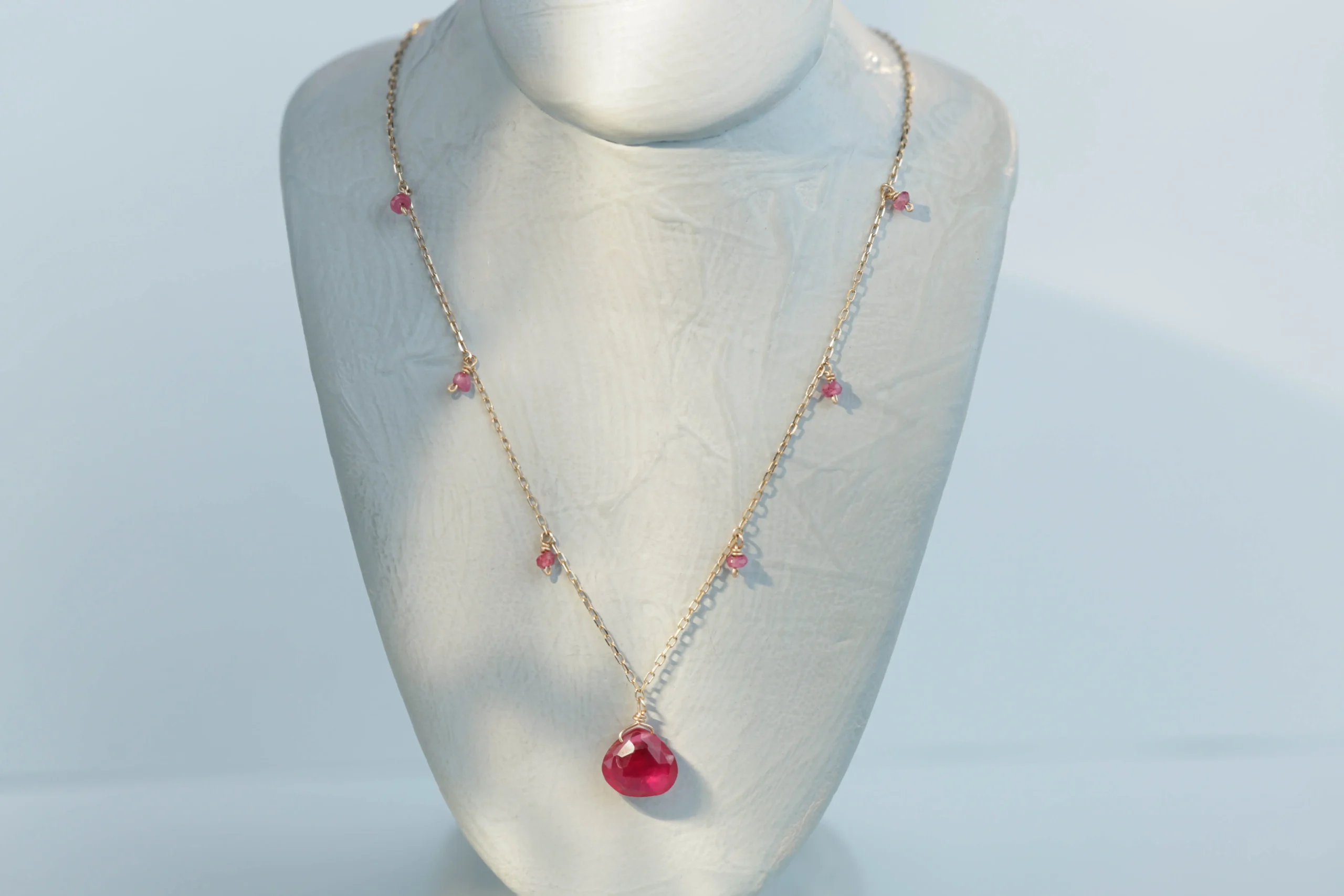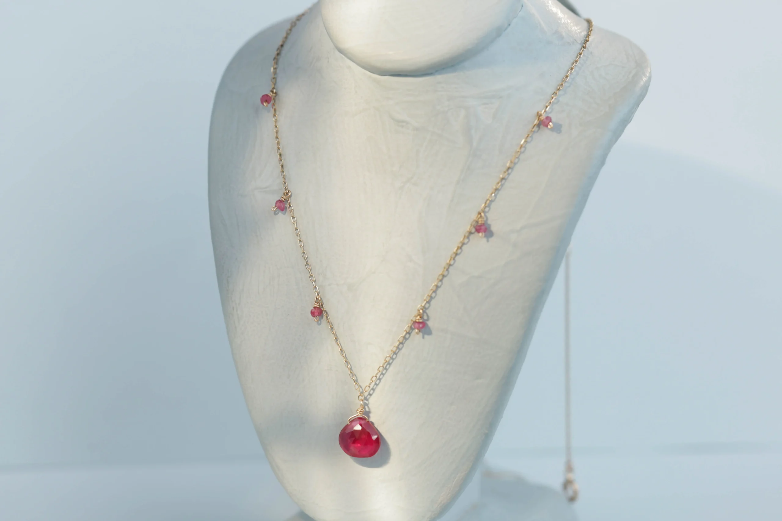 Колье из золота с 7 рубинами весом 9,50 карат, цвет 2, чистота 2.
