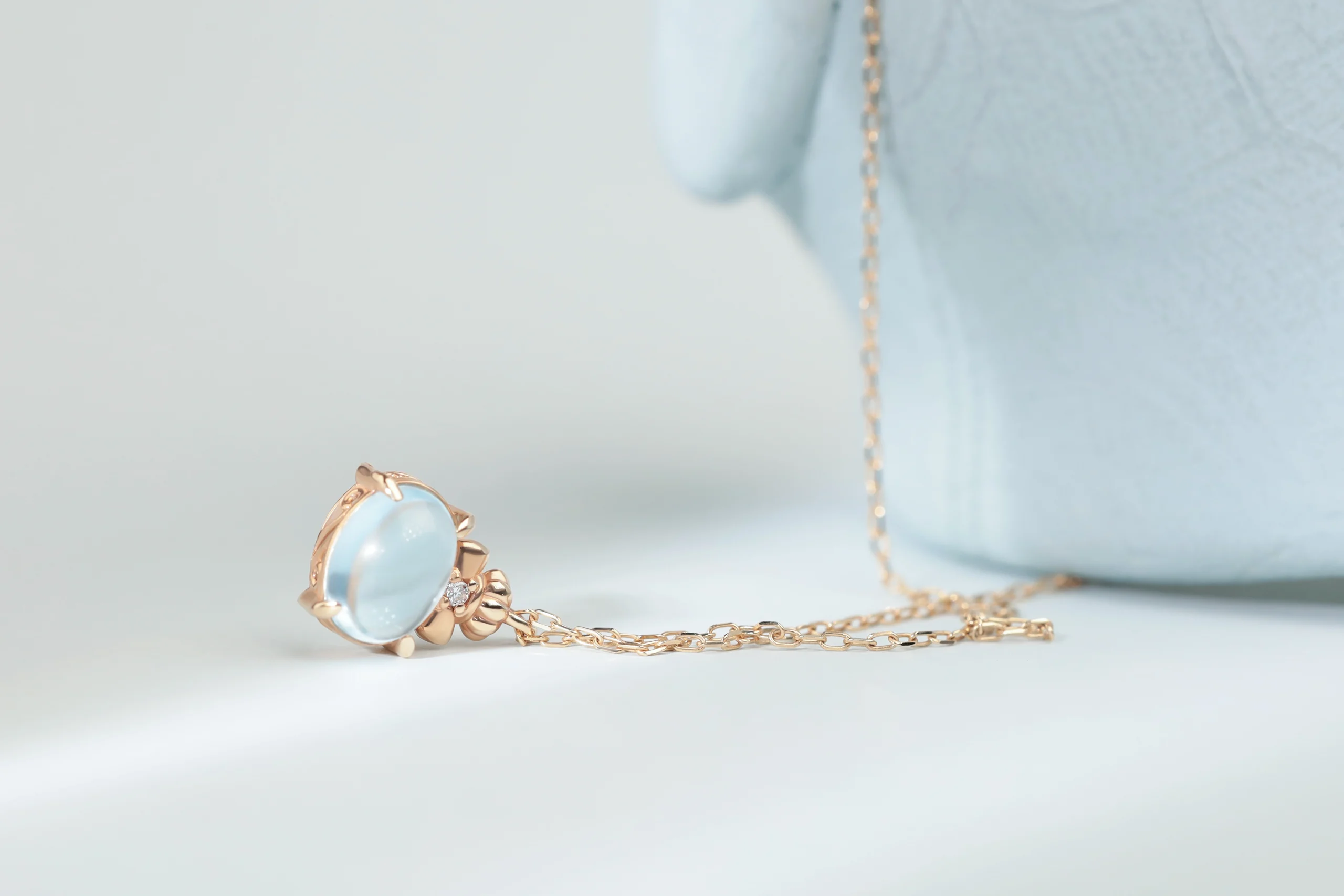 Колье из золота с 1 топазом весом 1,30 карат; 1 бриллиантом в огранке «круглая» весом 0,01 карат, цвет 4, чистота 5.