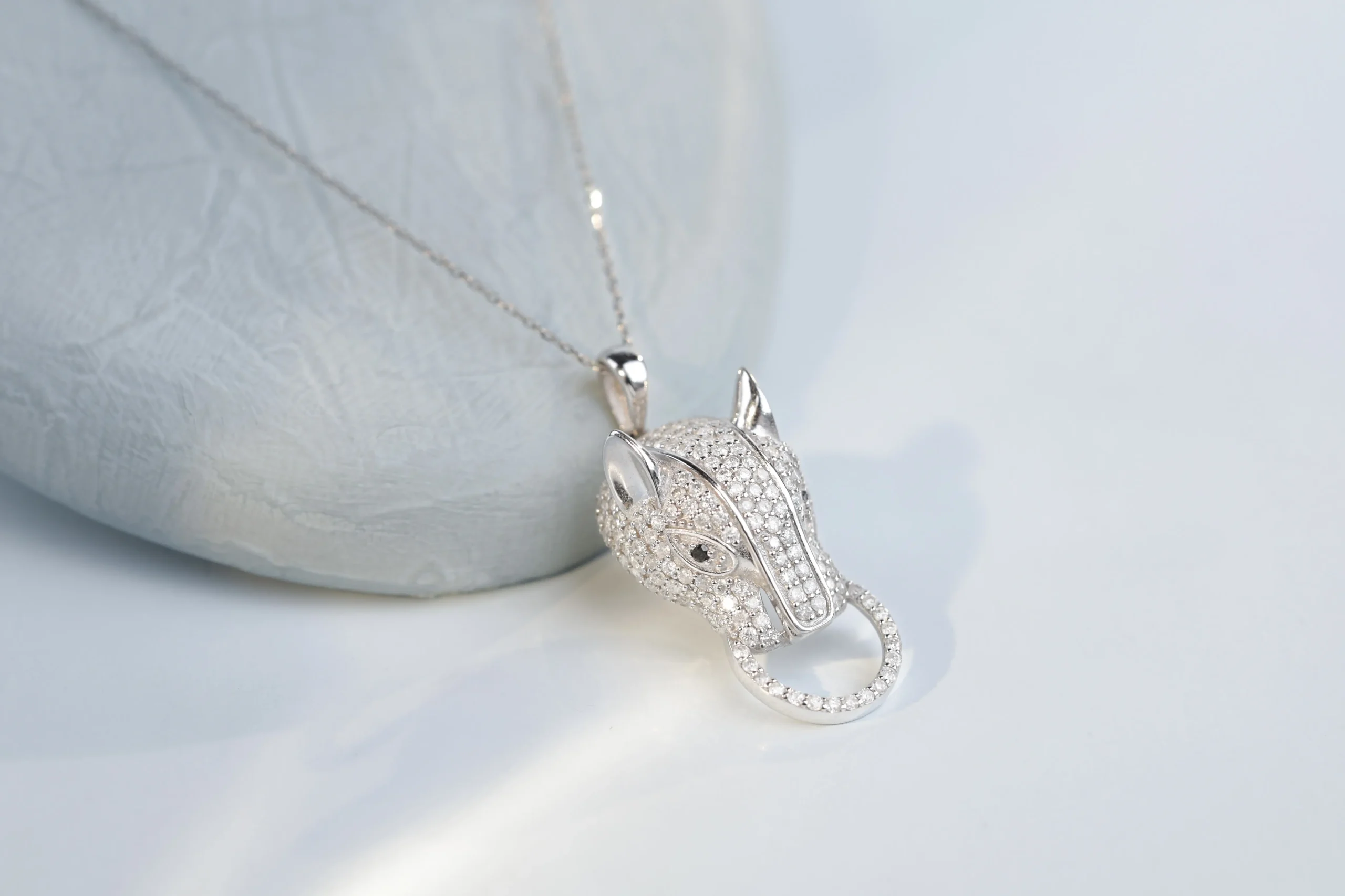 Колье из золота с 181 бриллиантами в огранке «круглая» весом 0,01 карат, цвет 4, чистота 5; 2 черными бриллиантами в огранке «круглая» весом 0,02 карат.