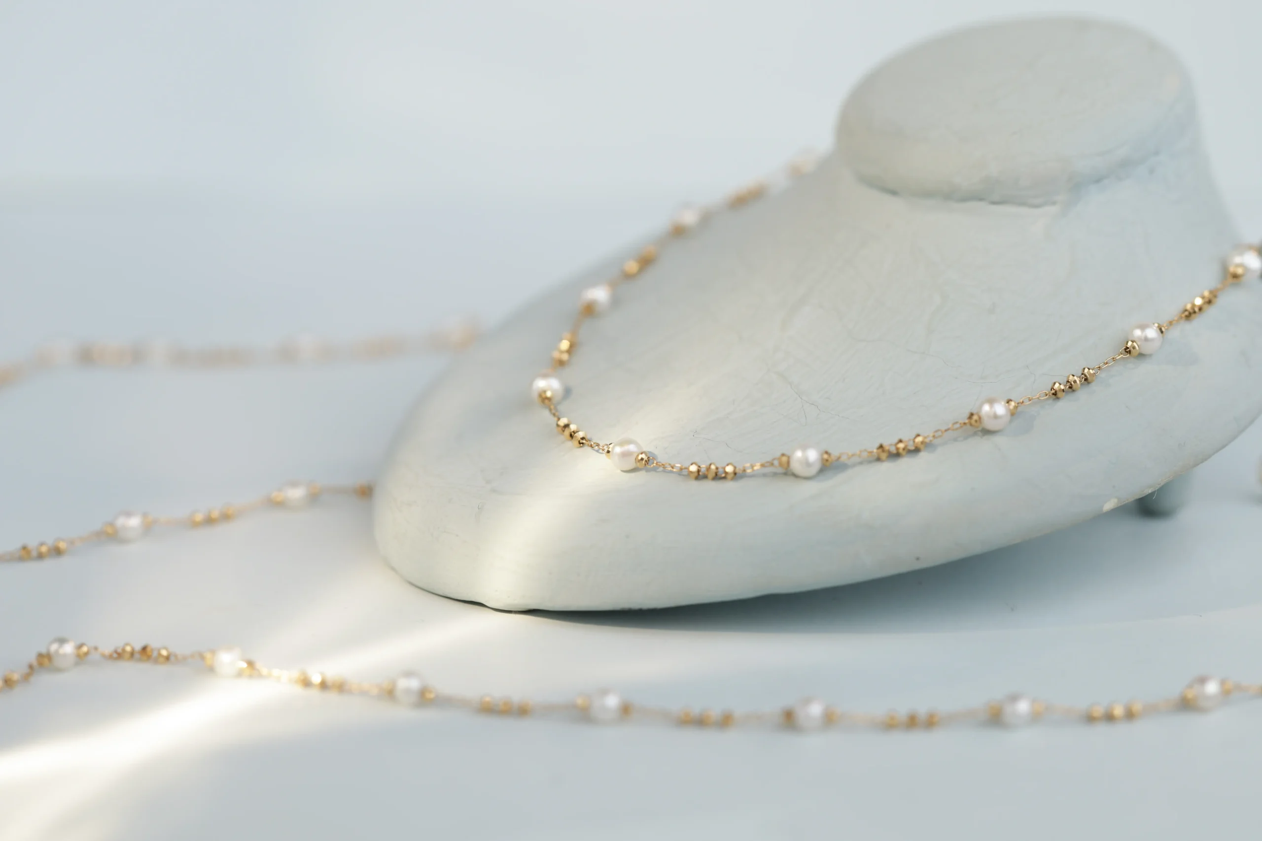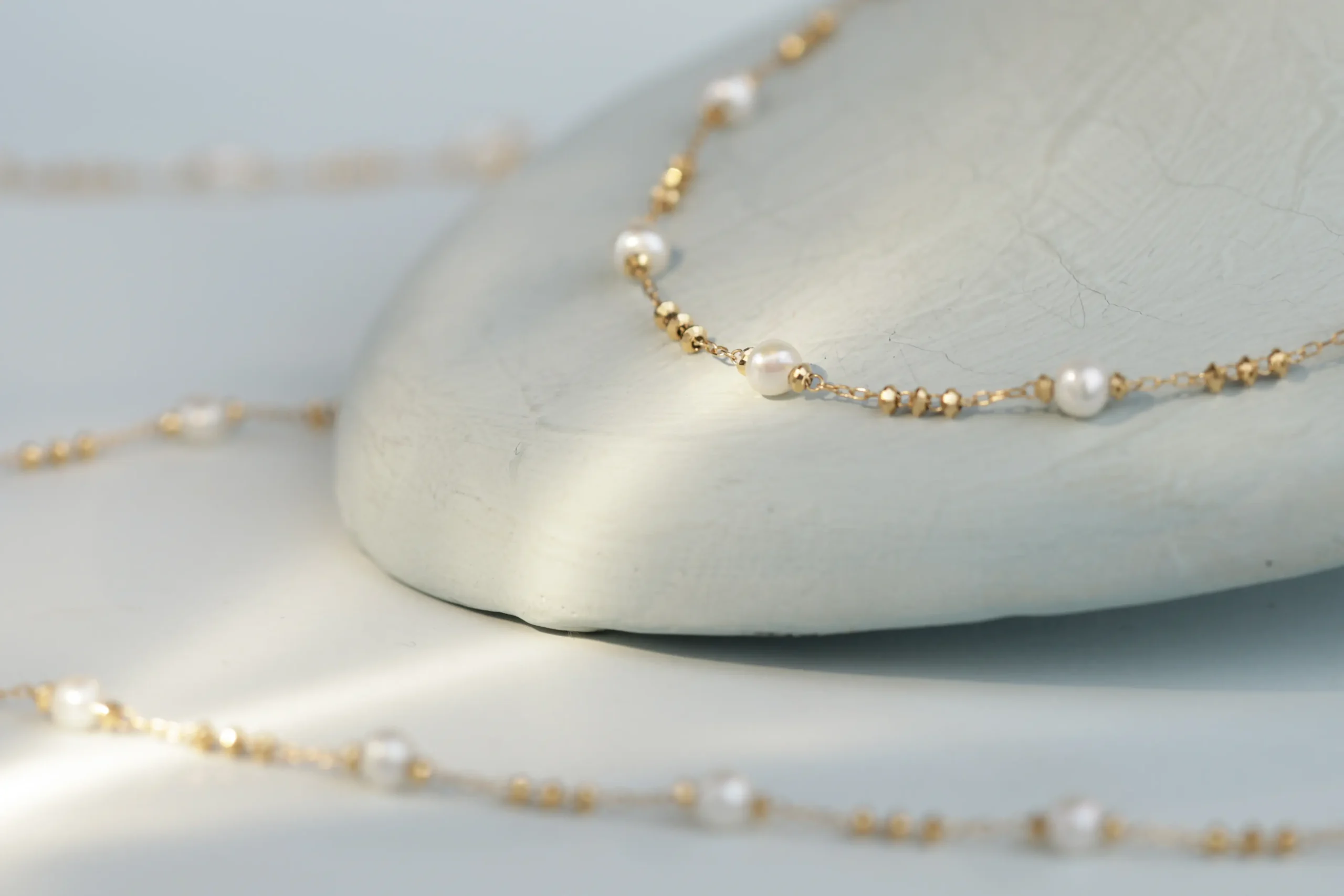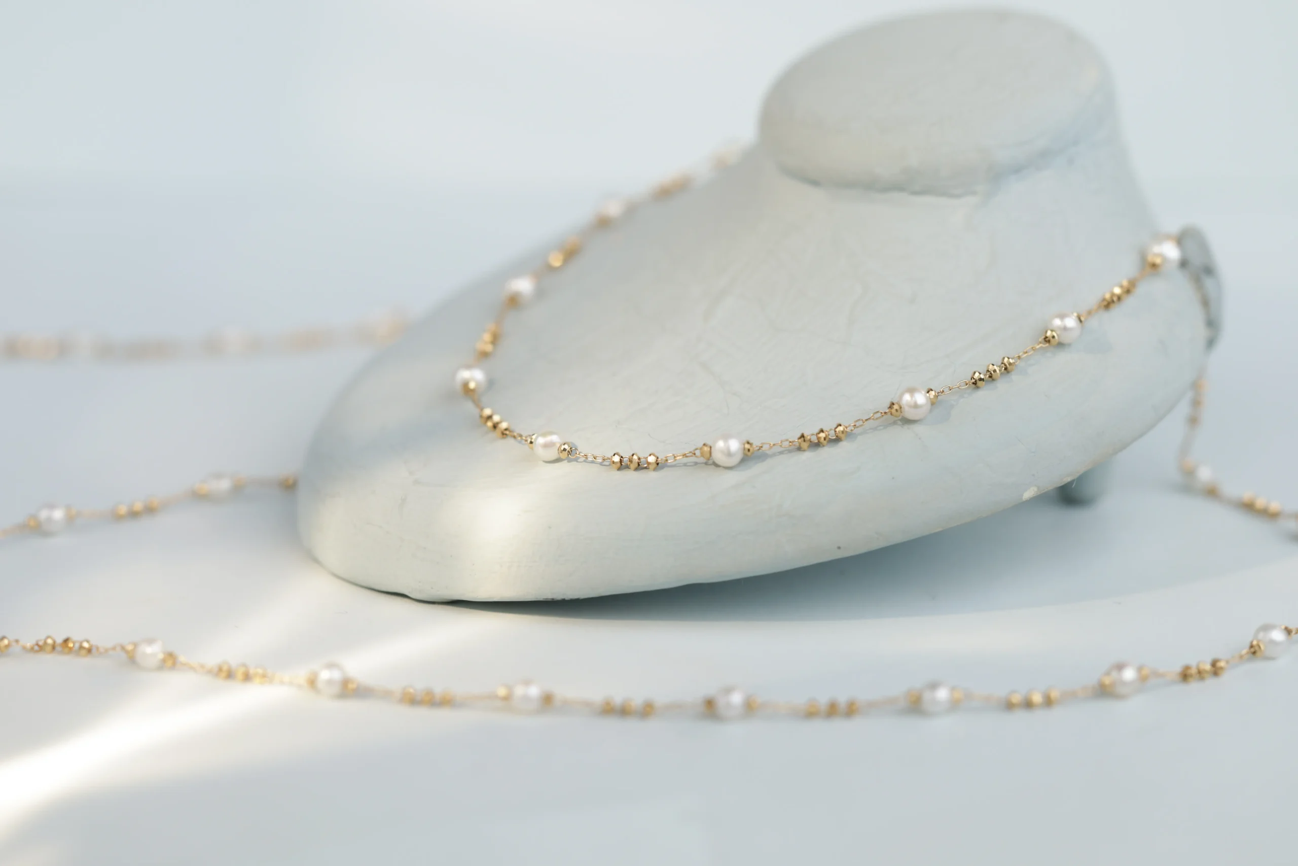 Намекнуть о подаркеКолье из золота с жемчугом и алмазными гранями.