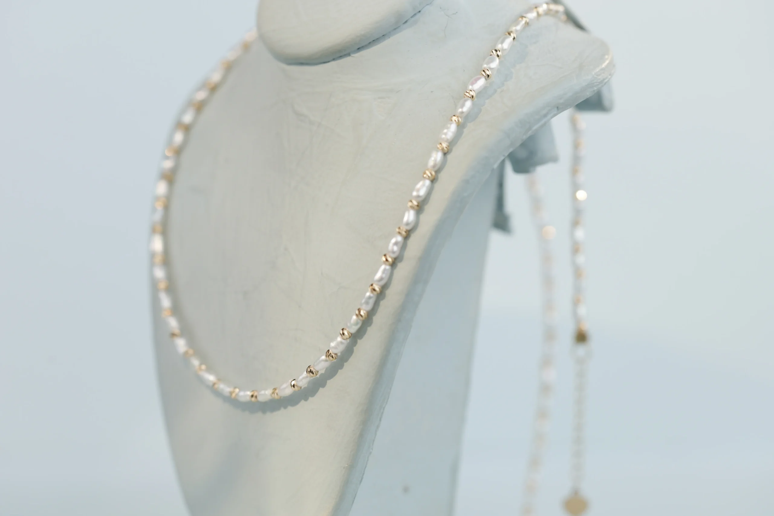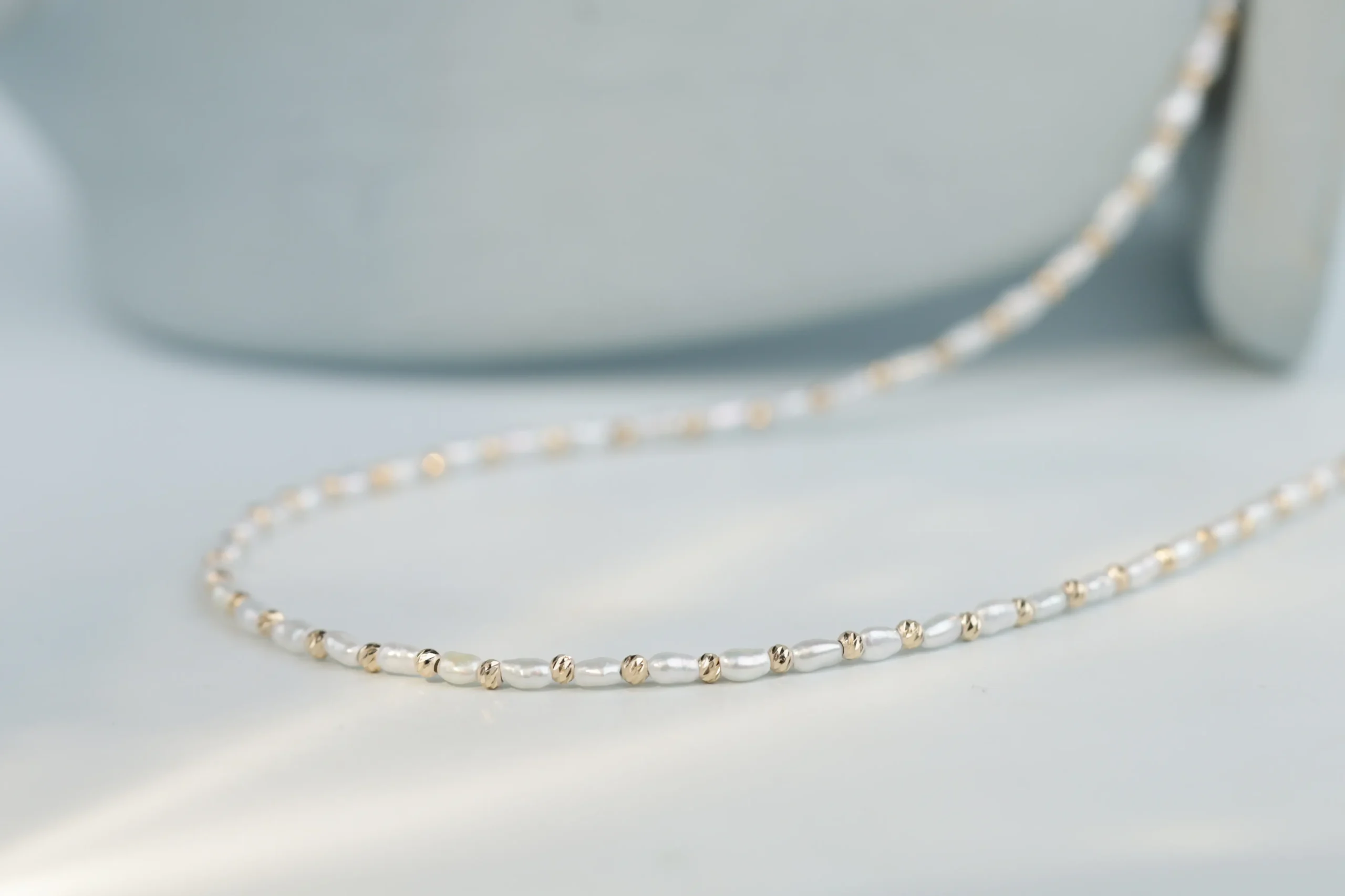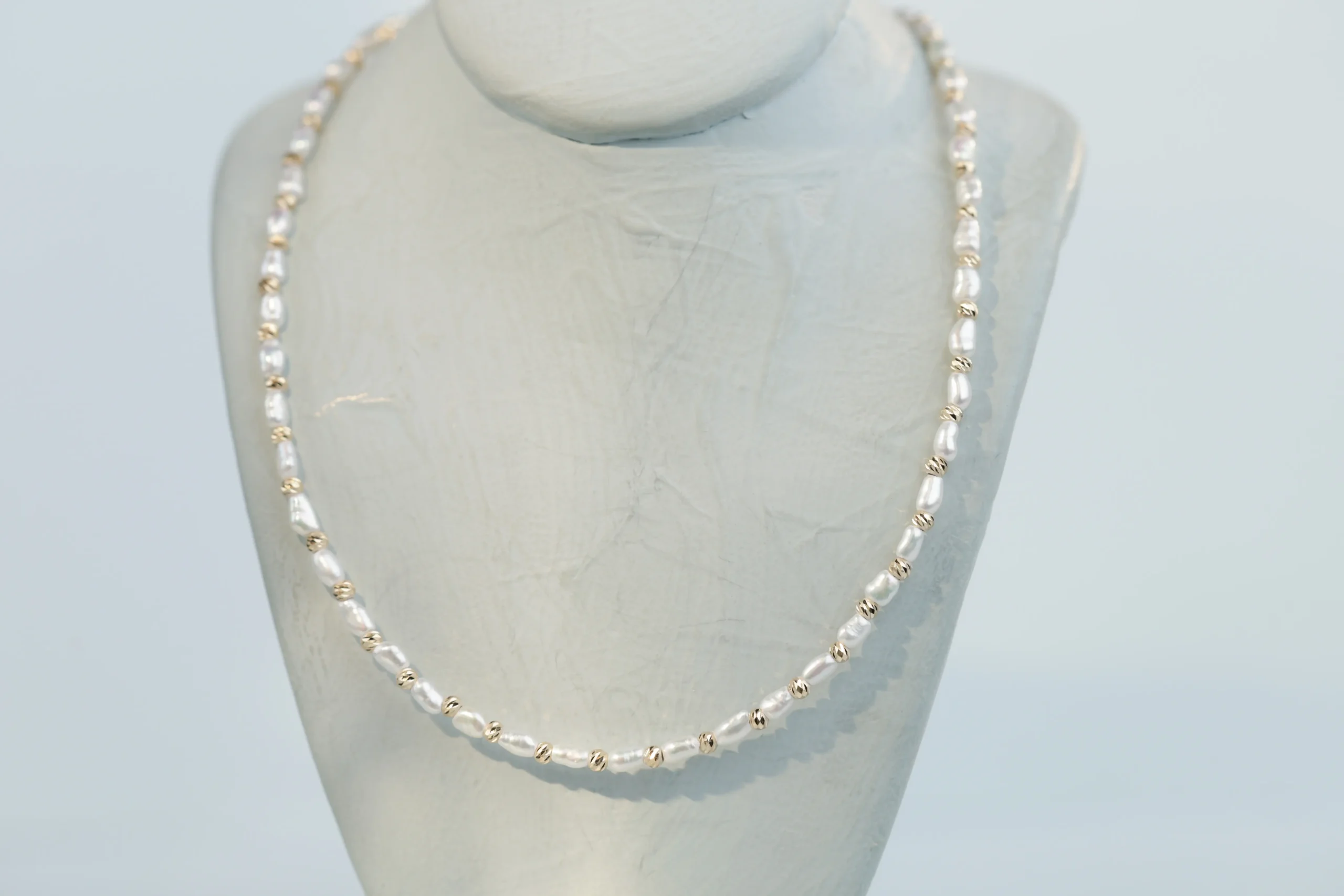 Колье с жемчугом и бусинами из золота с алмазными гранями.