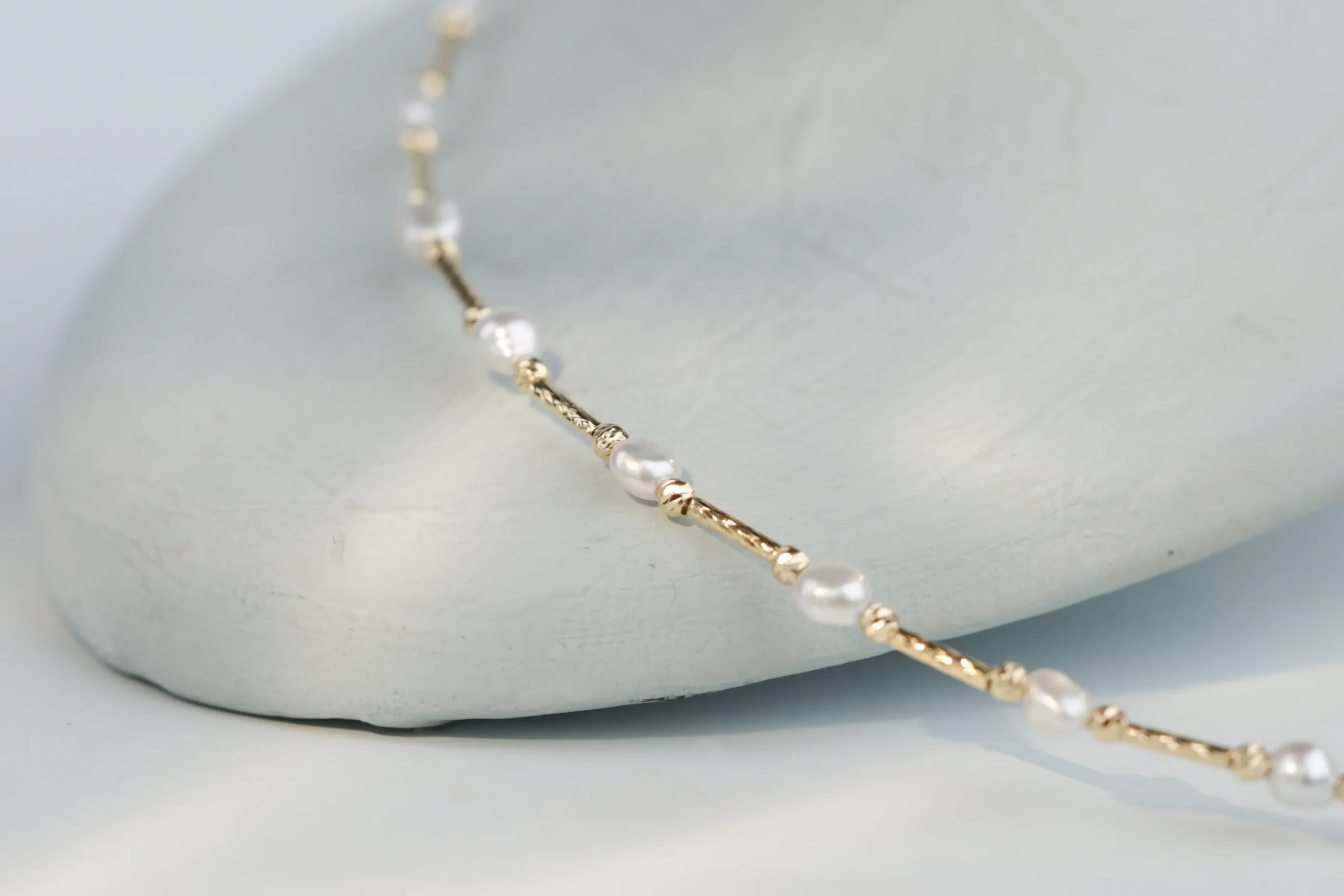 Колье с жемчугом и бусинами из золота с алмазными гранями.