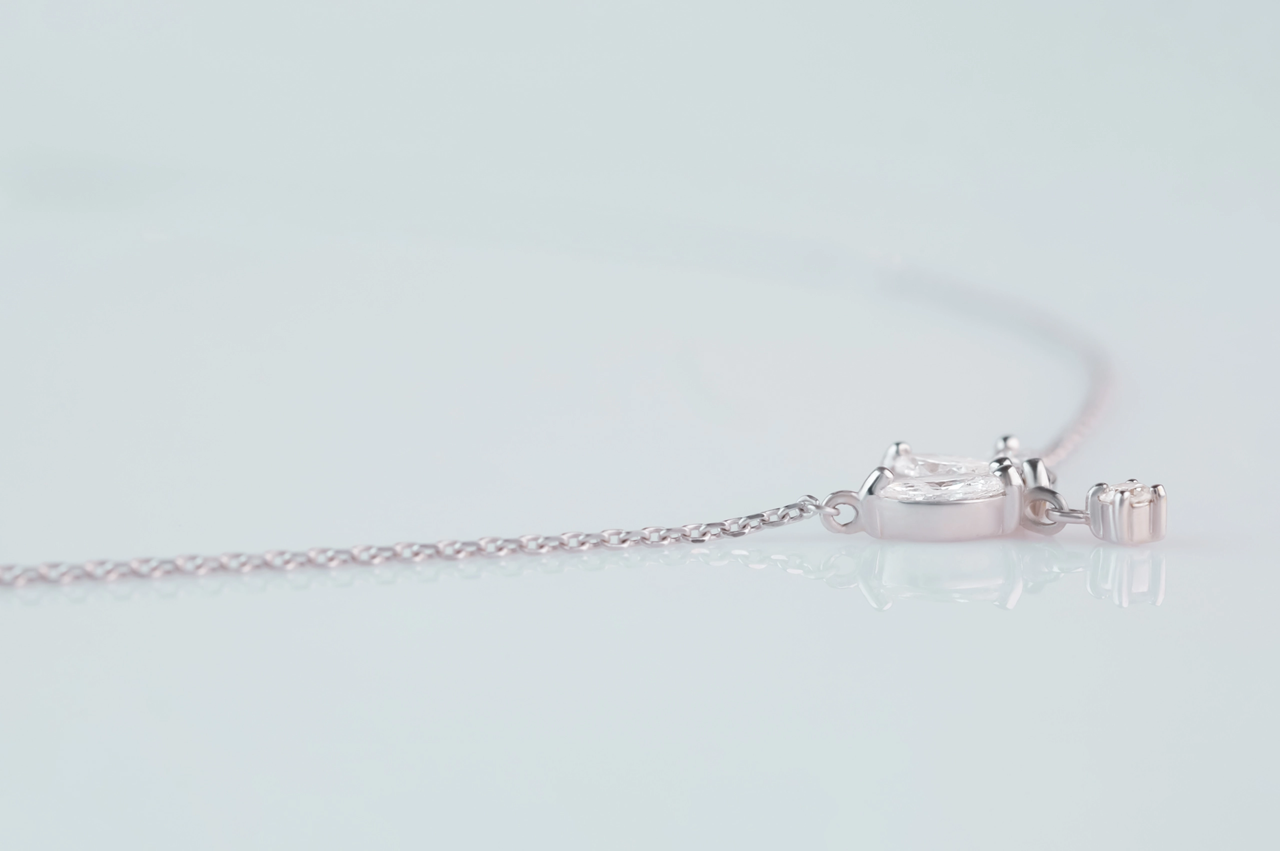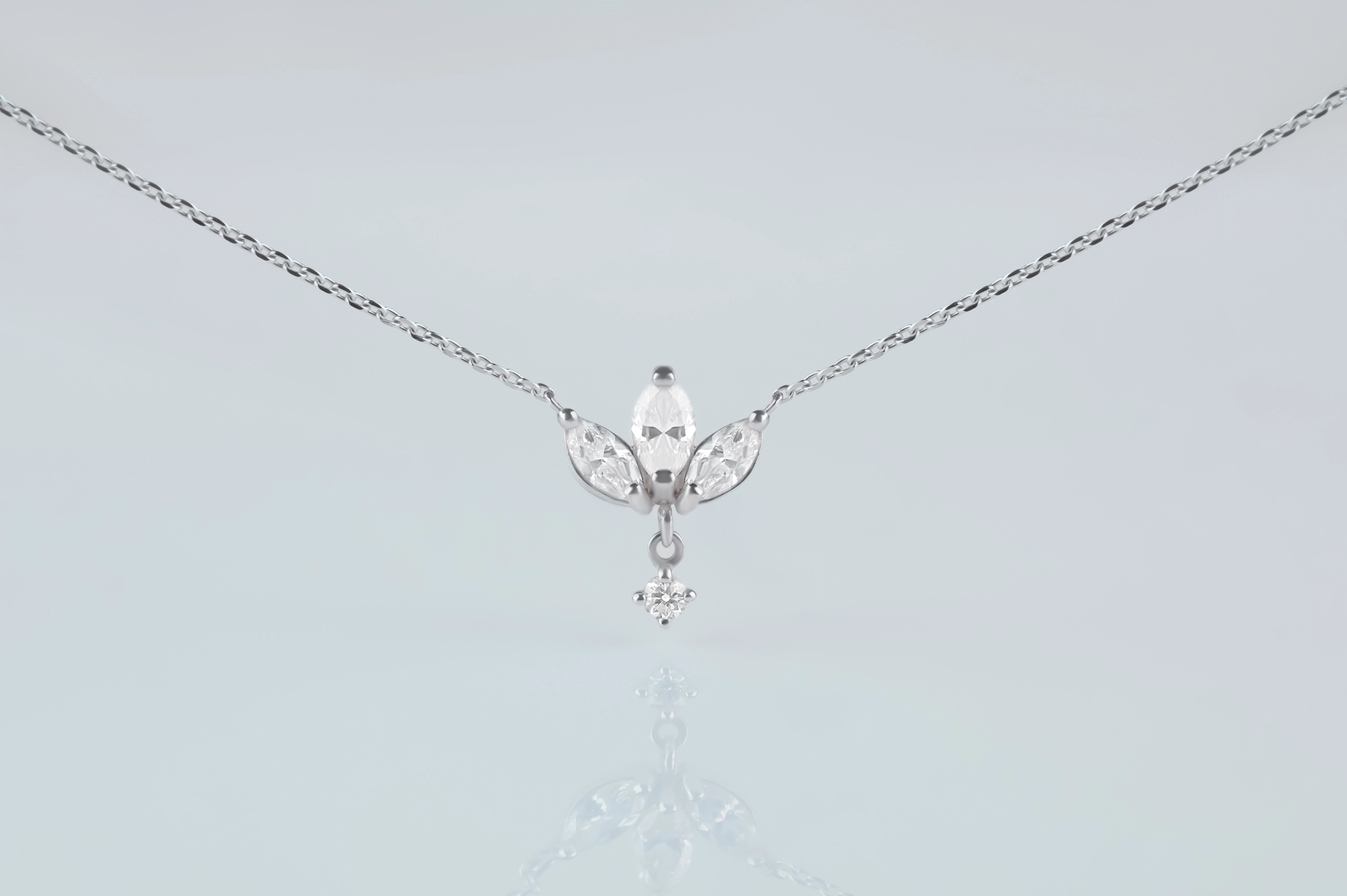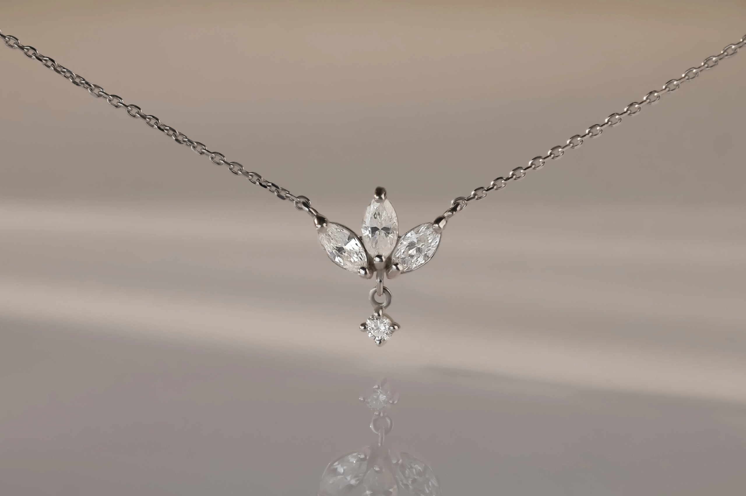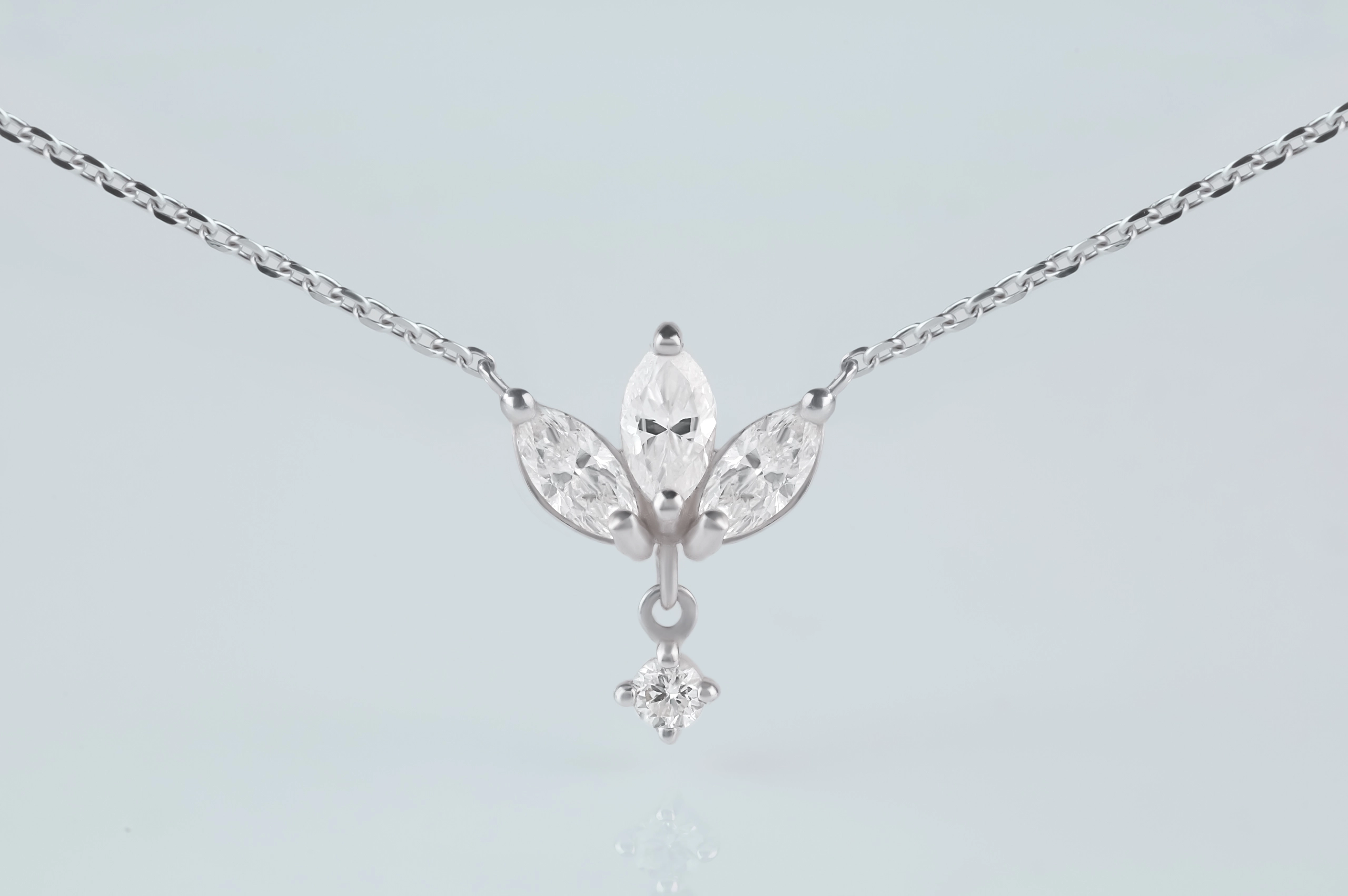 Колье из золота с 1 бриллиантом в огранке «круглая» весом 0,02 карат, цвет 4, чистота 5; 3 бриллиантами в огранке «маркиз» весом 0,27 карат, цвет 4, чистота 5.