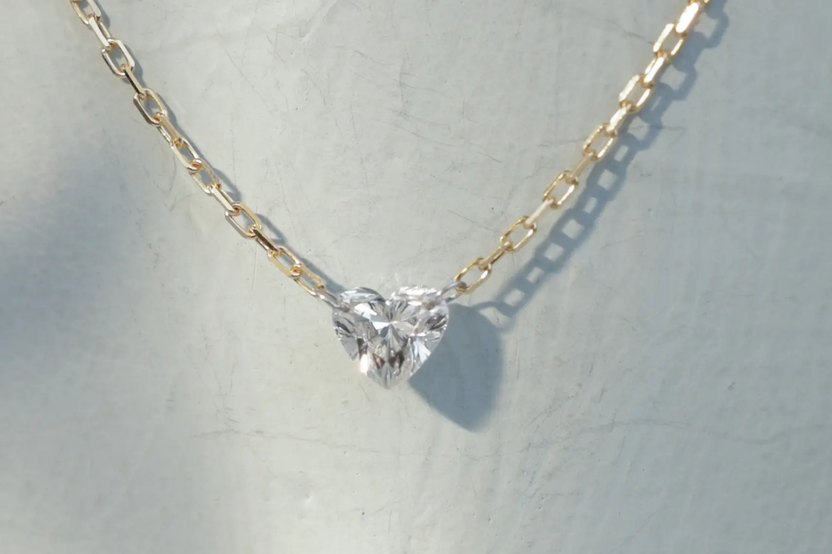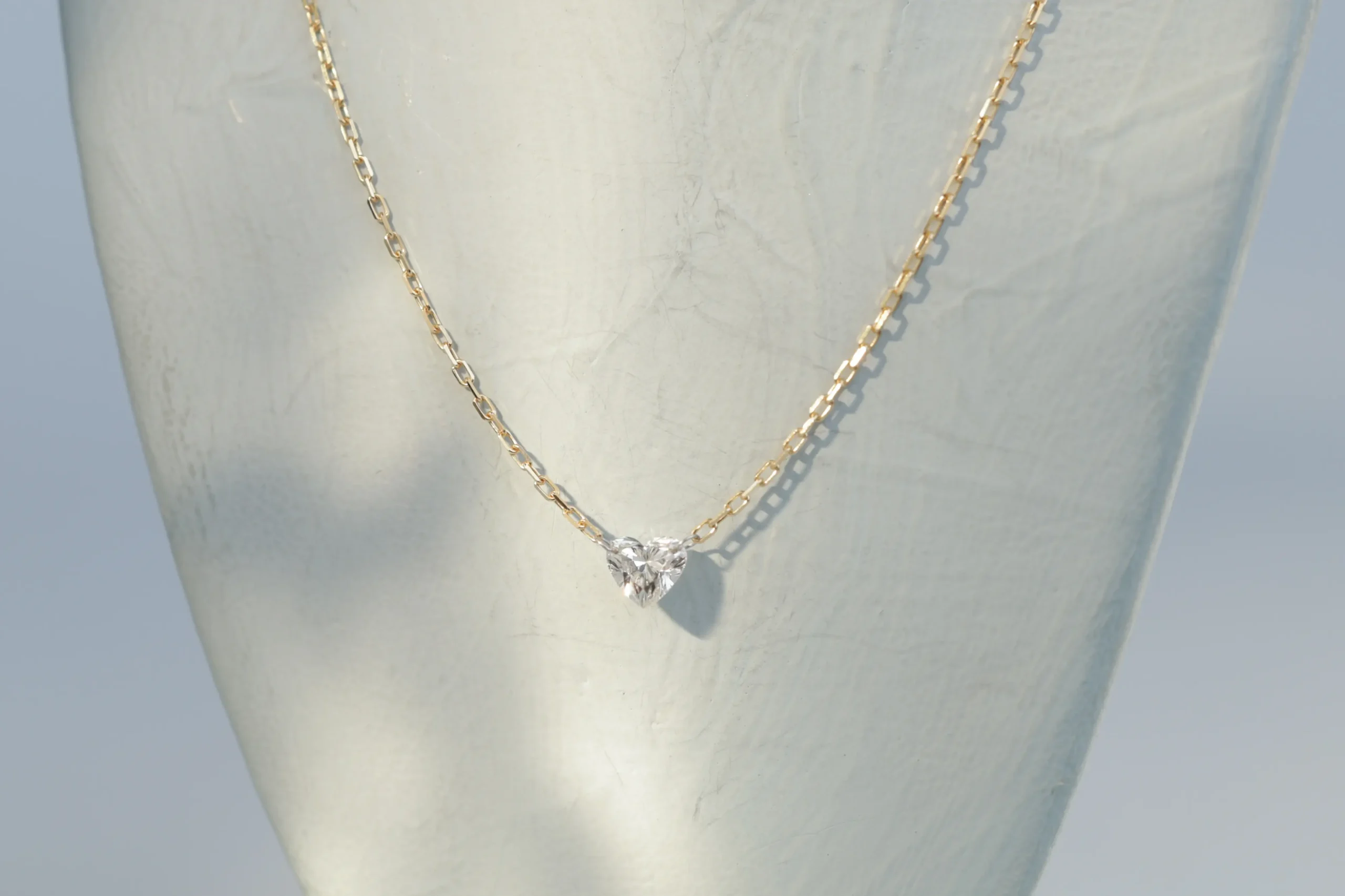 Колье из золота с 1 бриллиантом в огранке «сердце» весом 0,30 карат, цвет 3, чистота 5.