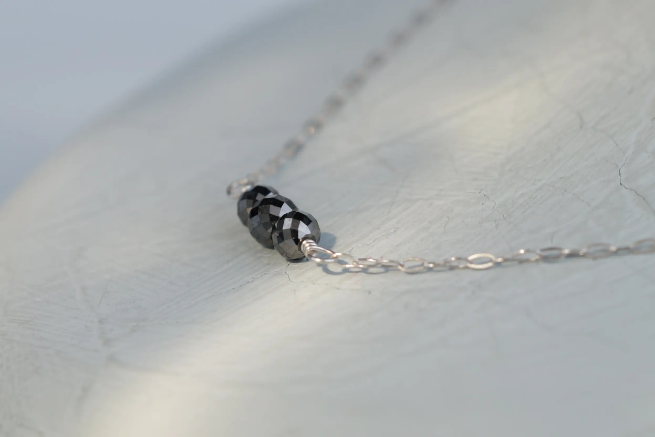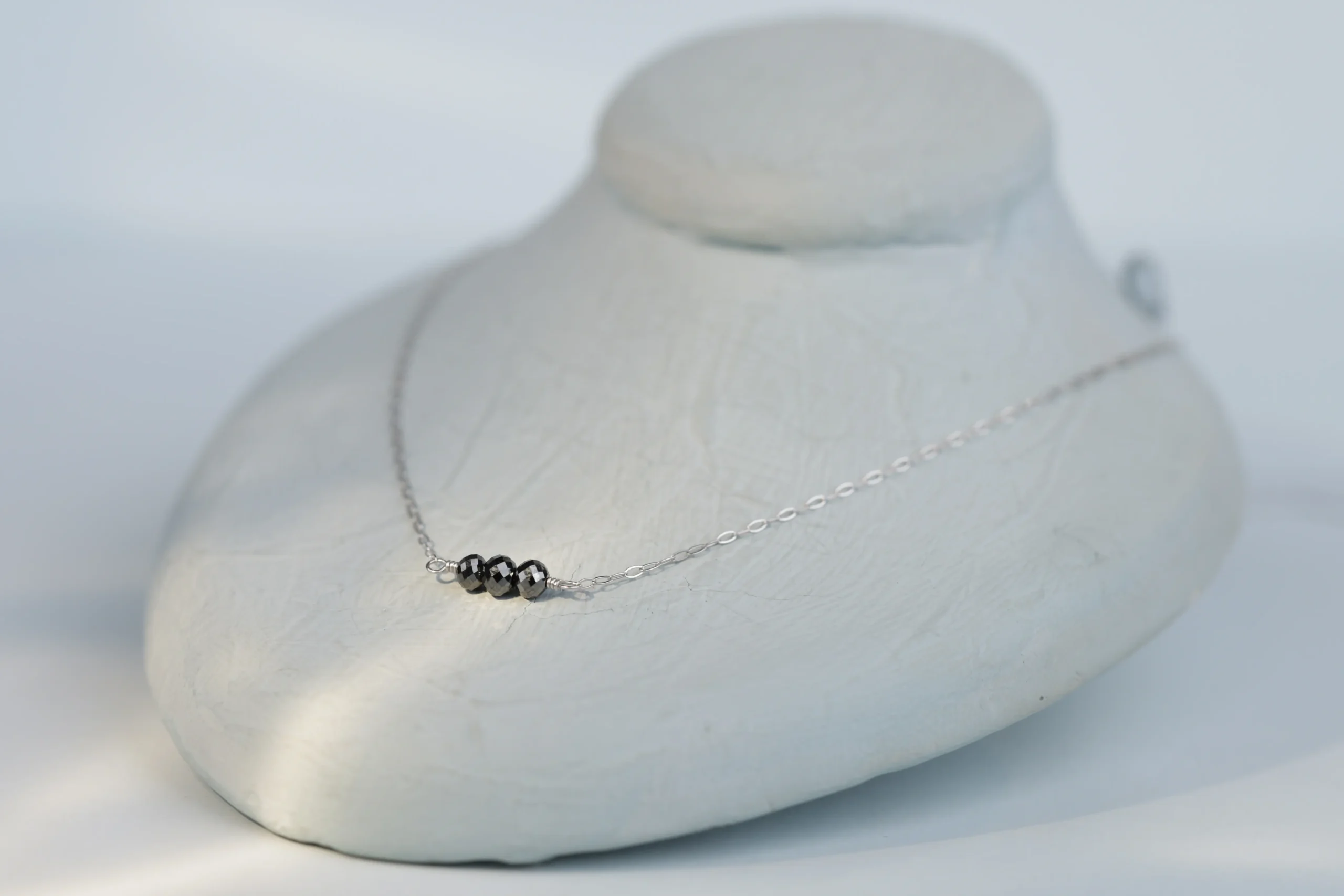 Колье из золота с 3 черными бриллиантами в огранке «круглая» весом 0,50 карат, цвет 8, чистота 9.