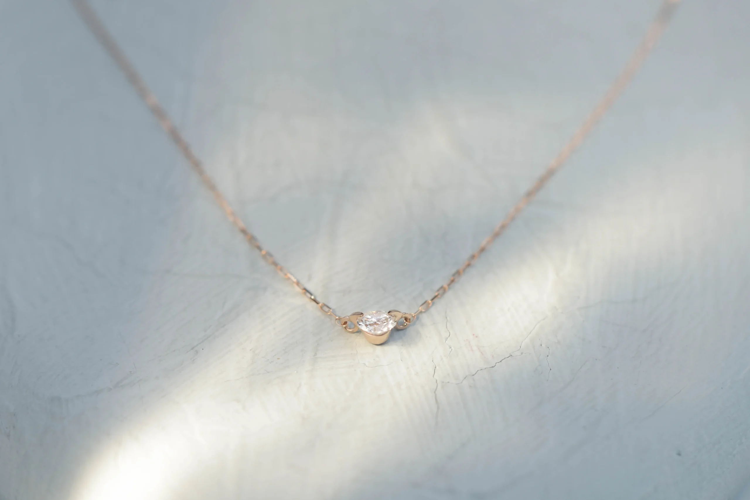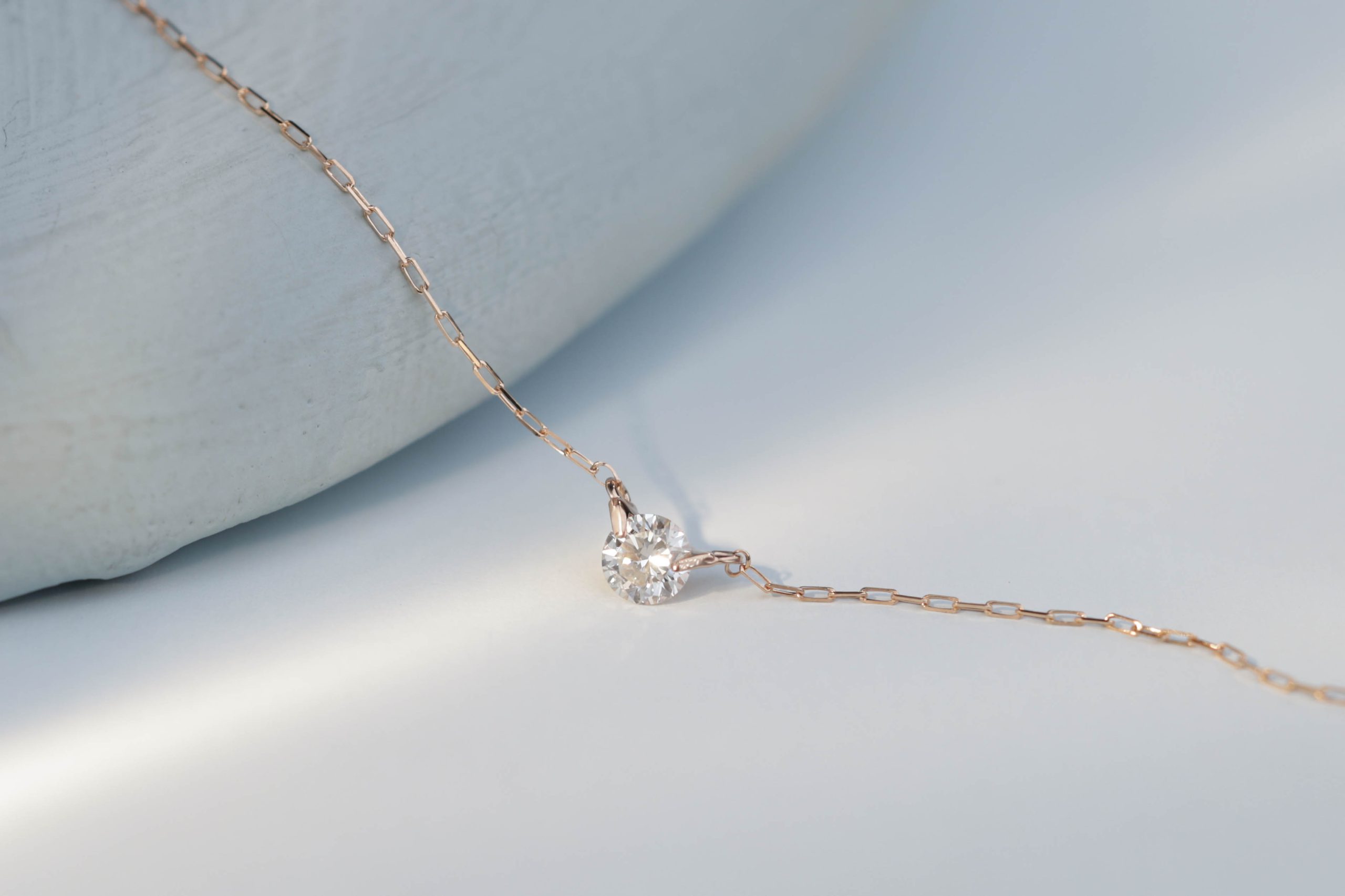 Колье из золота с 1 бриллиантом в огранке «круглая» весом 0,10 карат, цвет 3, чистота 5.