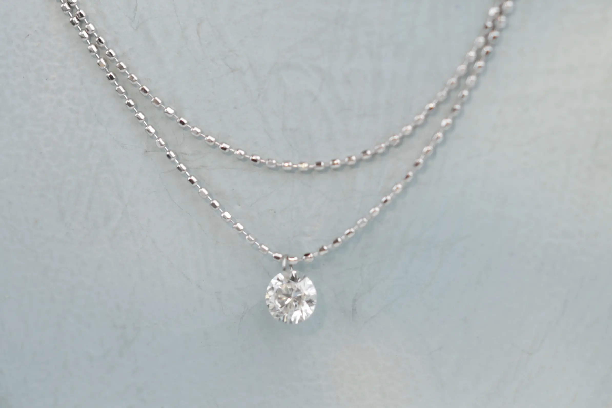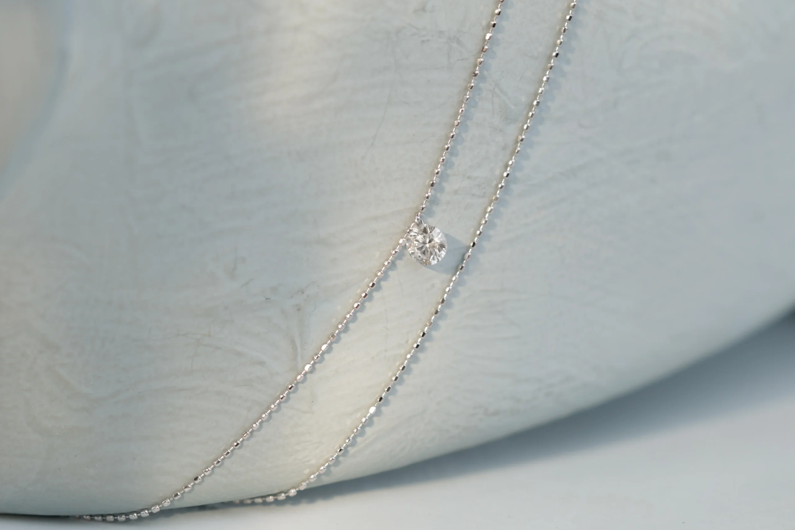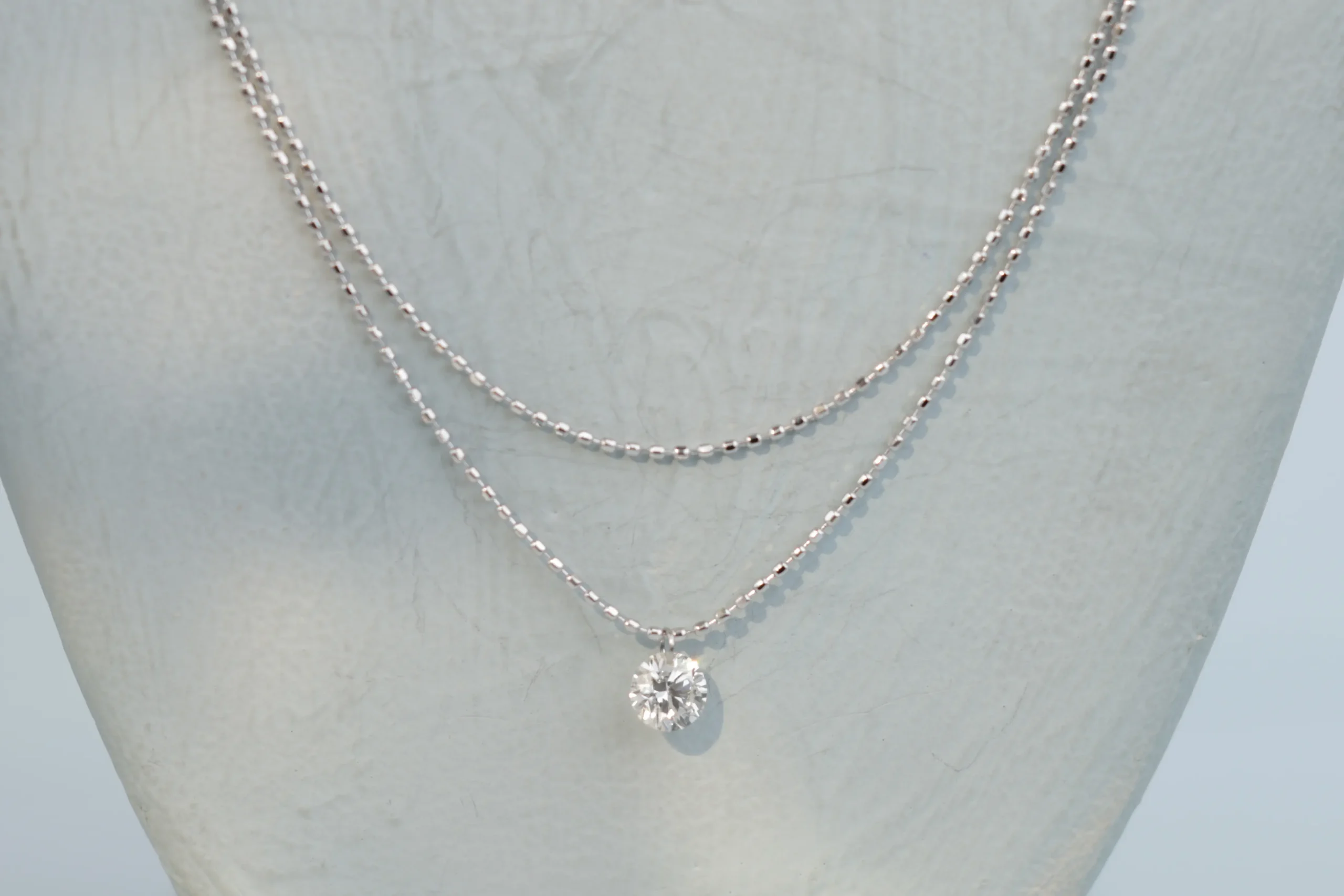 Двойное колье из золота с 1 бриллиантом в огранке «круглая» весом 0,13 карат, цвет 3, чистота 5.