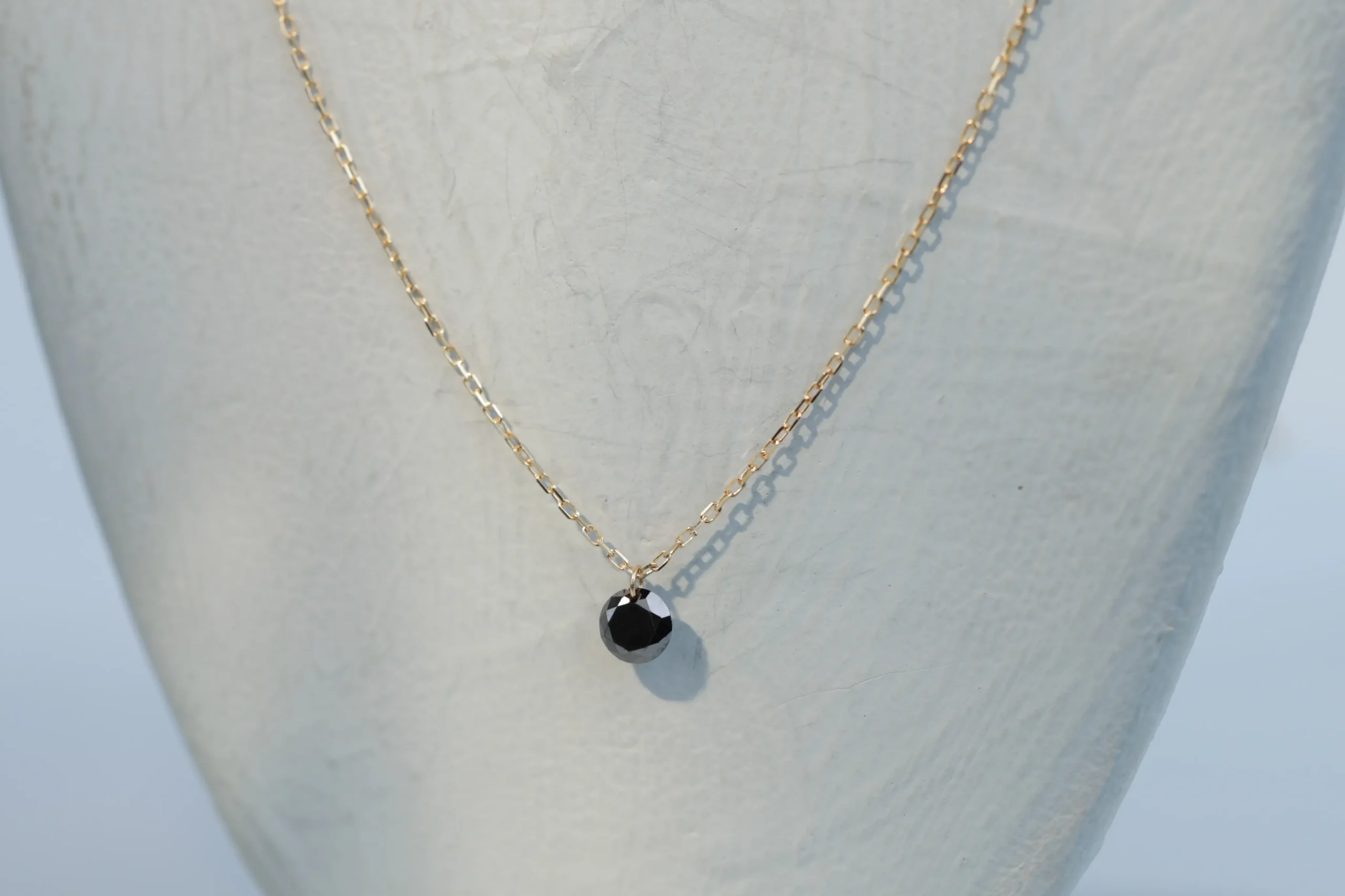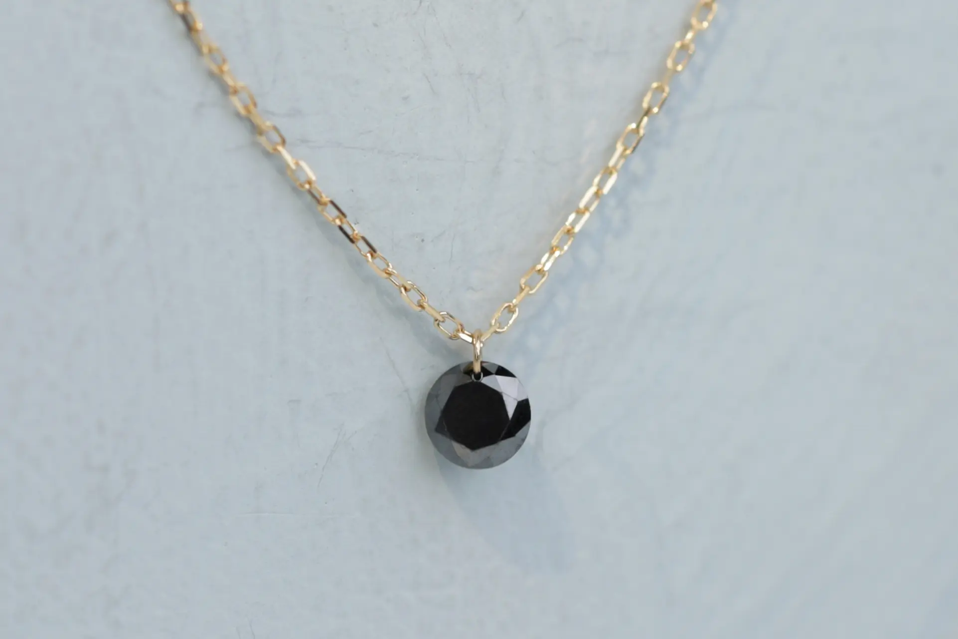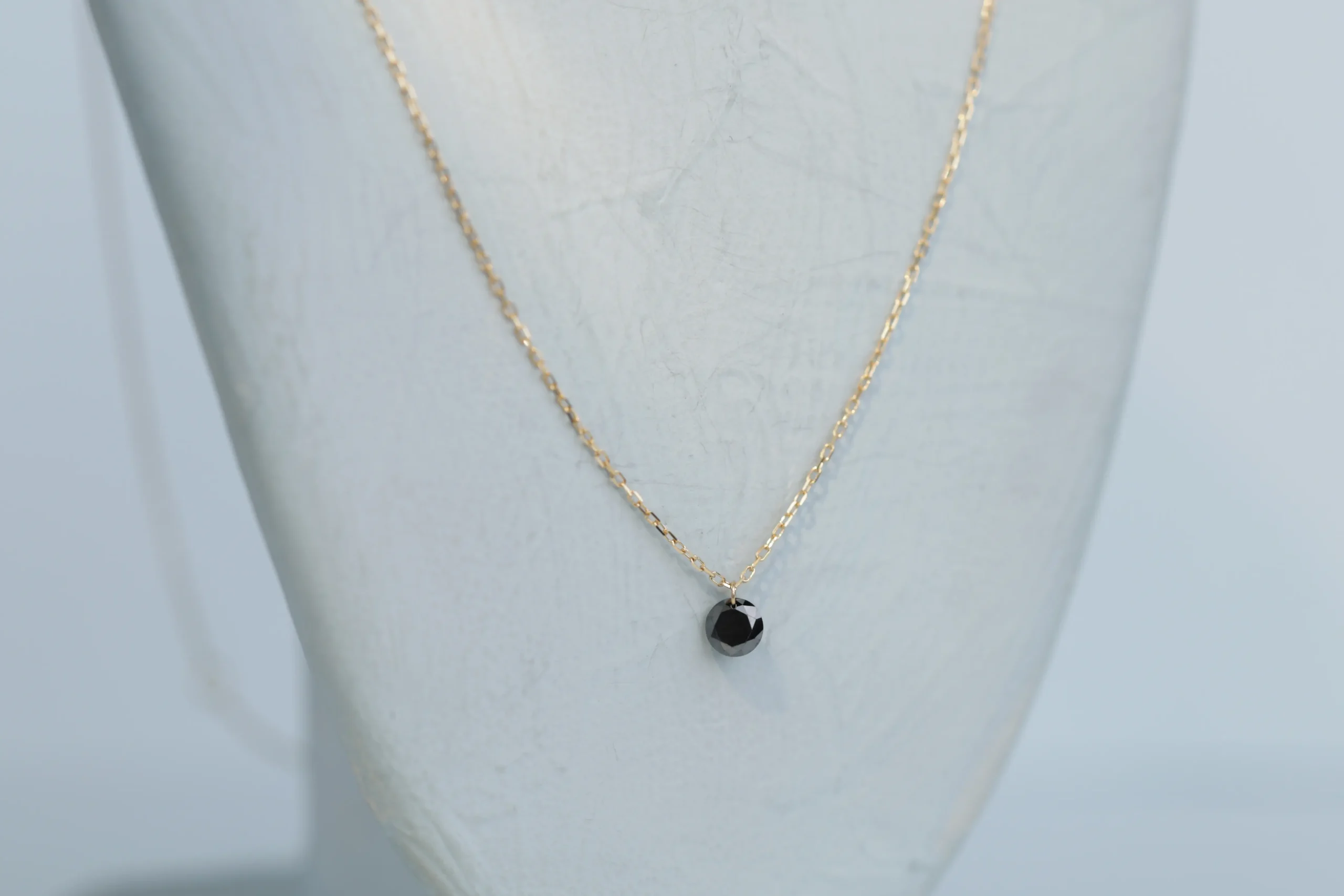 Колье из золота с 1 черным бриллиантом в огранке «круглая» весом 0,12 карат, цвет 8, чистота 9.