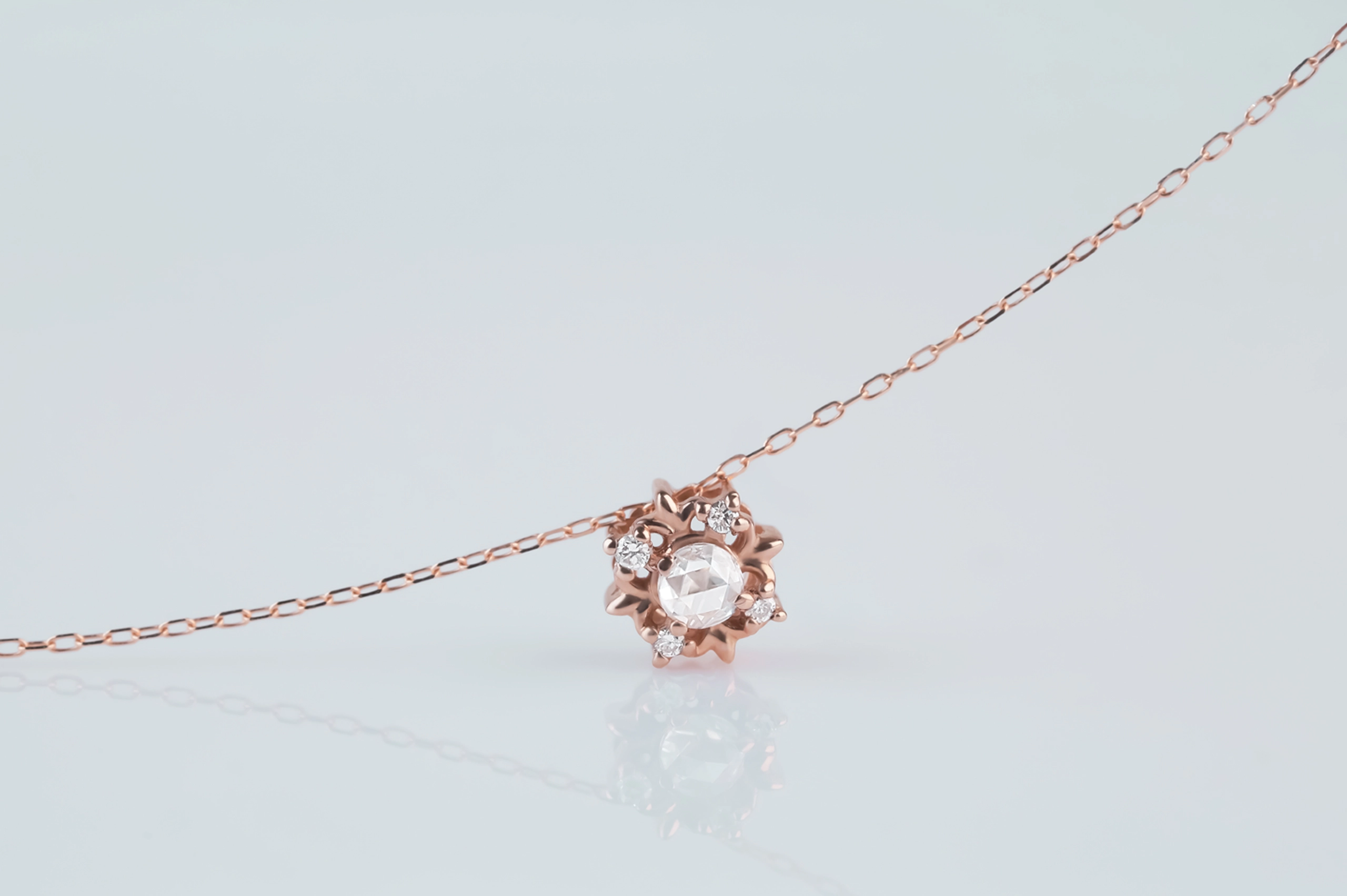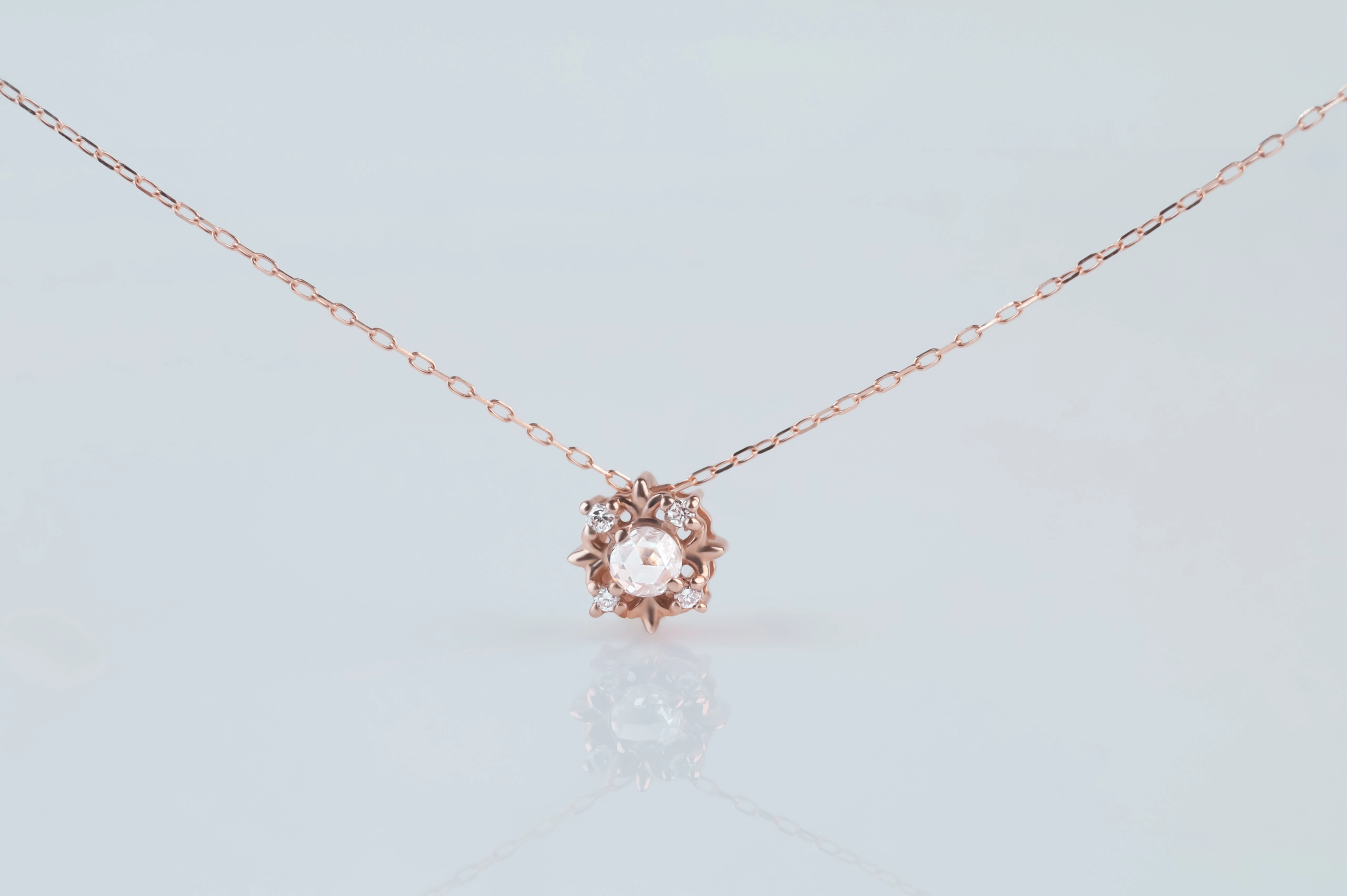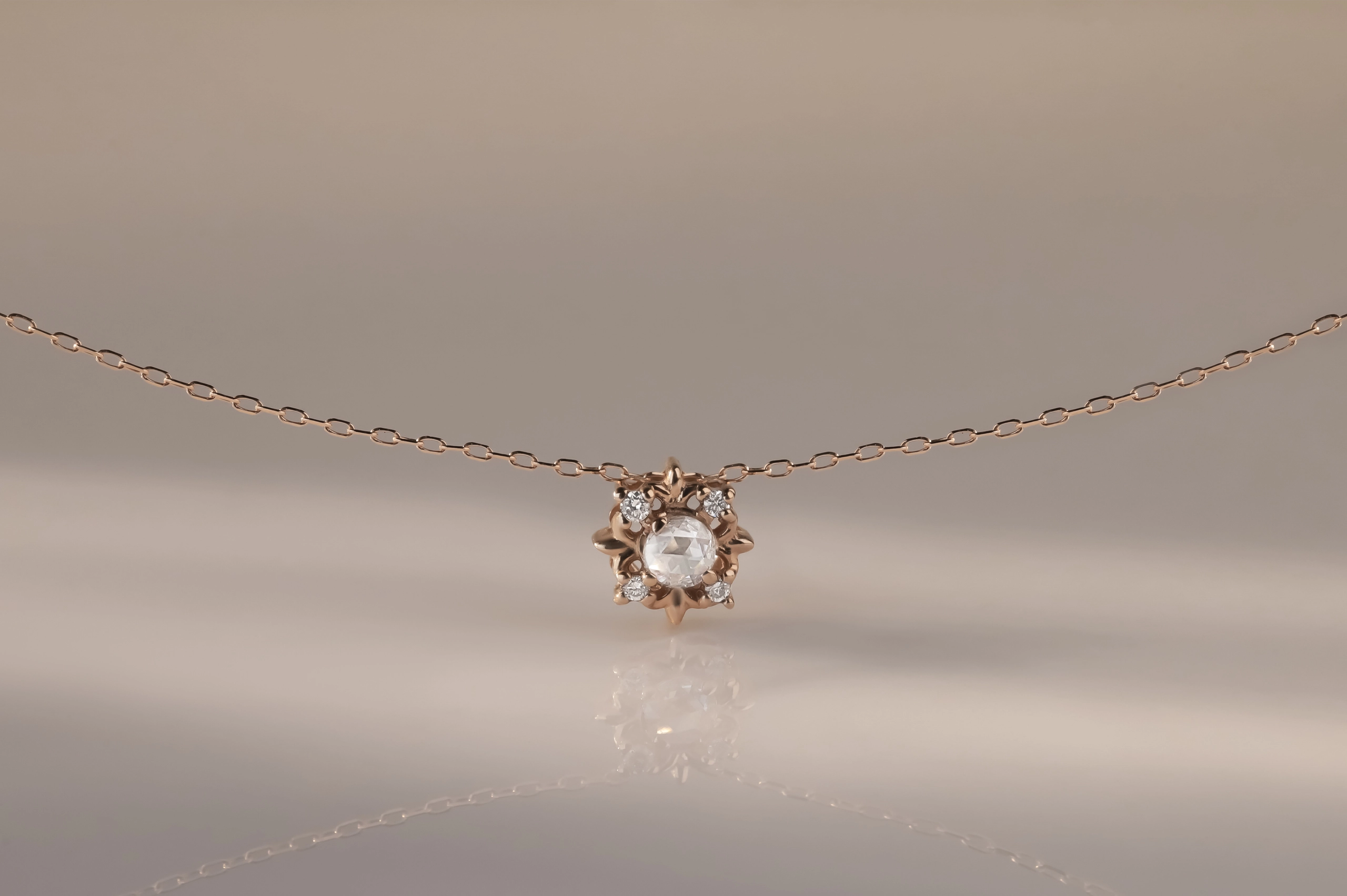 Колье из золота с 5 бриллиантами в огранке «круглая» весом 0,07 карат, цвет 5, чистота 6.