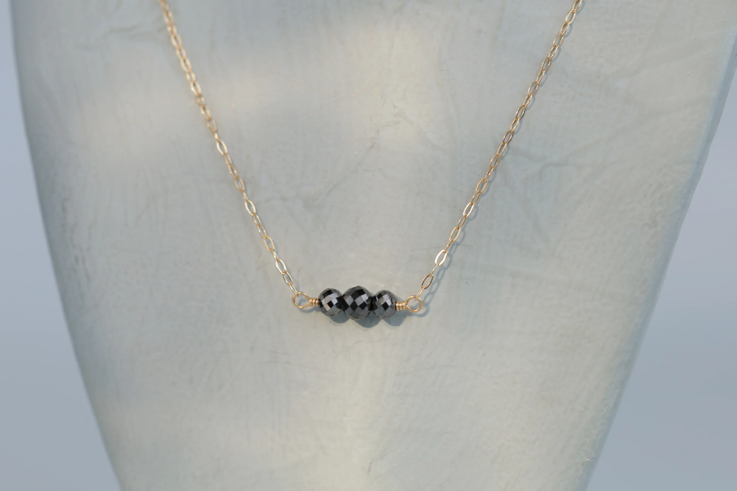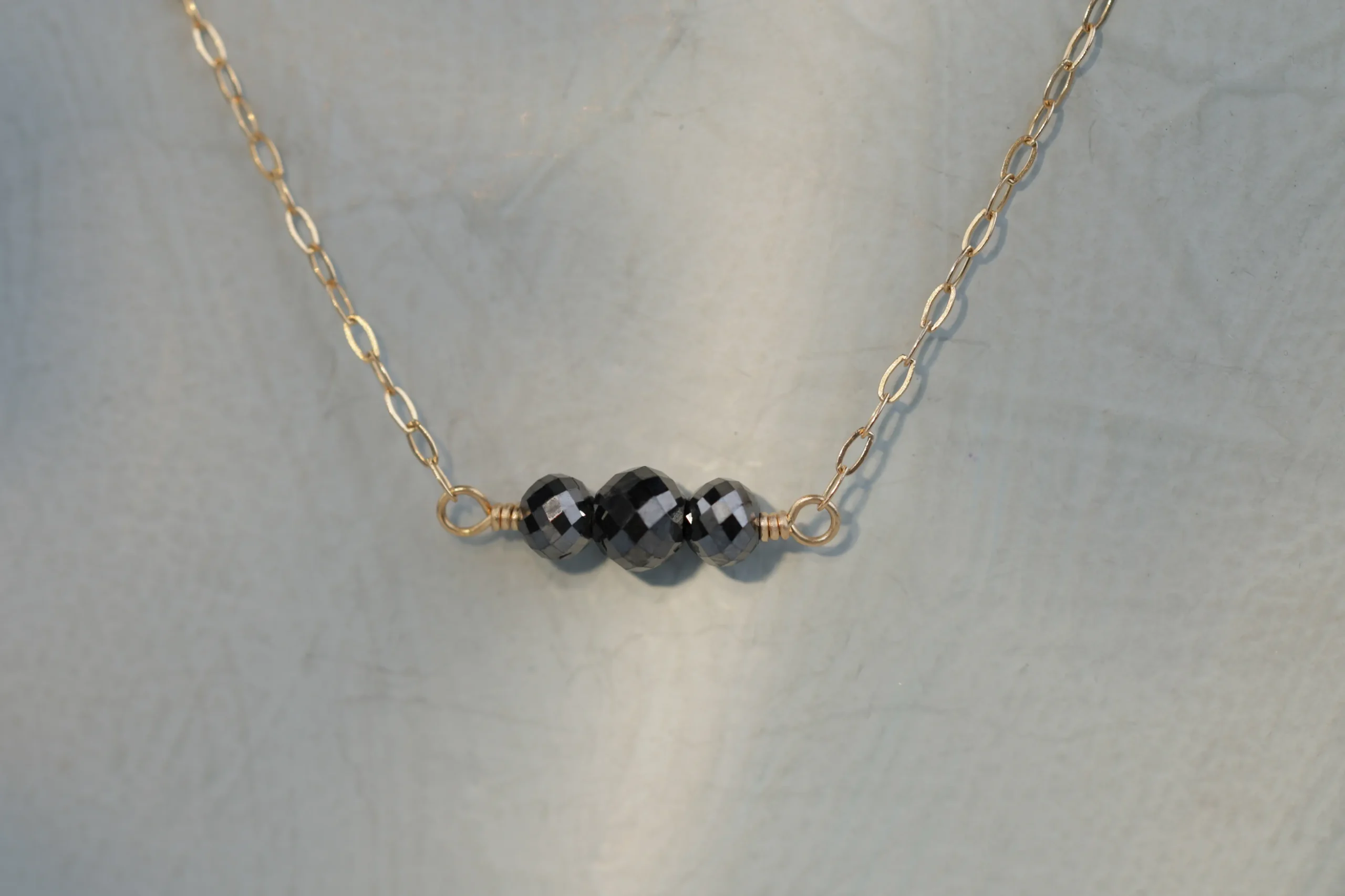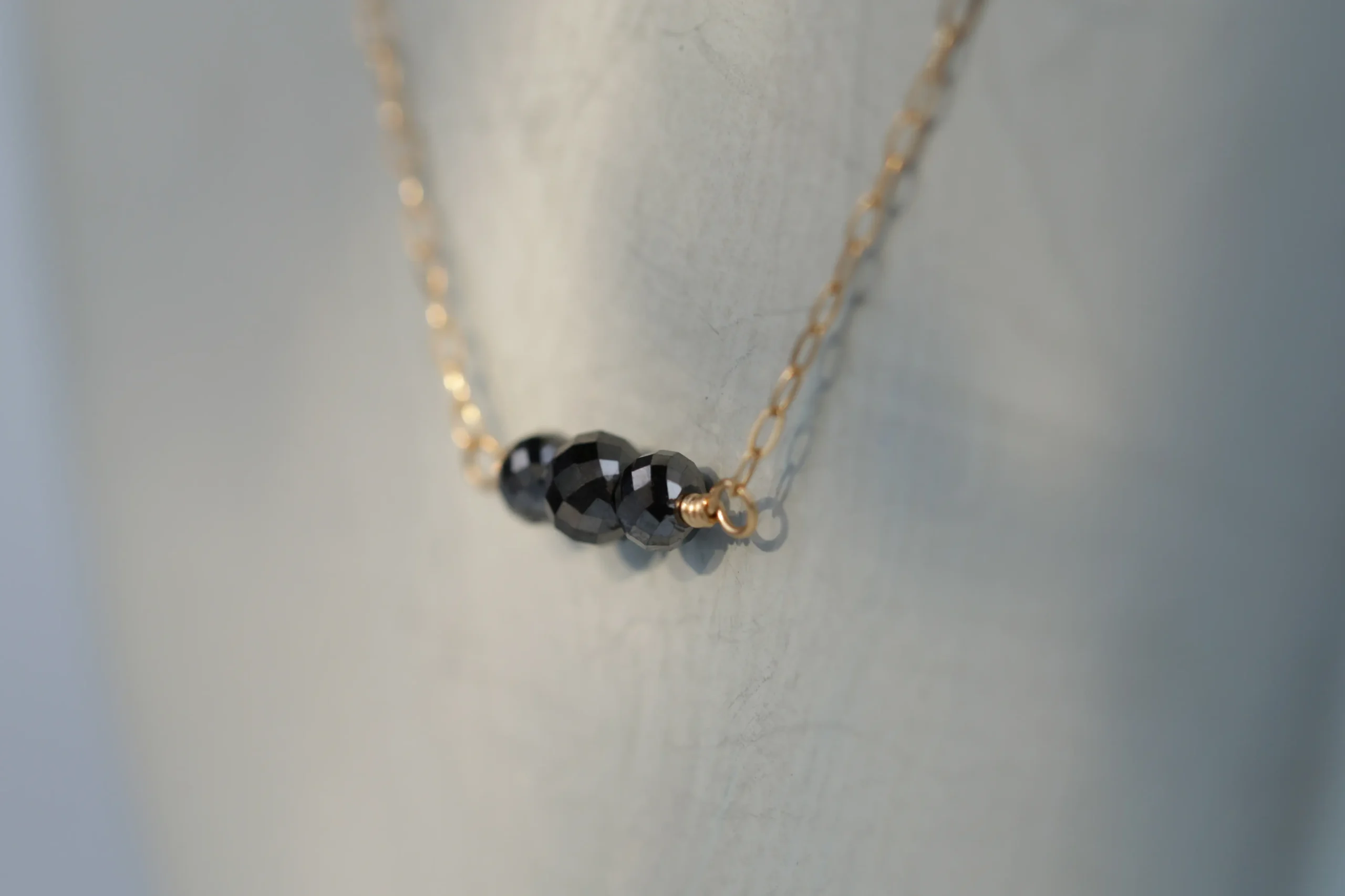Колье из золота с 3 черными бриллиантами в огранке «круглая» весом 0, 50 карат, цвет 8, чистота 9.