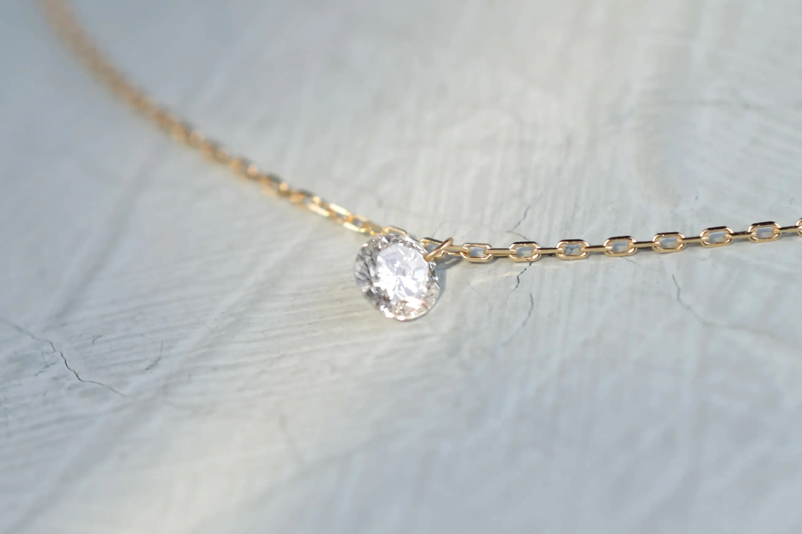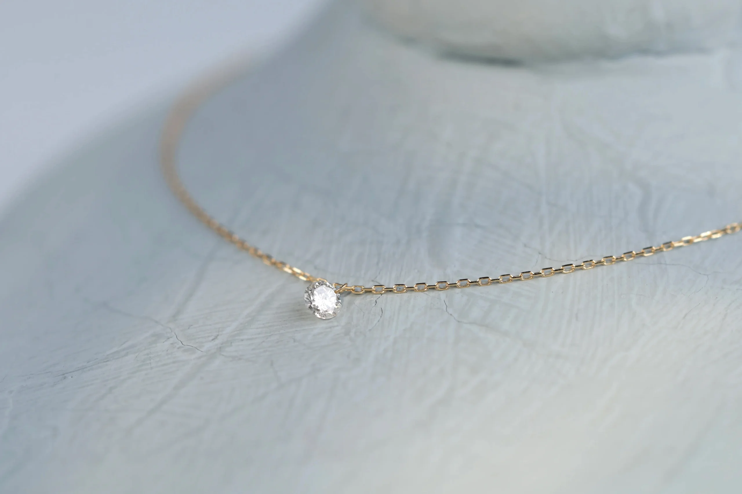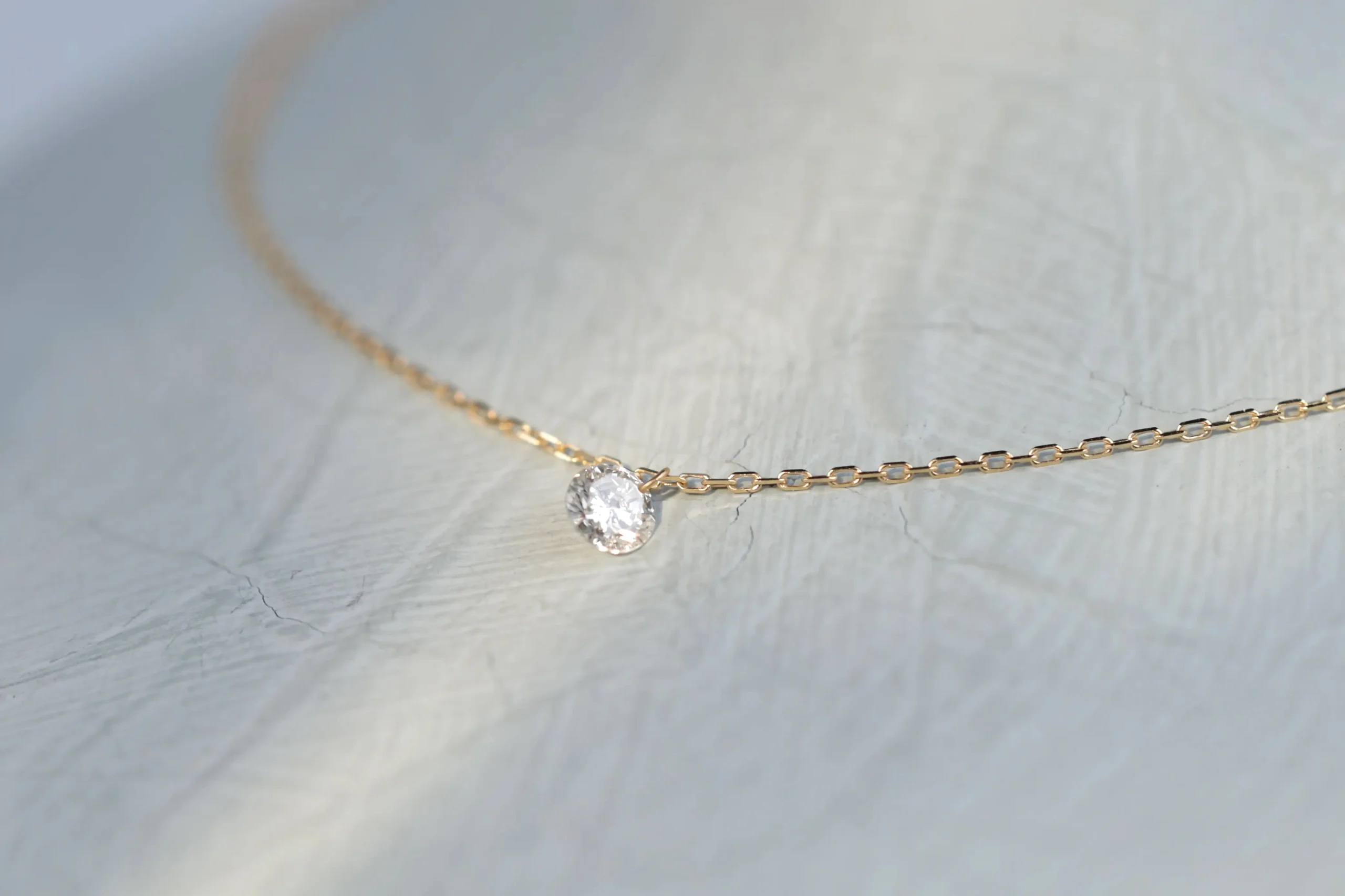 Колье из золота с 1 бриллиантом в огранке «круглая» весом 0,07 карат, цвет 3, чистота 5.