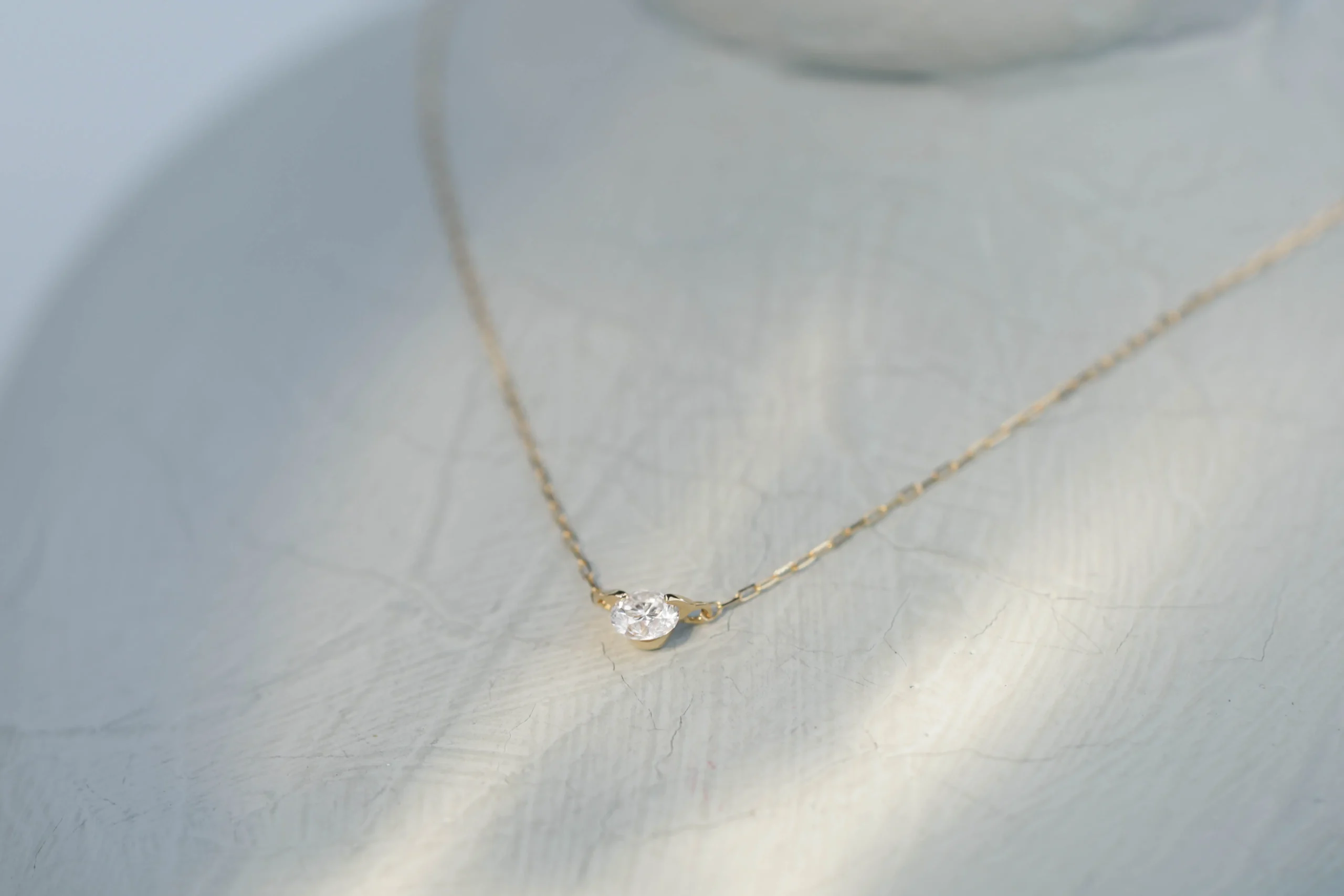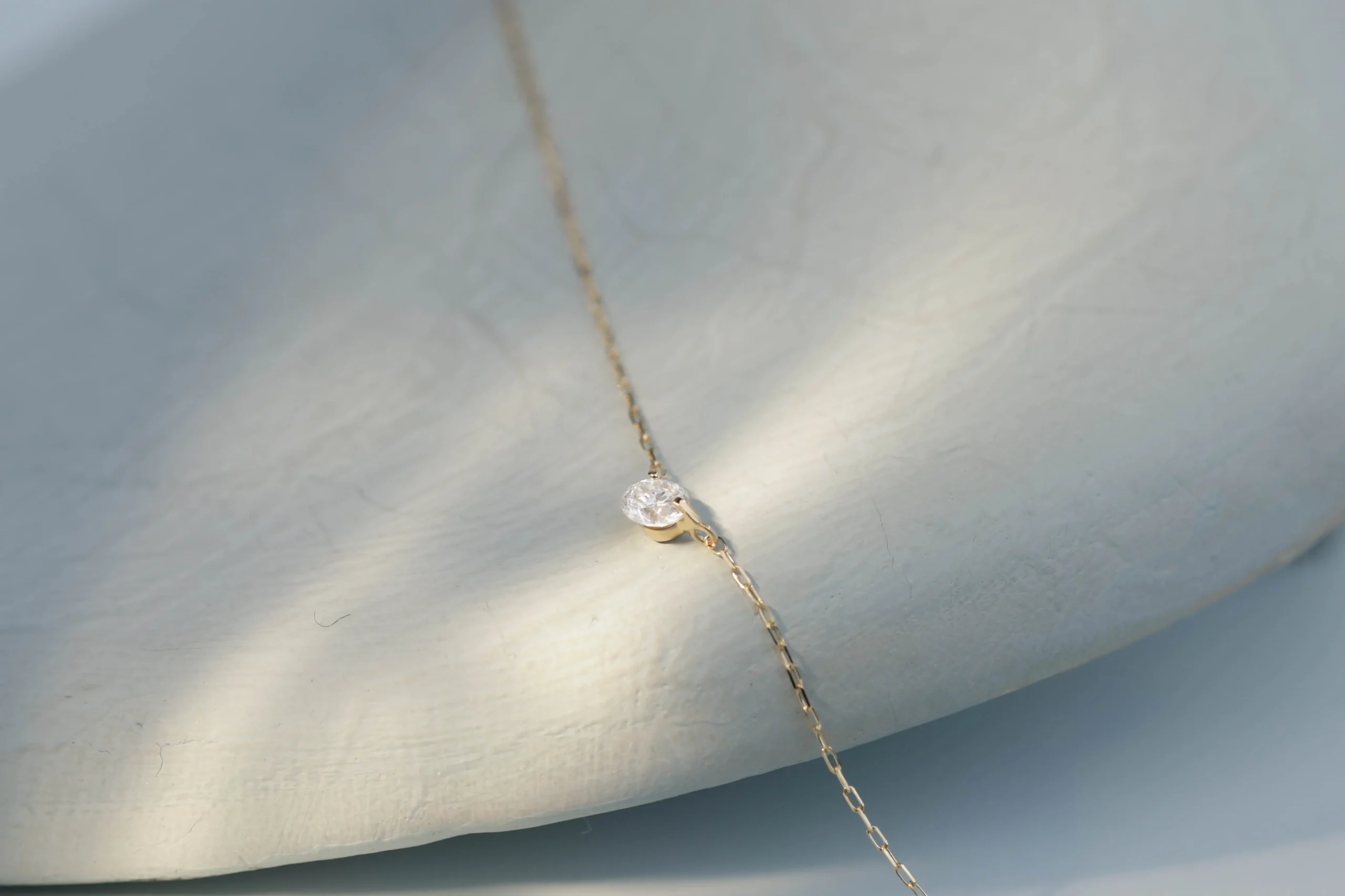 Колье из золота с 1 бриллиантом в огранке «круглая» весом 0,10 карат, цвет 3, чистота 5.