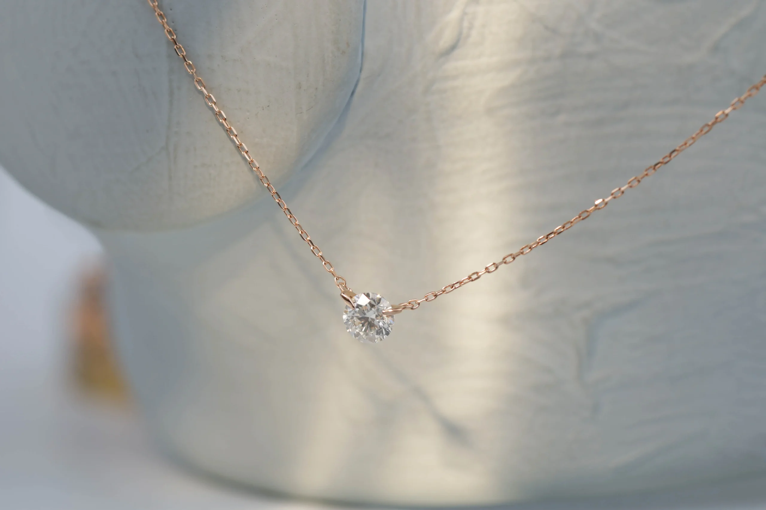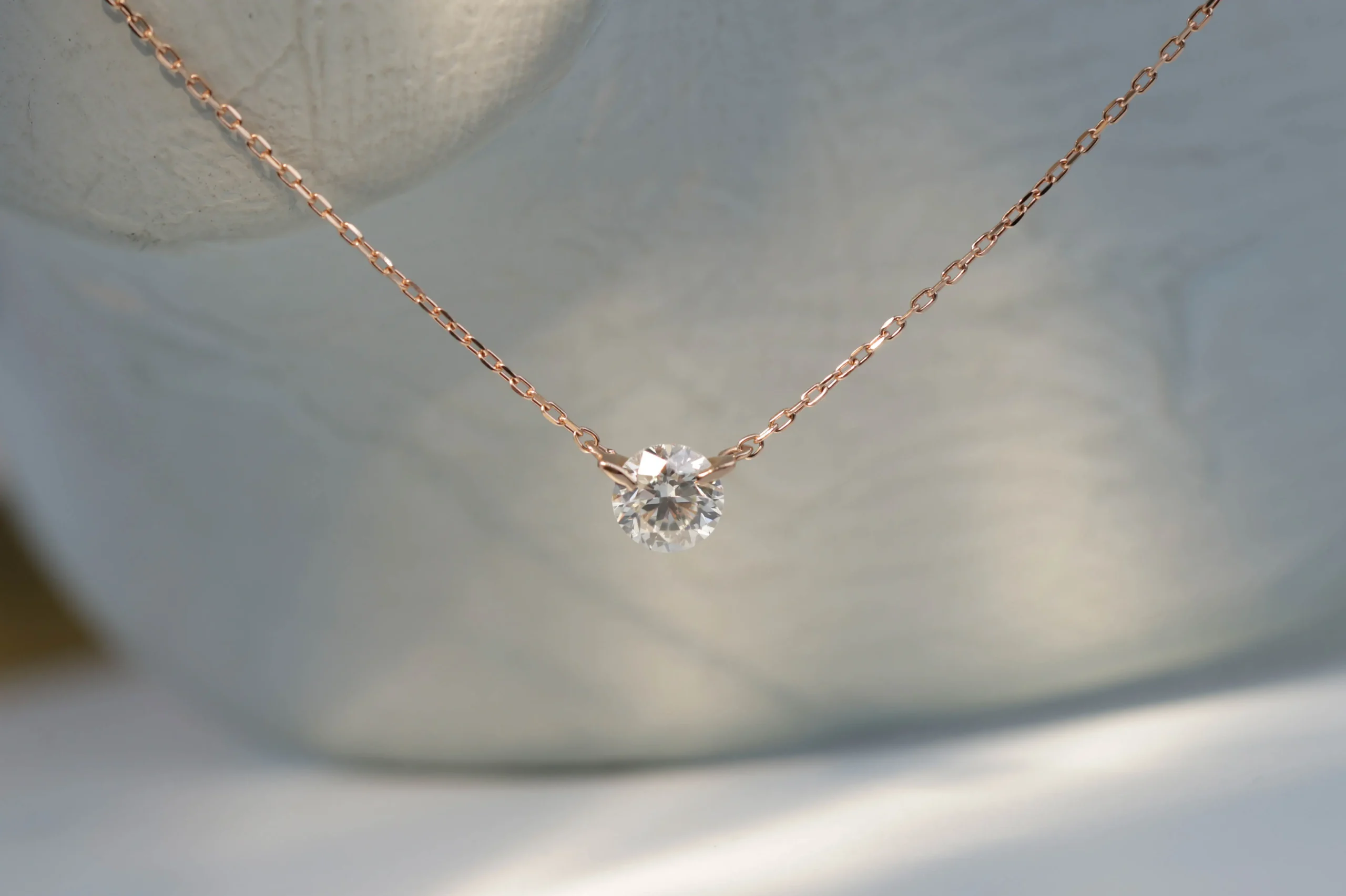 Колье из золота с 1 бриллиантом в огранке «круглая» весом 0,30 карат, цвет 3, чистота 5.