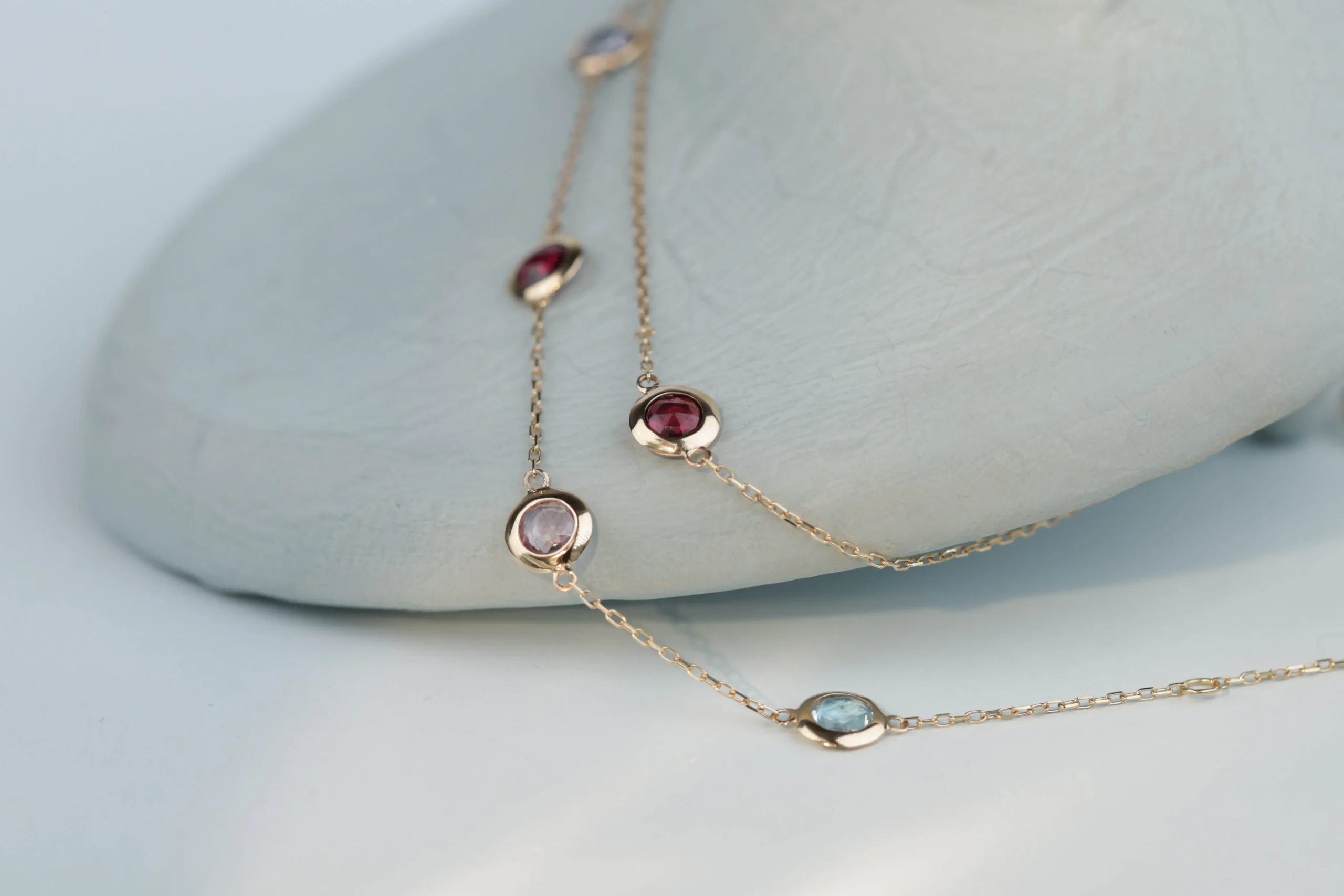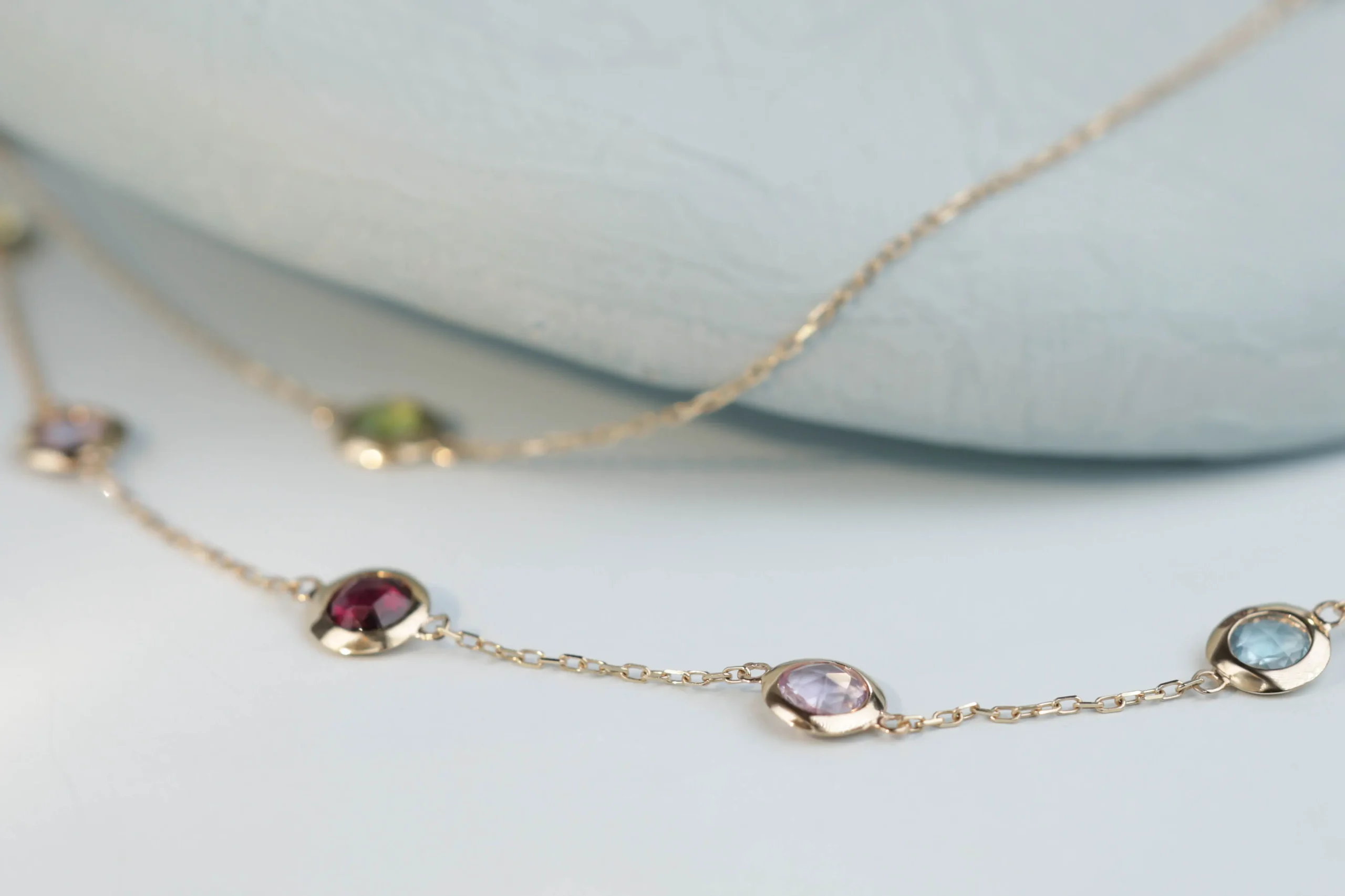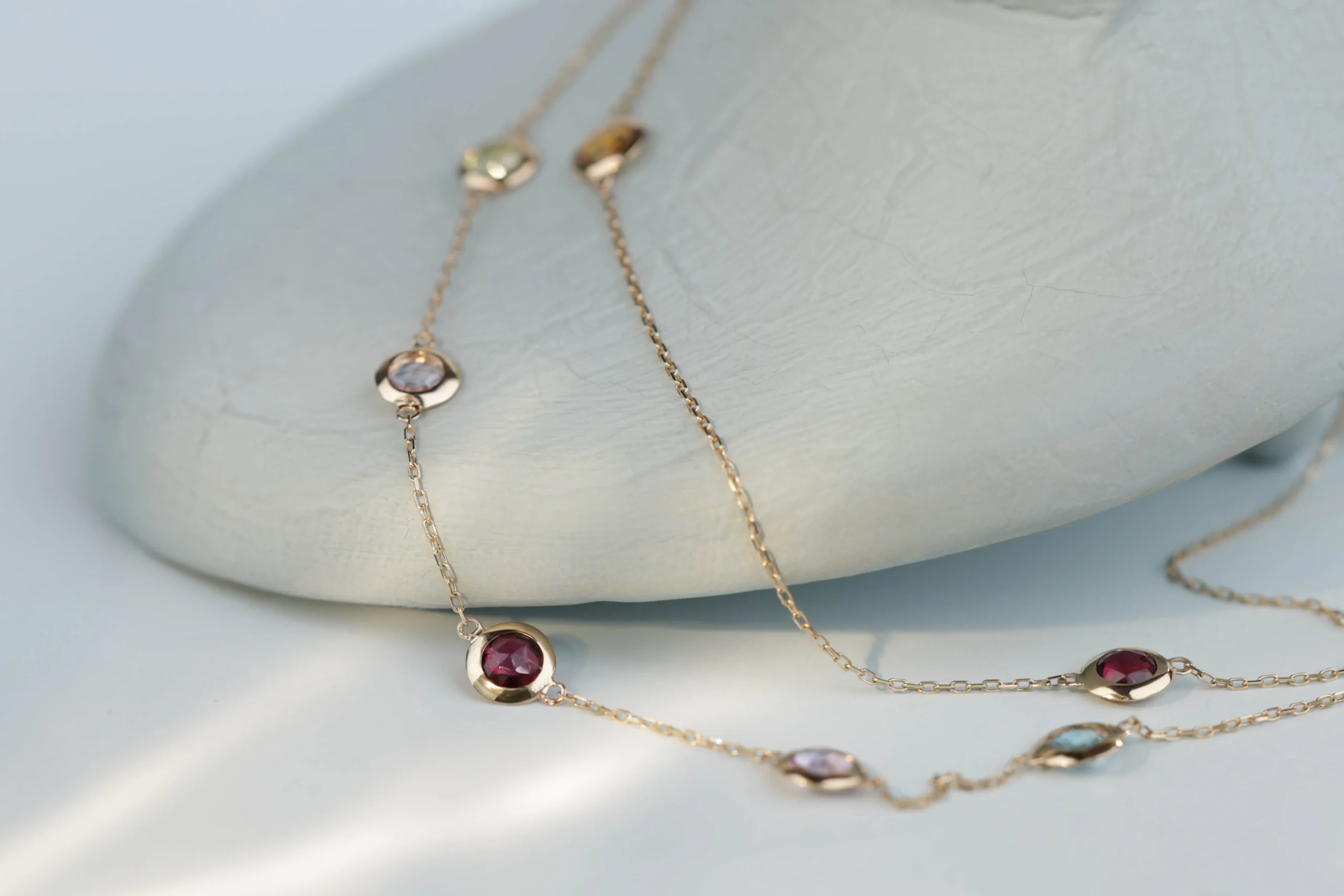 Колье и браслет с перидотом, гранатом, апатитом, цитрином, иолитом и карнелианом
