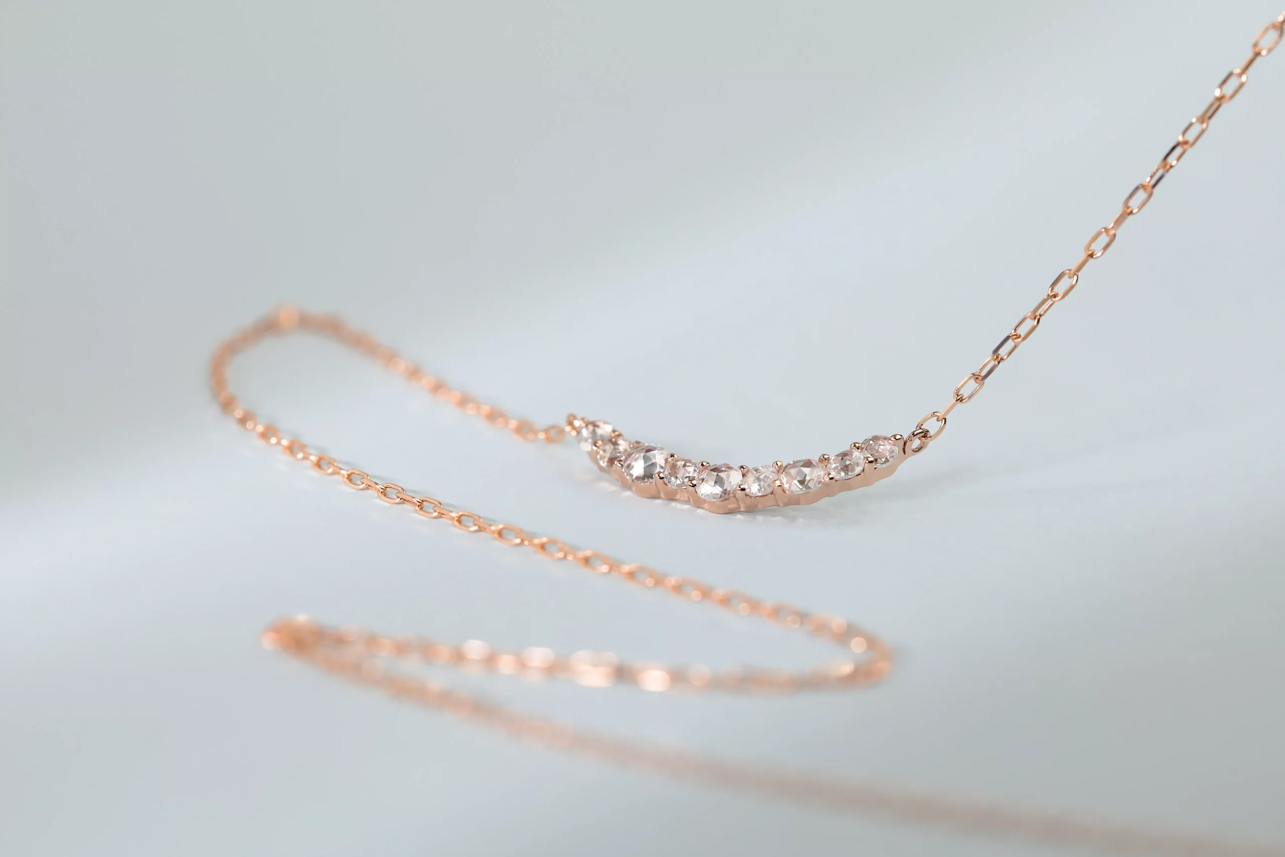 Колье из золота с 9 бриллиантами в огранке «роза» весом 0,17 карат, цвет 5, чистота 6.